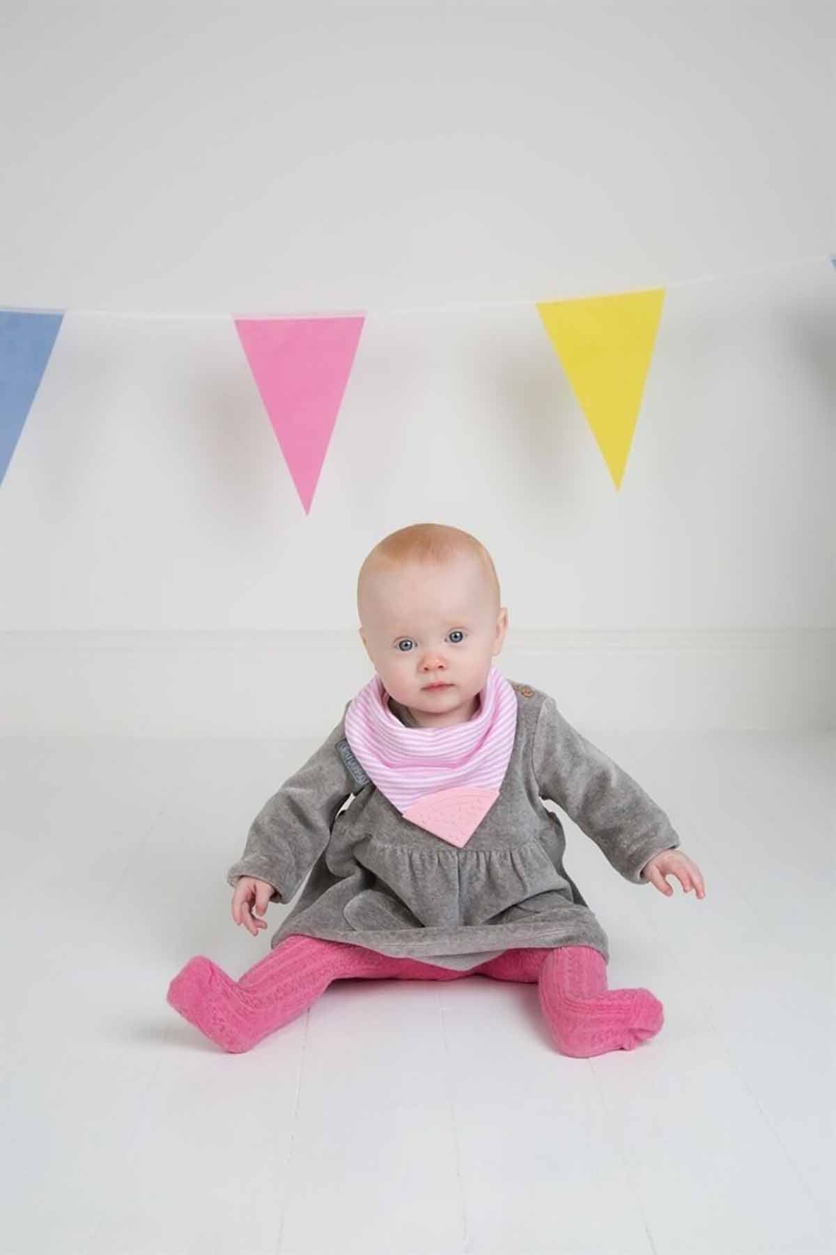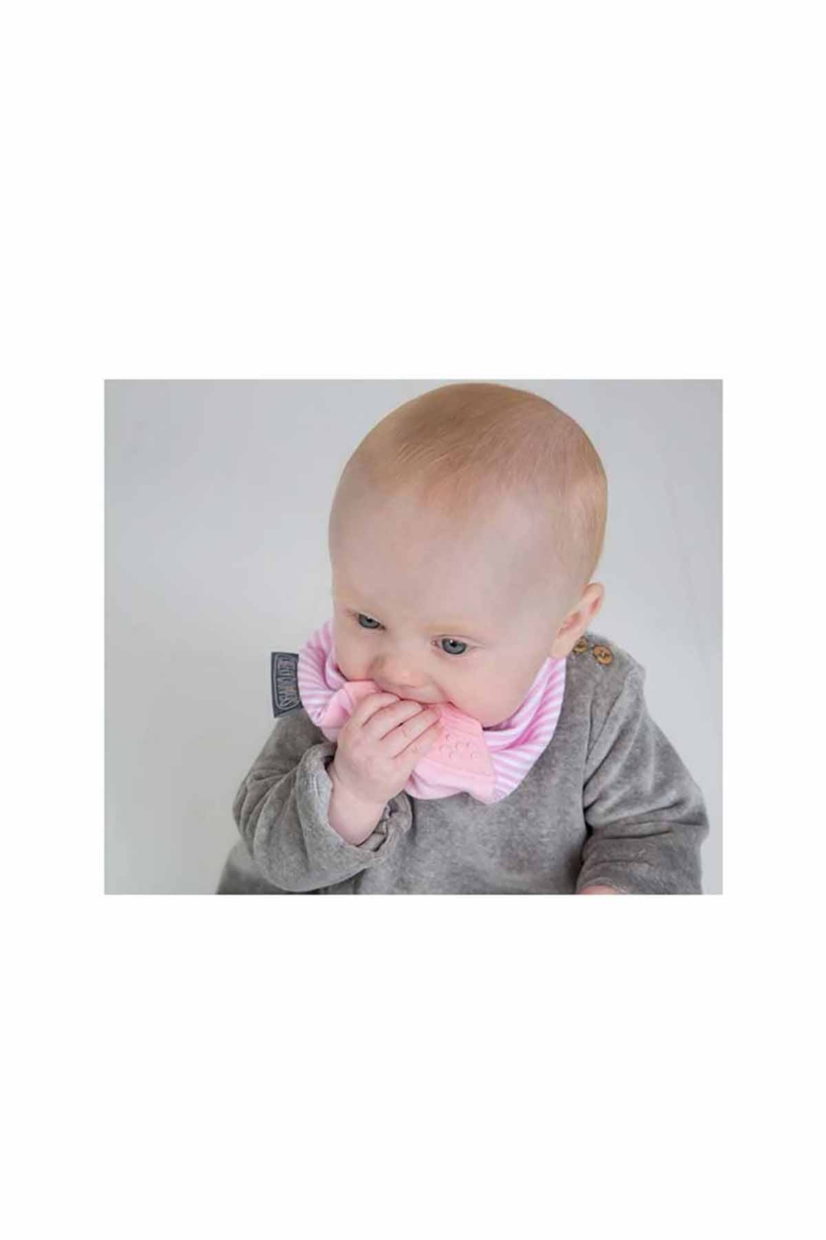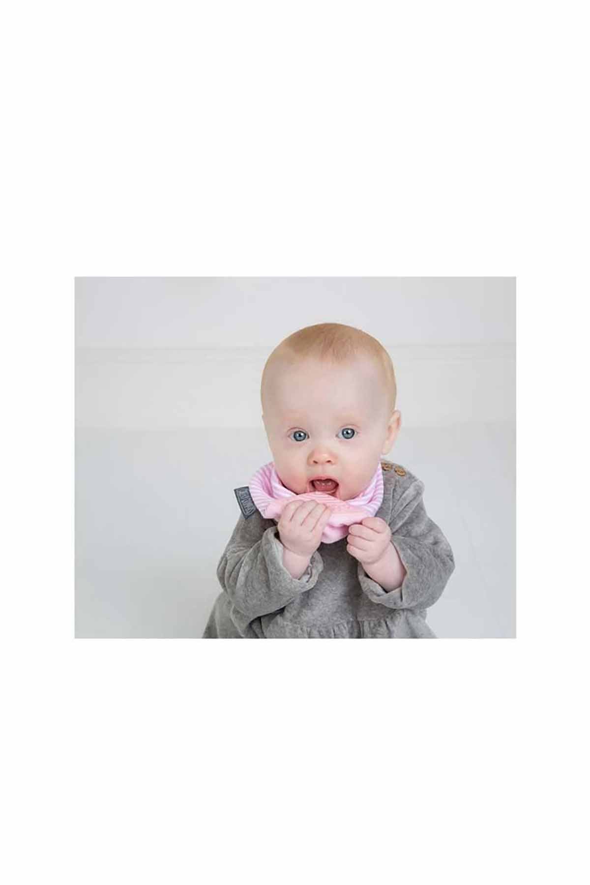 Bebeklerin diş çıkarma dönemine eğlenceli ve pratik bir çözüm sunan Cheeky Chompers Desenli Diş Kaşıyıcılı Fular Önlük, hem şık bir aksesuar hem de işlevsel bir diş kaşıyıcı olarak tasarlanmıştır. İngiltere’de üretilen bu özel önlük, bebeğinizin hassas cildine dost yumuşak kumaşı ve güvenli malzeme yapısıyla öne çıkar. Önlüğün ucundaki BPA, Phthalates ve zararlı madde içermeyen diş kaşıyıcı, bebeğinizin diş etlerini rahatlatırken aynı zamanda kolay erişim sağlar. Böylece bebeğiniz diş kaşıyıcısını sürekli aramak zorunda kalmaz. 3 katmanlı süper emici kumaşı, tükürük ve salyayı hızla emer; bebeğinizin cildini kuru tutar. Çift taraflı kullanılabilir yapısı ve ayarlanabilir çıtçıtları sayesinde 2 ay – 2 yaş aralığındaki bebeklere mükemmel uyum sağlar.