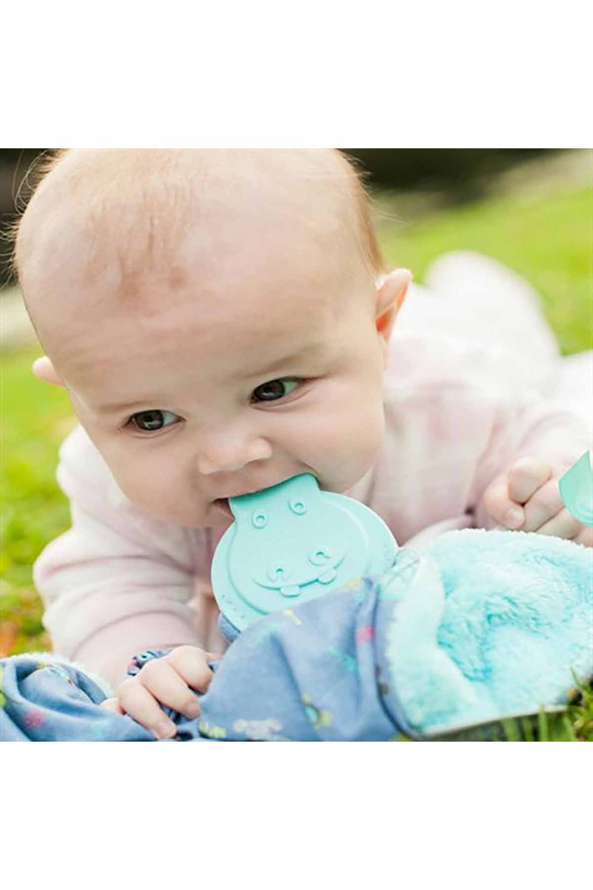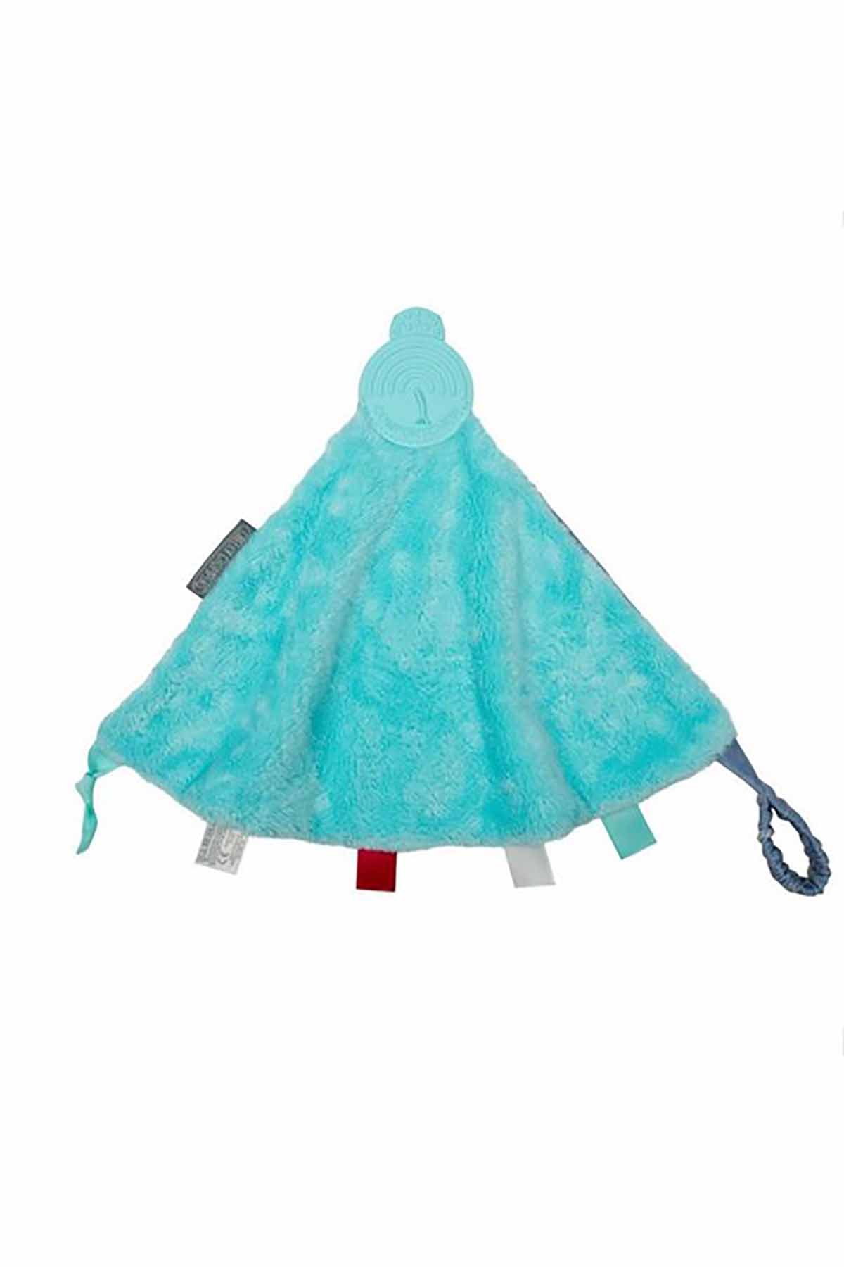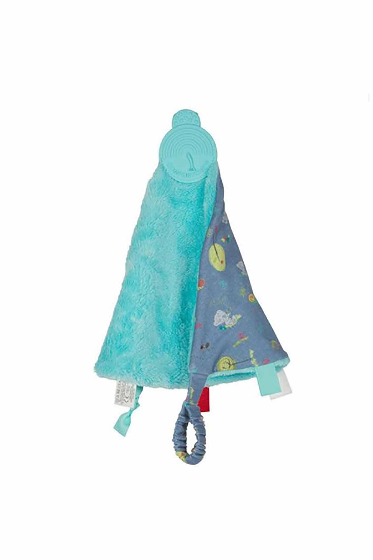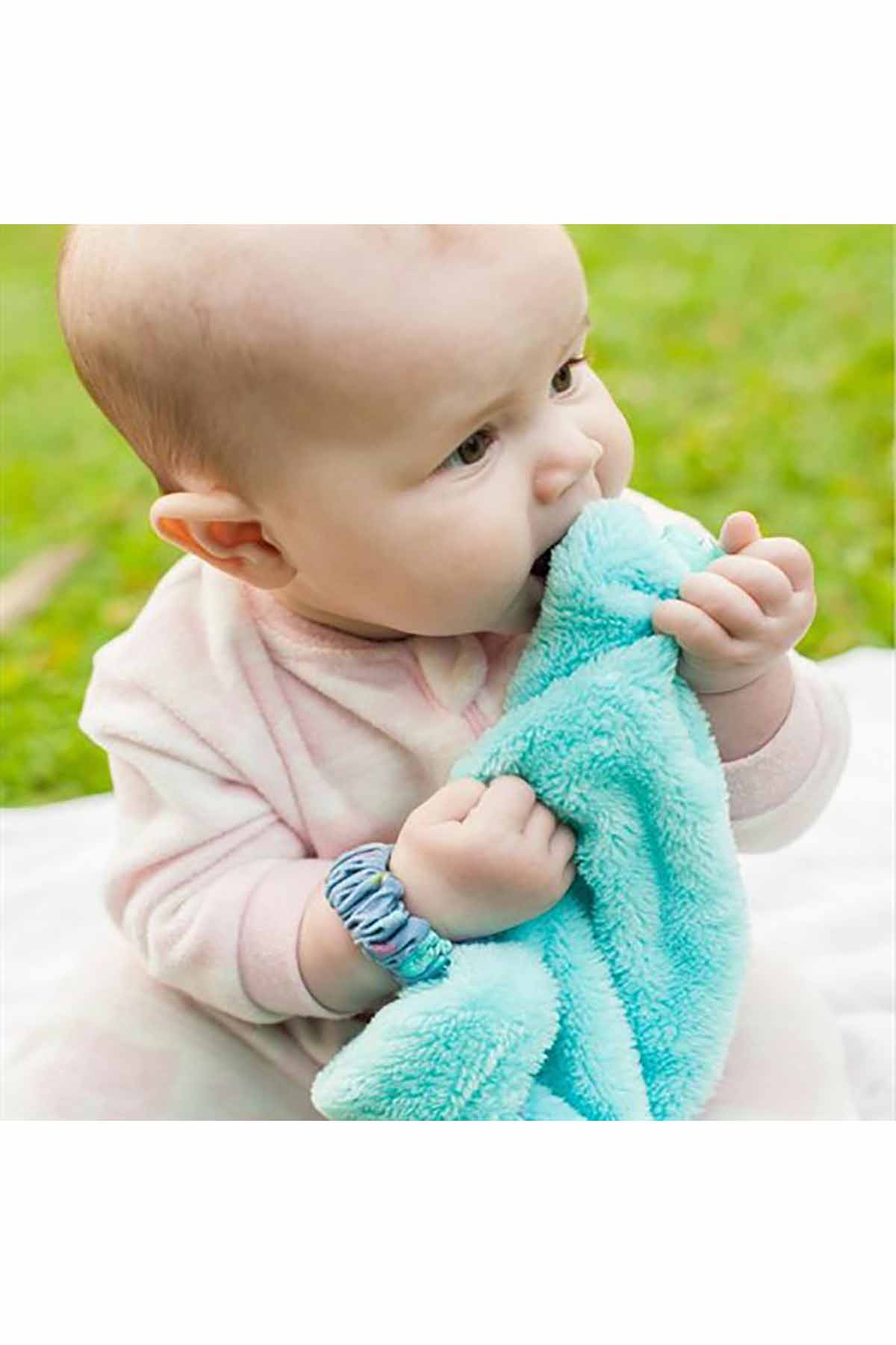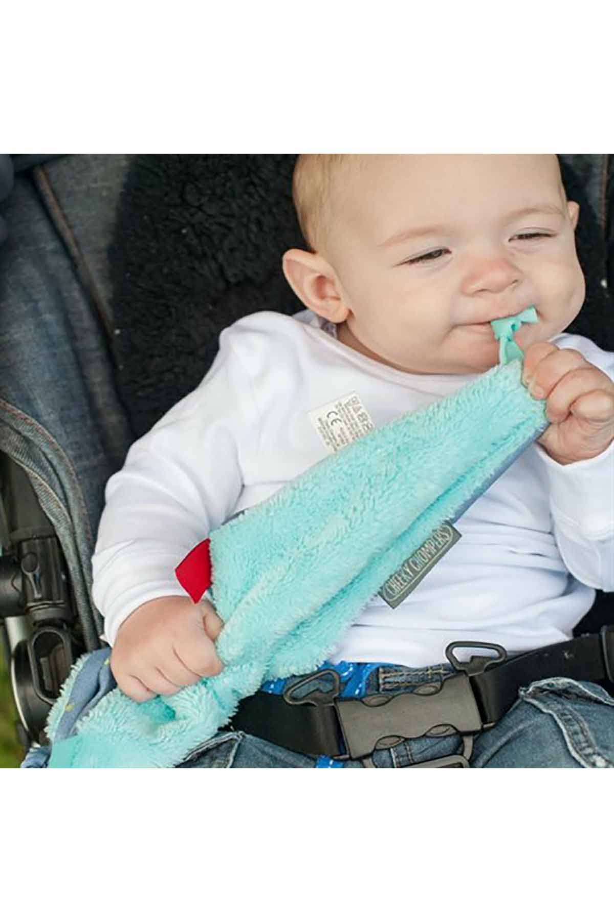 Bebeğinizin uyku ve oyun anlarını daha huzurlu hale getiren Cheeky Chompers Rahatlatıcı Örtü Mavi, yumuşak dokusu ve entegre diş kaşıyıcısıyla konforu bir araya getiriyor. Doğumdan itibaren kullanılabilen bu çok yönlü uyku arkadaşı, hem diş çıkarma döneminde rahatlama sağlar hem de bebeğin uyku rutinine huzur katar. Bir ucunda güvenli silikon diş kaşıyıcı, diğer ucunda ise beşiğe, bebek arabasına veya oto koltuğuna kolayca bağlanabilen esnek kayış halkaları bulunur. Böylece örtü her zaman bebeğinizin yanında olur, kaybolmaz ve yere düşmez. Yumuşak kumaş yapısı bebeğinizin hassas cildine nazikçe dokunur. Renkli detaylar ve dokular, duyusal gelişimi desteklerken bebeğin dikkatini çeker. 40 derecede makinede yıkanabilir yapısı ile hijyenik bir kullanım sunar.