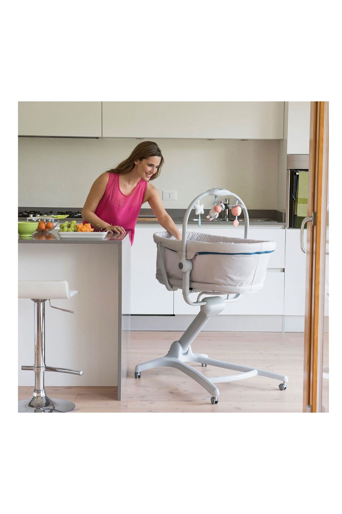 Chicco Baby Hug, evdeki her anı daha pratik hale getirmek için tasarlanmış, çok fonksiyonlu bir ana kucağı. 0-6 aylık bebekleriniz için rahat bir beşik ve yatar koltuk görevi görebilirken, aynı zamanda yemek zamanı için uygun bir mama sandalyesi olarak da kullanılabilir. Yaklaşık 3 yaşına kadar olan çocuklar için okuma ve dinlenme sandalyesi işlevi görerek uzun süre kullanılabilir. Chicco Baby Hug Air modeli, bebeğiniz beşiğinde yatarken oyuncaklarıyla ilgisini çeken heyecan verici ışıklar ve sesler sunan elektronik oyun çubuğu fonksiyonu ile eğlenceli bir deneyim sunar. Evinizdeki her odada kullanabileceğiniz bu pratik ana kucağı, 4 adet kilitlenebilir tekerleği sayesinde kolayca hareket ettirilebilir. Evin neresinde olursanız olun, bebeğinizin her zaman yanınızda olmasını sağlar. Chicco Baby Hug, çok yönlü yapısı ve rahatlatıcı özellikleriyle sadece beşik ya da koltuk değil, aynı zamanda yemek zamanı için mükemmel bir mama sandalyesi olarak da işlev görür. Şık tasarımı ve fonksiyonelliği ile her eve uyum sağlar, ebeveynlerin hayatını kolaylaştırırken, bebekler için de rahat bir ortam sunar.