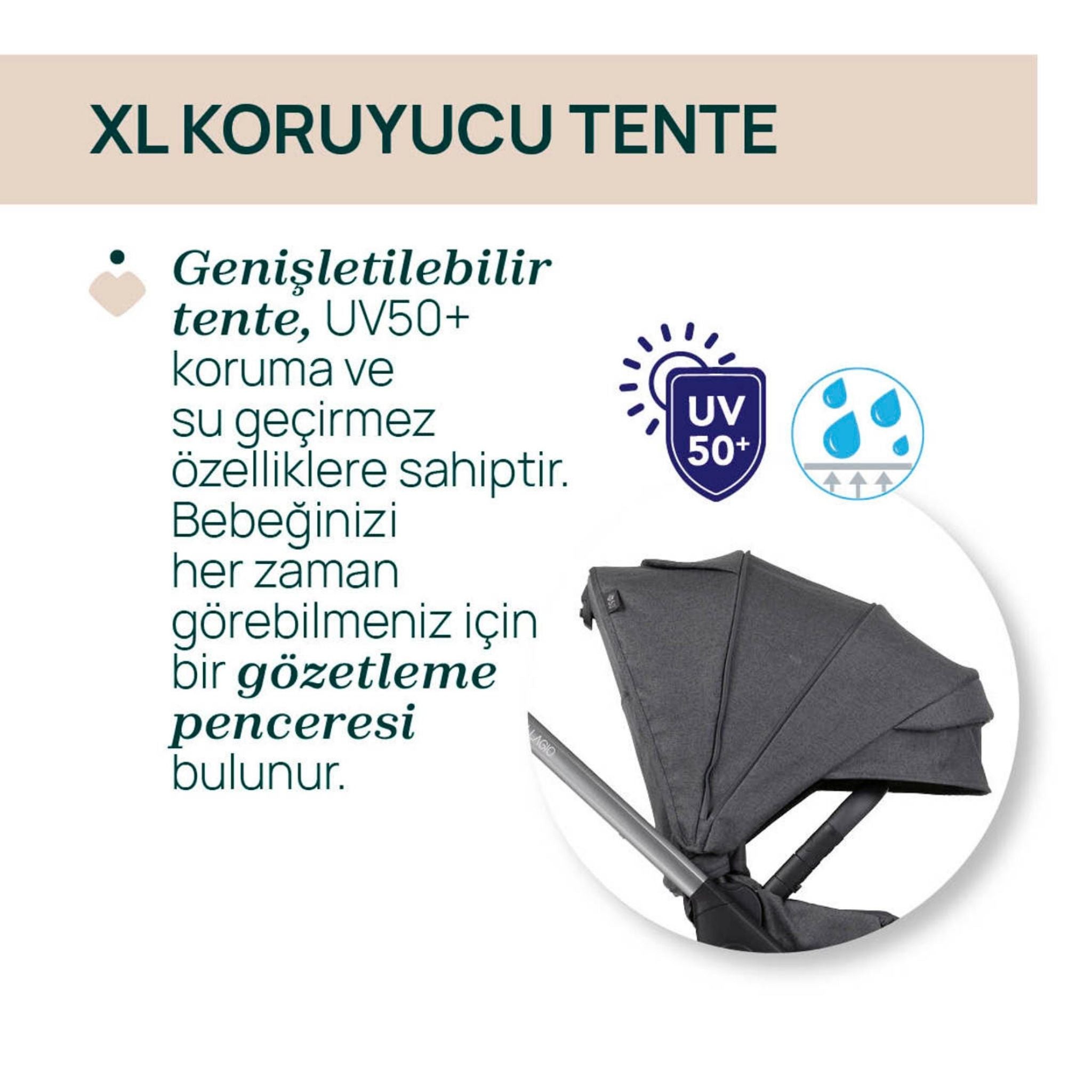 Bellagio bebek arabası, doğumdan itibaren ebeveynliğe modern ve zarif bir dokunuş getiriyor. Minimal tasarımı lüks detaylarla harmanlayan bu model, tek bir tıklama ile kendi kendine katlanabilen One Touch teknolojisi ile öne çıkıyor. Katlandığında dik durabilen yapısı ve taşıma sapı ile günlük yaşamda maksimum pratiklik sunar. Geniş oturma alanı, tam yatabilen sırt desteği ve çift yönlü kullanım özelliğiyle Bellagio, hem konforu hem de esnekliği aynı anda sunar. Genişletilebilir UV50+ korumalı XL tente, gizli fileli pencere sayesinde bebeğinizle göz teması kurmanızı kolaylaştırır. Yağmur geçirmez kumaşıyla her mevsime uygun bir kullanım sağlar. Ayrıca, manyetik toka sistemi ve dolgulu omuz askıları ebeveynlere hızlı ve güvenli kullanım imkanı sunarken, yüksek performanslı, süspansiyonlu tekerlekleri sarsıntıyı minimuma indirerek yumuşak sürüş deneyimi sağlar.