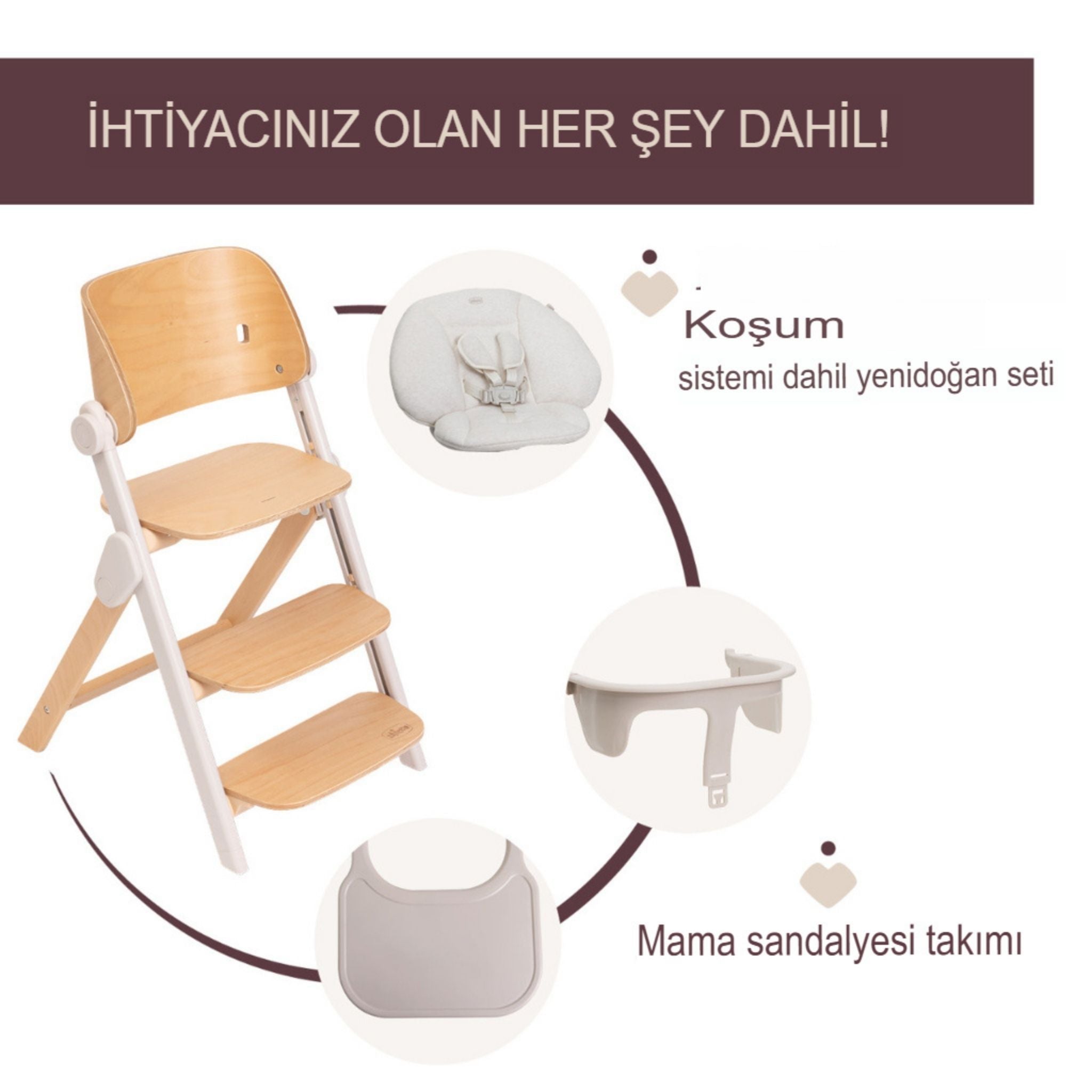 Meraviglia Evrimsel Mama Sandalyesi, sadece bir mama sandalyesi değil; her yaşa ve her ana eşlik eden şık, dayanıklı ve fonksiyonel bir yaşam çözümüdür. Yenidoğan döneminden başlayarak çocukluk, ergenlik ve hatta yetişkinliğe kadar kullanılabilen bu sandalye, doğumdan itibaren 110 kg'a kadar güvenle kullanılabilir. Organik pamuklu kumaşı, FSC sertifikalı kayın ağacından yapılmış doğal iskeleti ve ergonomik tasarımı ile her yaş için maksimum konfor sunar. Yenidoğanlar için tam yatış pozisyonuna geçebilen ana kucağı, 6. aydan itibaren kullanılabilen mama kiti ve ileri yaşlar için sağlam sandalye formuna geçişiyle gerçekten evrimsel bir deneyim yaşatır. Kullanım kolaylığı sağlayan tek elle ayarlanabilir oturum, farklı boylardaki kullanıcılar için 9 farklı yükseklik seviyesi, konforlu oturum alanı ve modern görünümüyle Meraviglia, fonksiyon ve estetiği bir araya getirir. Meraviglia Mama Sandalyesi, uzun ömürlü kullanım, konfor ve estetik arayan aileler için benzersiz bir tercihtir. Doğumdan itibaren çocuğunuzun tüm gelişim dönemlerinde onunla birlikte büyüyen bu özel ürün, yıllar boyunca evinizin vazgeçilmezi olacak.