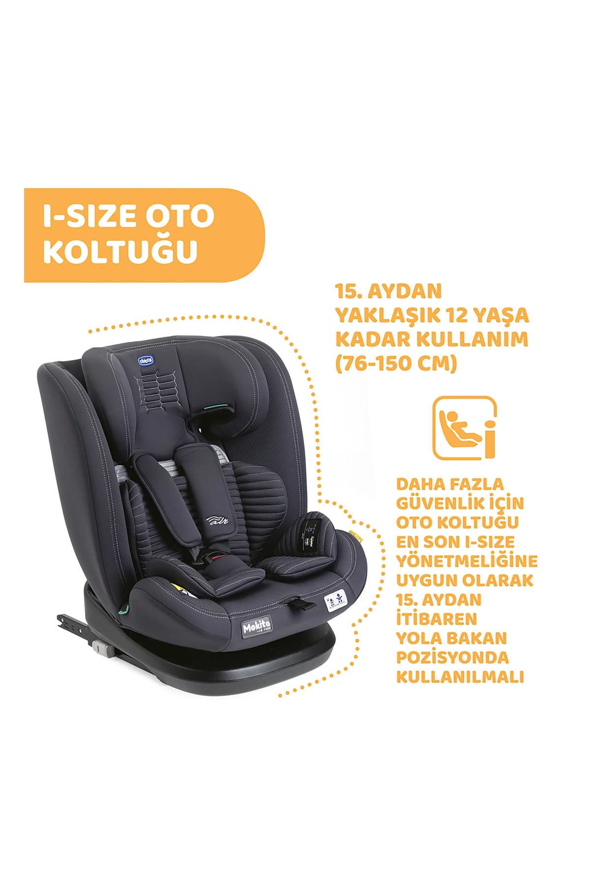 Chicco Mokita I-Size, çocuklarınızın yolculuklarını hem güvenli hem de konforlu hale getirmek için titizlikle tasarlanmıştır. 15 aydan 12 yaşa kadar geniş bir kullanım aralığı sunan bu oto koltuğu, ECE R129/03 güvenlik standartlarına uygun olarak üretilmiştir. 4 farklı yatak pozisyonu ve AIR özellikli özel 3D kumaşı, yolculuk sırasında ekstra rahatlık ve destek sunar. Chicco Mokita I-Size oto koltuğu, kolay kurulum ve çok yönlü kullanım imkanı ile her seyahati keyifli ve güvenli hale getiriyor.