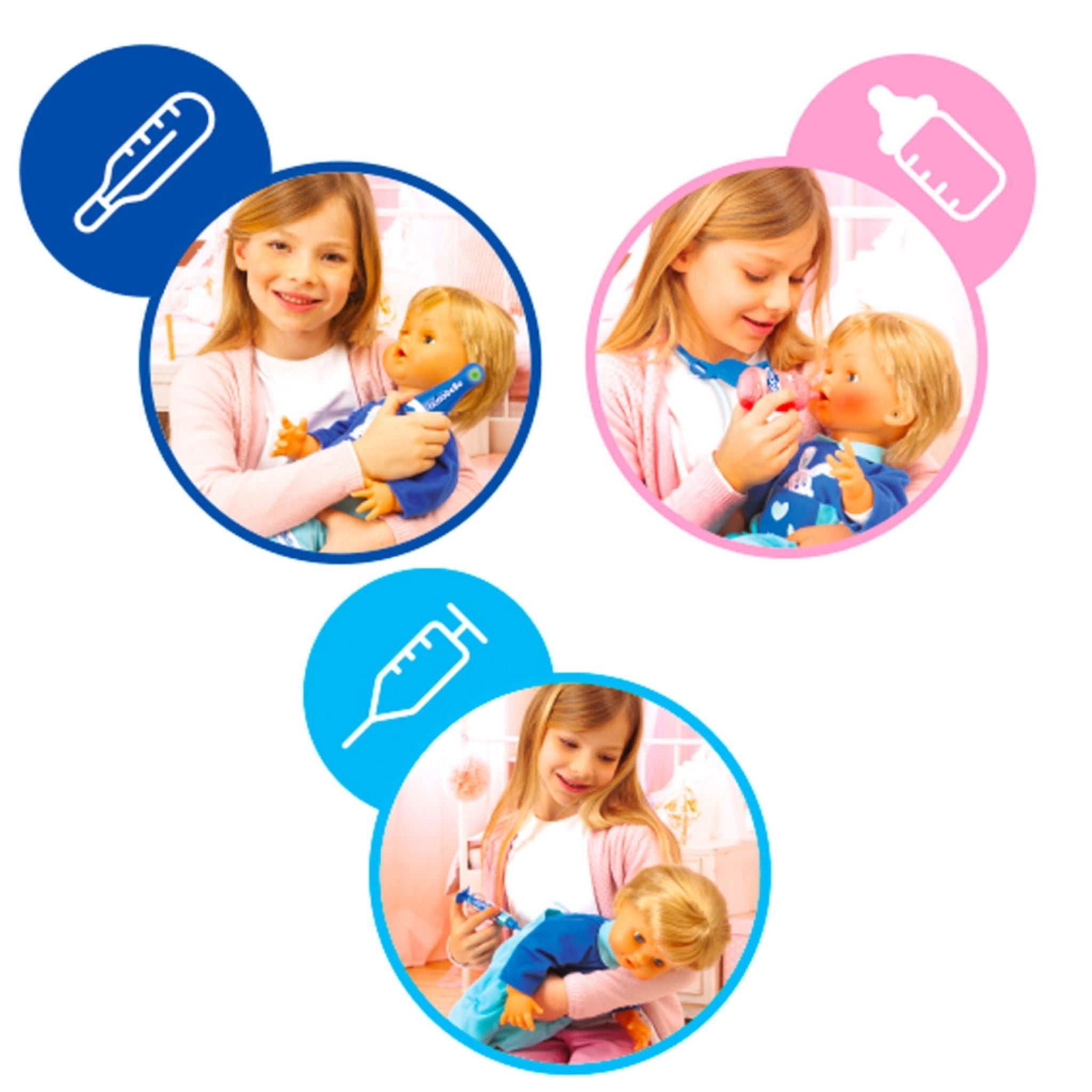 Cicciobello Çok Hastayım Yeni 2023, çocukların empati duygusunu, bakım bilincini ve hayal gücünü geliştirmek üzere tasarlanmış etkileşimli bir oyuncak bebektir. Avrupa’da uzun yıllardır en çok tercih edilen Cicciobello serisinin bu özel modeli, hasta bir bebeğin bakım sürecini gerçekçi oyun detaylarıyla çocuklara deneyimleme imkânı sunar. Oyun sırasında çocuklar, Cicciobello’nun sağlık durumunu gözlemleyerek onu iyileştirmeye çalışır ve bu süreçte sorumluluk alma becerilerini geliştirir. Cicciobello hasta olduğunda yanakları kızarır ve ağlama tepkisi verir. Çocuklar stetoskop yardımıyla göğsünü dinleyebilir, termometre ile ateşini ölçebilir. Ateşi olduğunda termometrenin renginin değişmesi, oyunu daha gerçekçi ve öğretici hâle getirir. Ballı süt, vitamin ve şurup gibi aksesuarlarla yapılan bakım sonrası Cicciobello sakinleşir ve mutlu olur. Bu etkileşimli yapı, çocukların neden sonuç ilişkisi kurmasına ve bakım temalı oyunlar oynamasına destek olur. Gerçekçi aksesuarları, detaylı tepkileri ve büyük boyutlu yapısıyla Cicciobello Çok Hastayım Yeni 2023, 2 yaş ve üzeri çocuklar için hem eğlenceli hem de eğitici bir oyun arkadaşıdır.