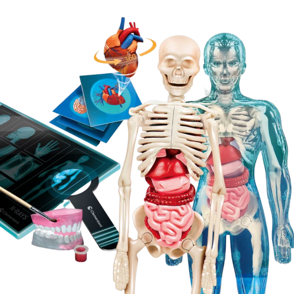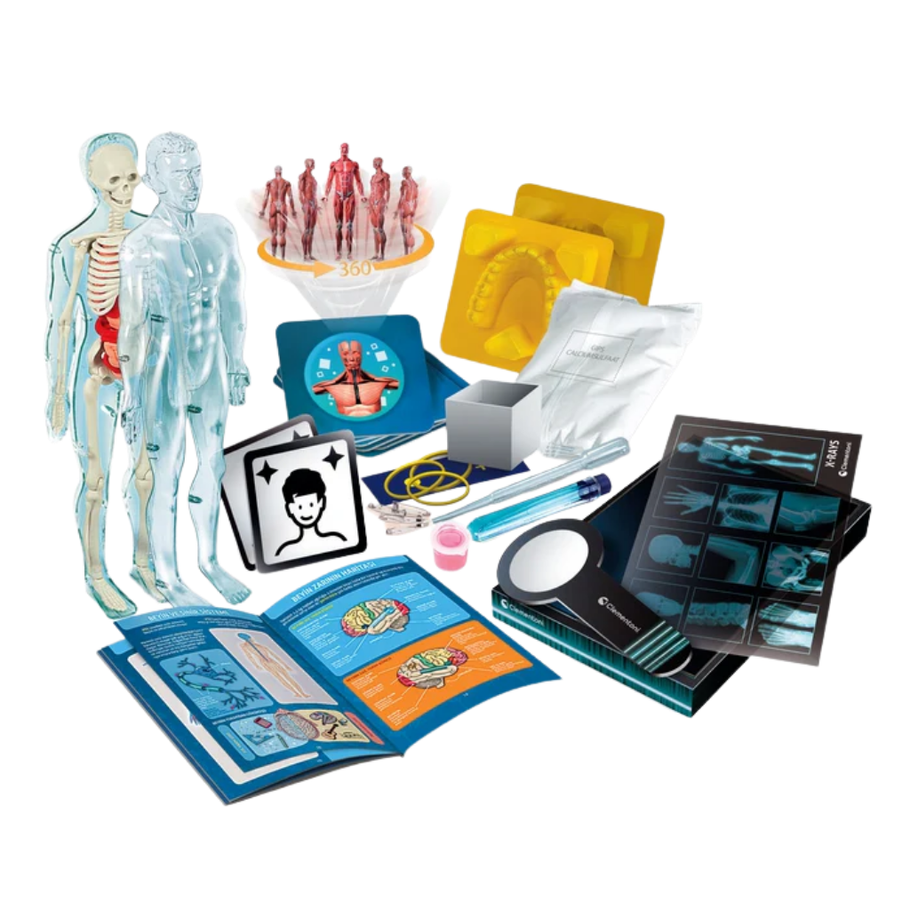 Clementoni Bilim ve Oyun İnsan Anatomisi, 8 yaş ve üzeri çocuklar için insan vücudunu modern, interaktif ve eğlenceli bir yaklaşımla keşfetmeye olanak tanıyan kapsamlı bir bilim setidir. Klasik anatomi bilgisini oyun temelli öğrenme ile birleştiren bu set, iskelet ve organların birleştirilmesi, diş kemerlerinin oluşturulması ve beş duyunun keşfedilmesine yönelik çok sayıda aktivite sunar. Artırılmış gerçeklik destekli özel uygulama sayesinde çocuklar, insan vücudunun ana sistemlerini üç boyutlu olarak inceleyerek işlevlerini dahanet şekilde kavrar. Öğrenmeyi hızlandıran ve kalıcı hale getiren bu yaklaşım, bilimsel bilgileri eğlenceli bir deneyime dönüştürür. İtalya’da tasarlanan ve geliştirilen set, anatominin karmaşık yapısını anlaşılır ve ilgi çekici hale getirir. Clementoni tarafından geliştirilen bu oyun, AR modu ile oyun setinde yer alan QR kodları kullanılarak insan anatomisinin sırlarını artırılmış gerçeklik aracılığıyla keşfetme imkânı sunar. Keşfet modu, temel sistemlerin 3D modellerini büyütme ve döndürme olanağı tanırken, test ve karıştır kartları çocukların bilgilerini eğlenceli ve zaman sınırlı oyunlarla ölçmesini sağlar. Bu yapı, merak duygusunu artırırken analitik düşünme ve öğrenme motivasyonunu destekler.