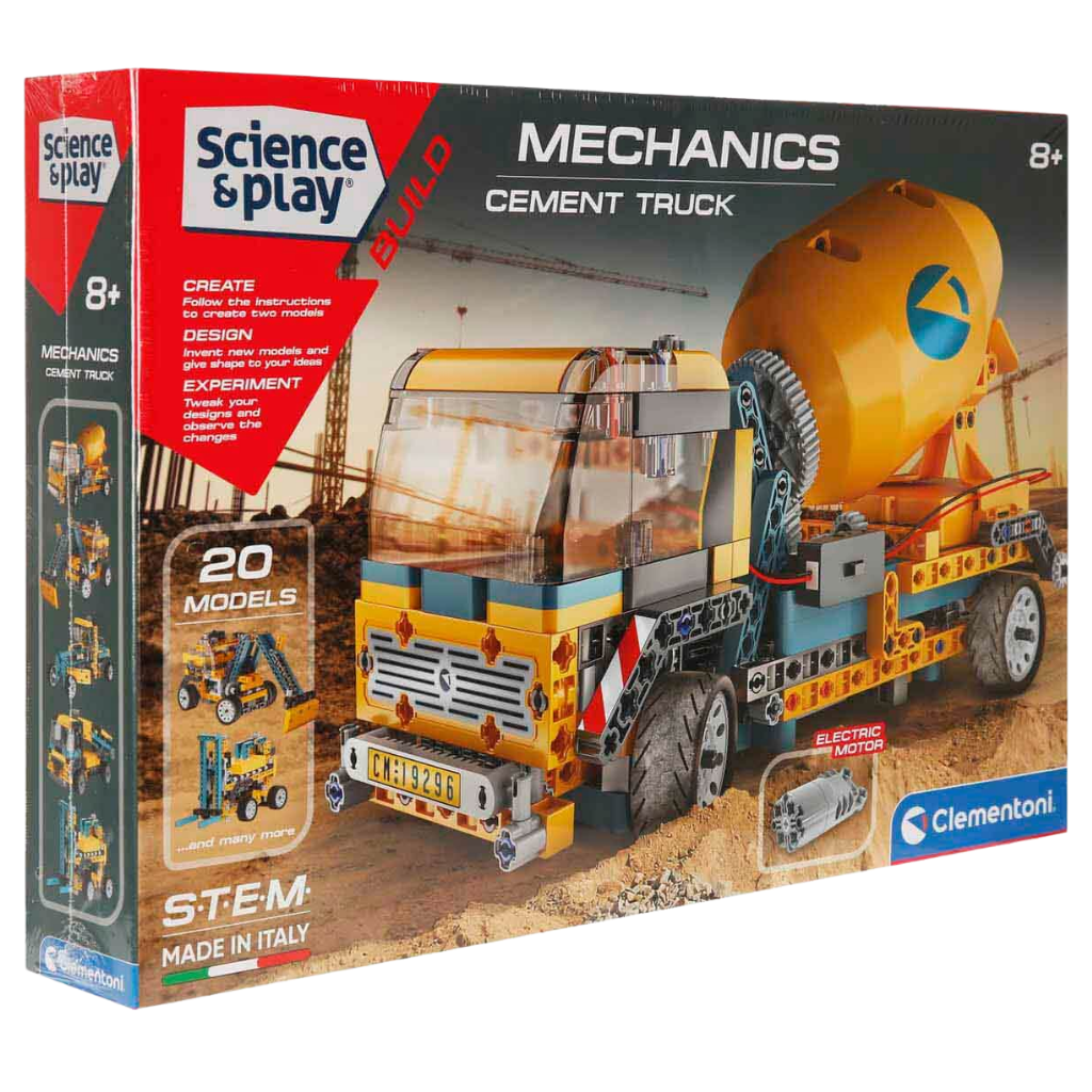 Clementoni Mekanik Laboratuvarı Motorlu Beton Mikser Kamyonu, 8 yaş ve üzeri çocuklar için mekanik ve mühendisliğin temel prensiplerini uygulamalı olarak öğretmeyi amaçlayan kapsamlı bir yapı ve deney setidir. İnşa edilebilir motorlu beton mikseri modeli sayesinde çocuklar, şantiye makinelerinin çalışma mantığını adım adım keşfeder. Elektrik motoru ile çalışan sistem, mikser haznesinin dönmesini ve arkadan çekişli tekerleklerin hareket etmesini sağlayarak gerçekçi bir oyun deneyimi sunar. 250’den fazla parçadan oluşan bu büyük yapı laboratuvarı, dikkat, sabır ve konsantrasyon gerektiren bir süreçle çocukların analitik düşünme ve problem çözme becerilerini destekler. İtalya’da tasarlanan ve geliştirilen bu set, mühendislik kavramlarını eğlenceli bir meydan okumaya dönüştürür. Clementoni tarafından geliştirilen bu mekanik laboratuvar seti, tek bir modelle sınırlı kalmayarak toplam 20 farklı şantiye makinesi modelinin inşa edilmesine olanak tanır. Elektrik motoru, pil bölmesi, düz ve dişli dişliler, diferansiyel ve dik açılı dişli kutusu gibi bileşenler sayesinde çocuklar mekanik sistemlerin birbiriyle nasıl çalıştığını uygulamalı olarak öğrenir. Resimli kullanım kılavuzu ve ücretsiz mobil uygulama desteği, montaj aşamalarını anlaşılır ve keyifli hale getirir.