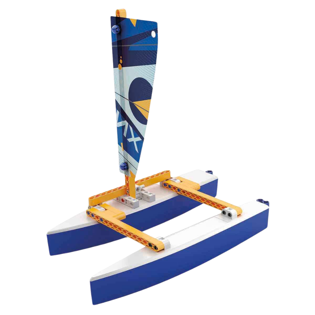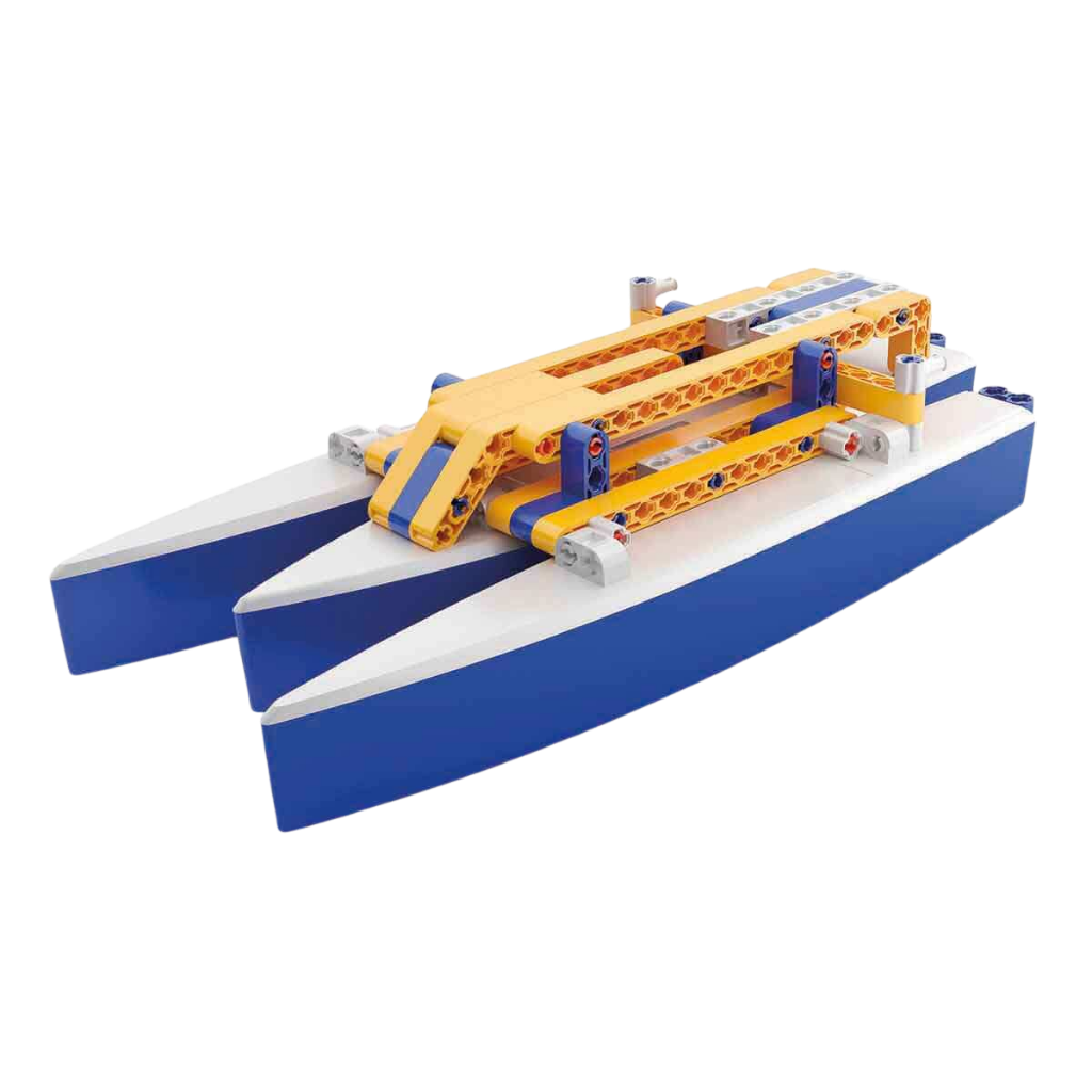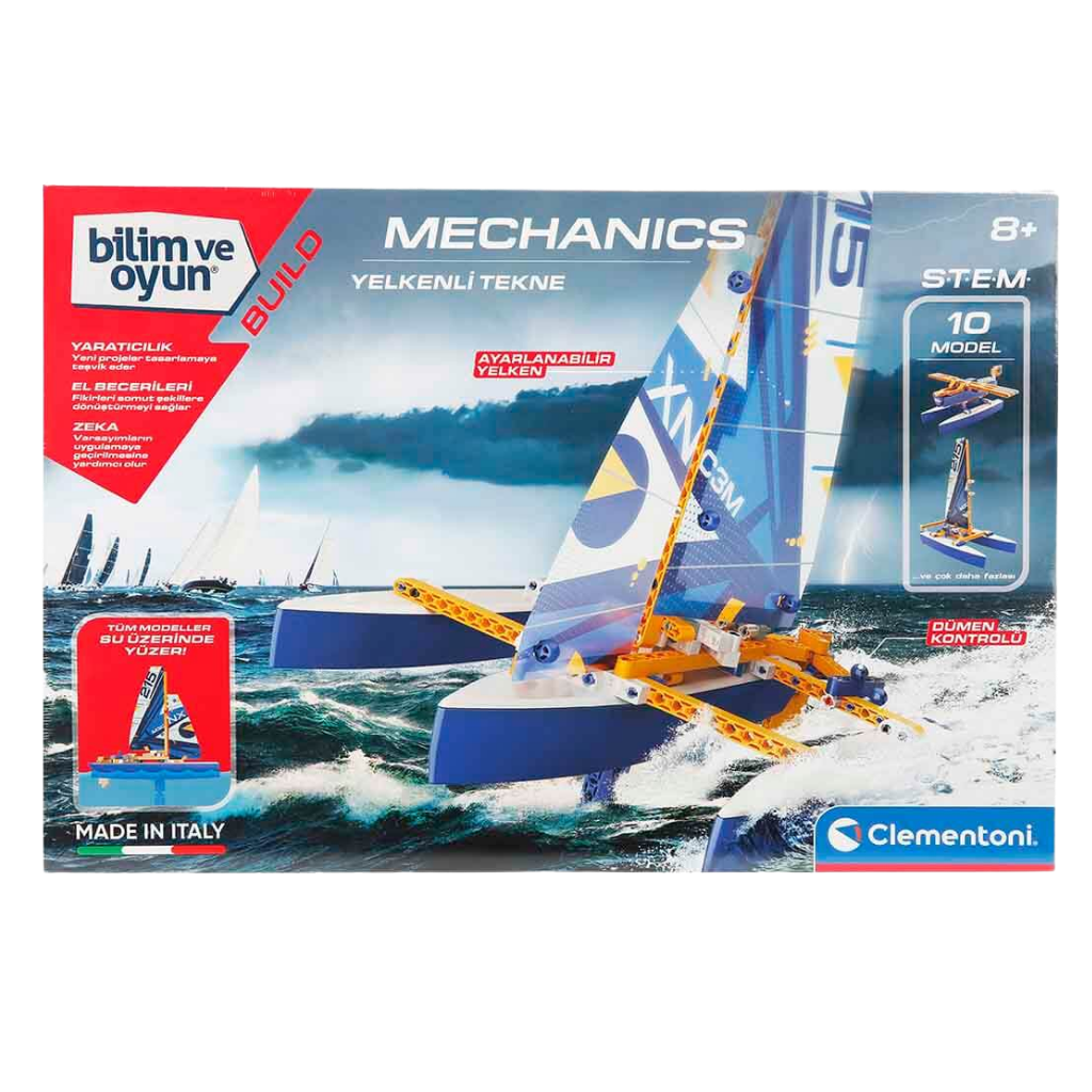 Clementoni Mekanik Laboratuvarı Yelkenli Tekne, 8 yaş ve üzeri çocuklar için mekanik, mühendislik ve denizcilik prensiplerini uygulamalı olarak keşfetmeye imkân tanıyan kapsamlı bir bilim ve yapı setidir. Sağlam ve modüler bileşenleri sayesinde çocuklar, bir yelkenli tekneyi tüm detaylarıyla inşa ederken gemi mühendisliğinin temel mantığını deneyimleyerek öğrenir. Omurga, dümen ve yelken sistemi sayesinde model, su üzerinde gerçekten yüzebilir ve rüzgâr gücüyle hareket edebilir. Hareketli dümen mekanizması ile gerçek bir yelkenli gibi manevra kabiliyeti sunan trimaran yapısı, oyunu yalnızca bir montaj süreci olmaktan çıkararak gerçek bir deneyime dönüştürür. İtalya’da tasarlanan ve geliştirilen bu set, bilimsel düşünceyi yaratıcılıkla birleştirir. Clementoni tarafından geliştirilen bu mekanik laboratuvar seti, aynı parçalar kullanılarak 10 farklı modelin inşa edilmesine olanak tanır. Yat, trimaran, deniz uçağı, Polinezya kanosu, motorlu bot ve su uçağı gibi modeller Bilim ve Oyun Build Uygulaması üzerinden adım adım keşfedilebilir. Bir model resimli kullanım kılavuzu ile, dokuz model ise uygulama üzerinden sunulan etkileşimli 3 boyutlu talimatlar ile monte edilir. Tüm modellerin su üzerinde yüzebilmesi, öğrenme sürecini daha somut ve etkileyici hale getirir. STEM yaklaşımı doğrultusunda tasarlanan bu set, el becerisi, problem çözme yeteneği ve yaratıcılığın gelişimine katkı sağlar.