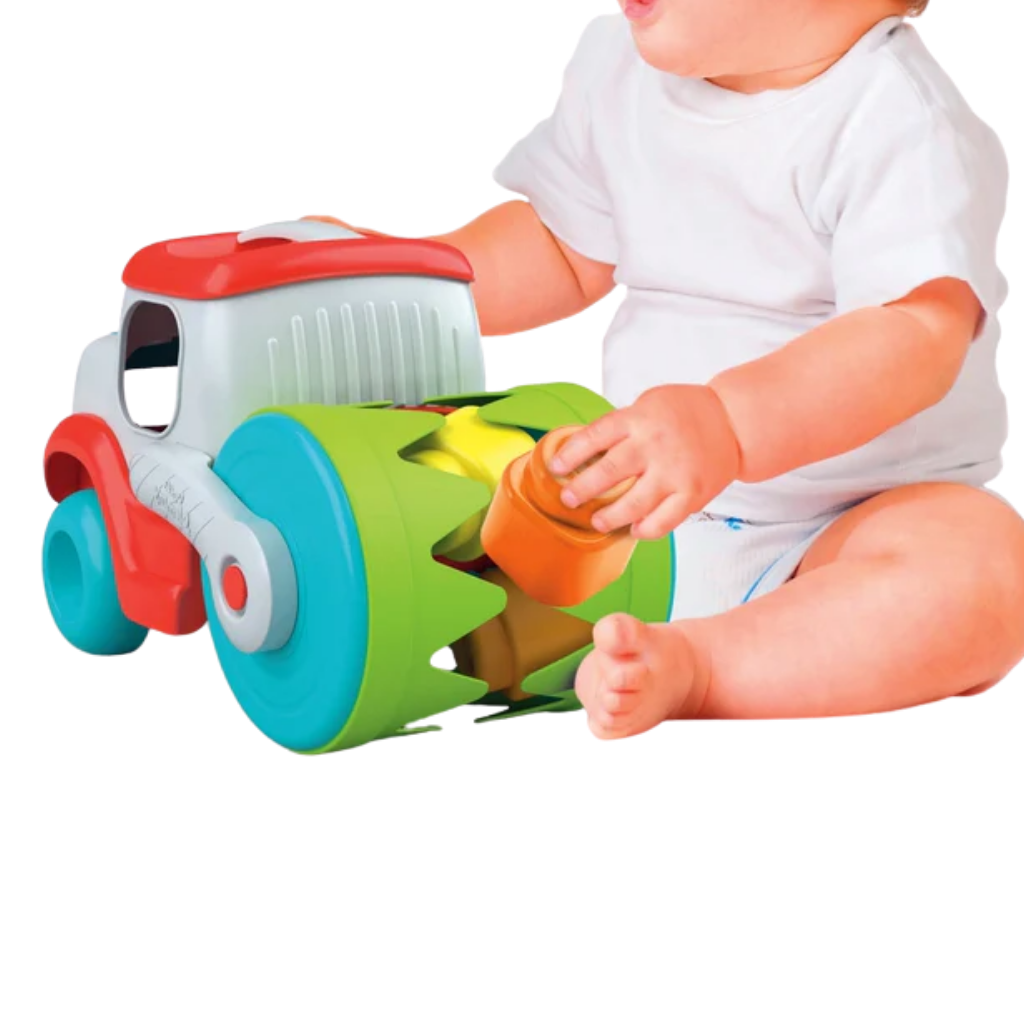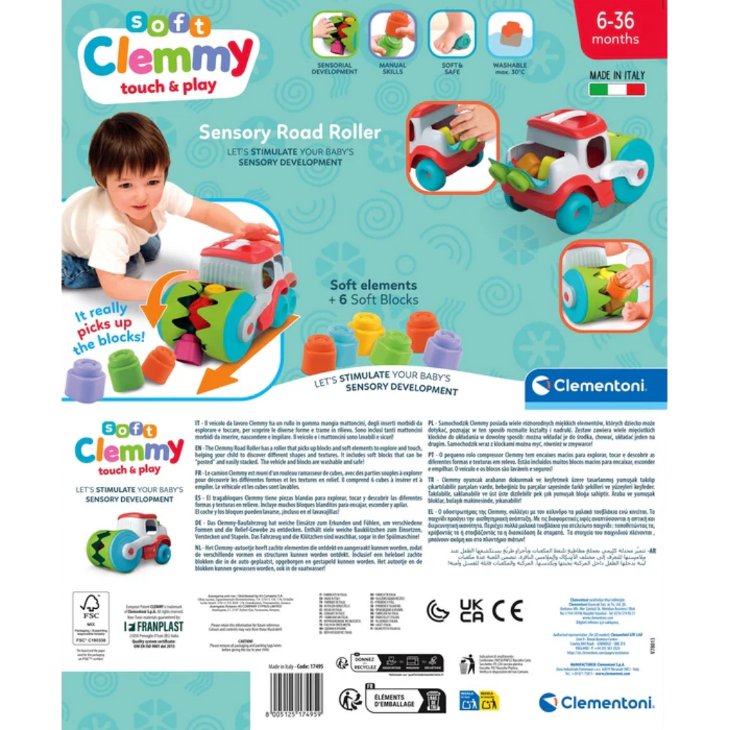 Clementoni Soft Clemmy Yumuşak Blok Duyusal Silindir Kamyon, bebeklerin dokunsal keşiflerini ve erken dönem gelişimini desteklemek üzere özel olarak tasarlanmış eğitici bir oyuncaktır. “Blok yiyen” silindir yapısı sayesinde çocuklar, yumuşak Clemmy bloklarını araca yerleştirerek eğlenceli bir neden–sonuç ilişkisi kurar. Farklı dokulara sahip parçalar, bebeğin dokunma duyusunu harekete geçirirken güvenli ve yumuşak yapısı sayesinde ebeveynler için de gönül rahatlığı sunar. Oyun sırasında blokları yerleştirme, kule yapma ve arka bölmeden çıkarma gibi aktiviteler, hem motor becerilerin hem de bilişsel gelişimin desteklenmesine katkı sağlar. Clemmy Touch & Play serisine ait bu ürün, tamamen bebeklere uygun materyallerle İtalya’da üretilmiştir. Bu oyuncak, bebeklerin güvenli bir şekilde keşfetmesini sağlarken erken yaşta öğrenmeyi oyunla birleştiren ideal bir seçenektir.