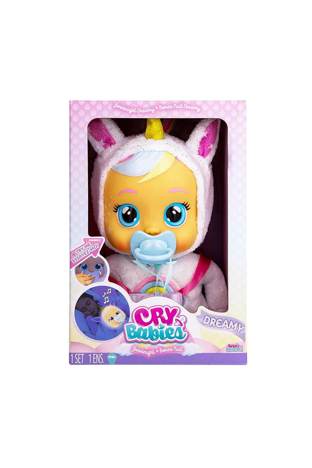 Çocuklar şimdi Cry Babies İyi Geceler Dreamy ile yeni oyun ve uyku arkadaşlarına kavuşuyorlar. Işıklı gözyaşı dökerek ağlayan Dreamy emziği takılınca hemen sakinleşiyor. Karanlıkta yüzü parlıyor ve çocuklara birbirinden güzel 5 farklı ninni söyleyebiliyor. Ona sarılmak ve uyumak çok güzel!