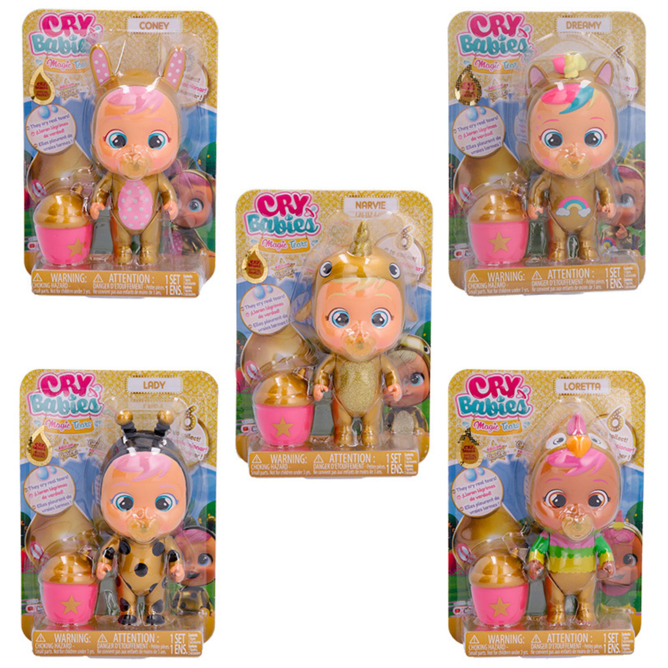 Cry Babies Magic Tears Gold Serisi ile oyunlarınız şimdi çok daha eğlenceli ve büyüleyici! Çocukların sevdiği Cry Babies bebekleri, bu özel seride altın temalı şık tasarımlarıyla karşınızda. Gold Serisi'nin ışıltılı dünyasında çocuklar; Dreamy, Loretta, Lady, Coney ve Narvie olmak üzere 5 farklı karakterden oluşan bebekleri keşfedebilir, onları koleksiyonlarına ekleyebilir ve oyunlarına eğlence katabilirler. Cry Babies Magic Tears Gold Serisi, 3 yaş ve üzeri çocukların güvenle oynayabileceği şekilde tasarlanmıştır. Kullanımı kolaydır; sihirli biberonla beslendikten sonra karınlarına bastırıldığında bebekler gerçek gözyaşları döker. Çocuklarınız için altın rengindeki bu büyülü Cry Babies Magic Tears Gold Serisi bebekleri ile oyun dünyalarını renklendirin ve onların hayal gücünü, empati duygularını geliştirirken aynı zamanda eğlenceli vakit geçirmelerini sağlayın!