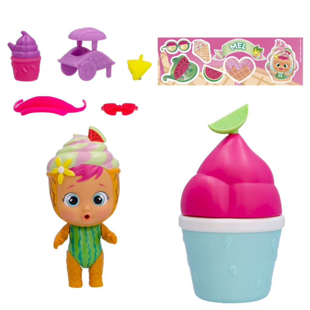 Cry Babies Magic Tears evreni, Frozen Frutti serisiyle sürpriz ve eğlenceyi bir araya getiriyor. Gerçek bir dondurma görünümüne sahip yumuşak kapsül ambalajı ile dikkat çeken Cry Babies MT Frozen Frutti bebekler, çocuklara hem keşif hem de hayal gücünü destekleyen bir oyun deneyimi sunar. Her kapsülün içinden çıkan sürprizler, oyunu daha heyecanlı ve tekrar oynanabilir hale getirir. Frozen Frutti bebeklerin en dikkat çekici özelliği, sihirli gözyaşlarının kar efekti oluşturmasıdır. Her bebek, temsil ettiği meyveye özgü hoş bir kokuya sahiptir. Kafa ve göbek bölgelerinde yer alan renkli sim detayları ise görsel zenginlik sağlar. Seride yer alan farklı karakterler sayesinde çocuklar koleksiyon yapmanın keyfini yaşar. Cry Babies Magic Tears Frozen Frutti bebekler, sürpriz içeriği, duyusal özellikleri ve koleksiyon değeriyle çocukların favori oyuncakları arasında yer alır. Hayal gücünü destekleyen bu seri, eğlenceli ve yaratıcı oyunlar için ideal bir tercihtir.
