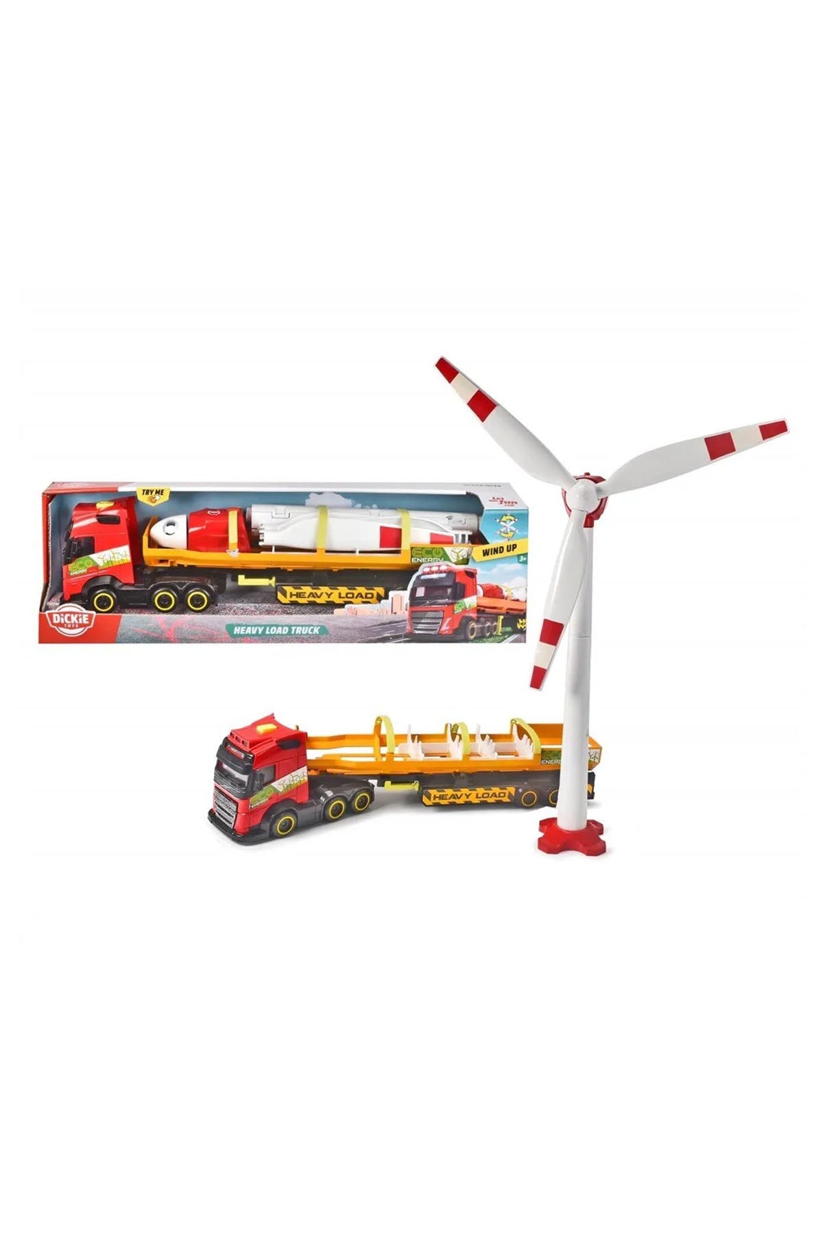 Dickie Toys Ağır Yük Kamyonu ile küçük çocuğunuzu yenilenebilir enerji konseptiyle tanıştırın! Büyük kamyon, klasik bir renk şemasına sahip 51 cm yüksekliğinde bir rüzgar türbinine dönüşen göz alıcı roket şeklindeki bir nesneyle birlikte gelir. 36 ay ve üzeri çocuklar için tasarlanan bu oyuncak setin küçük çocuğunuzu eğlendirmesi garantilidir. Sonsuz eğlence için nihai kombinasyon! 40 cm'lik kamyon Volvo FH16'da modellenmiştir ve şeffaf ön camdan görülebilen karmaşık bir şekilde tasarlanmış sürücü kabinine sahiptir. Kamyon ayrıca kolay manevra için dönen tekerleklere ve etkileşimli eğlence için çok sayıda başka hareketli parçaya sahiptir. Rüzgar türbini, rotor kanatlarının dönmesini sağlayan yerleşik bir sarma motoruna sahiptir.