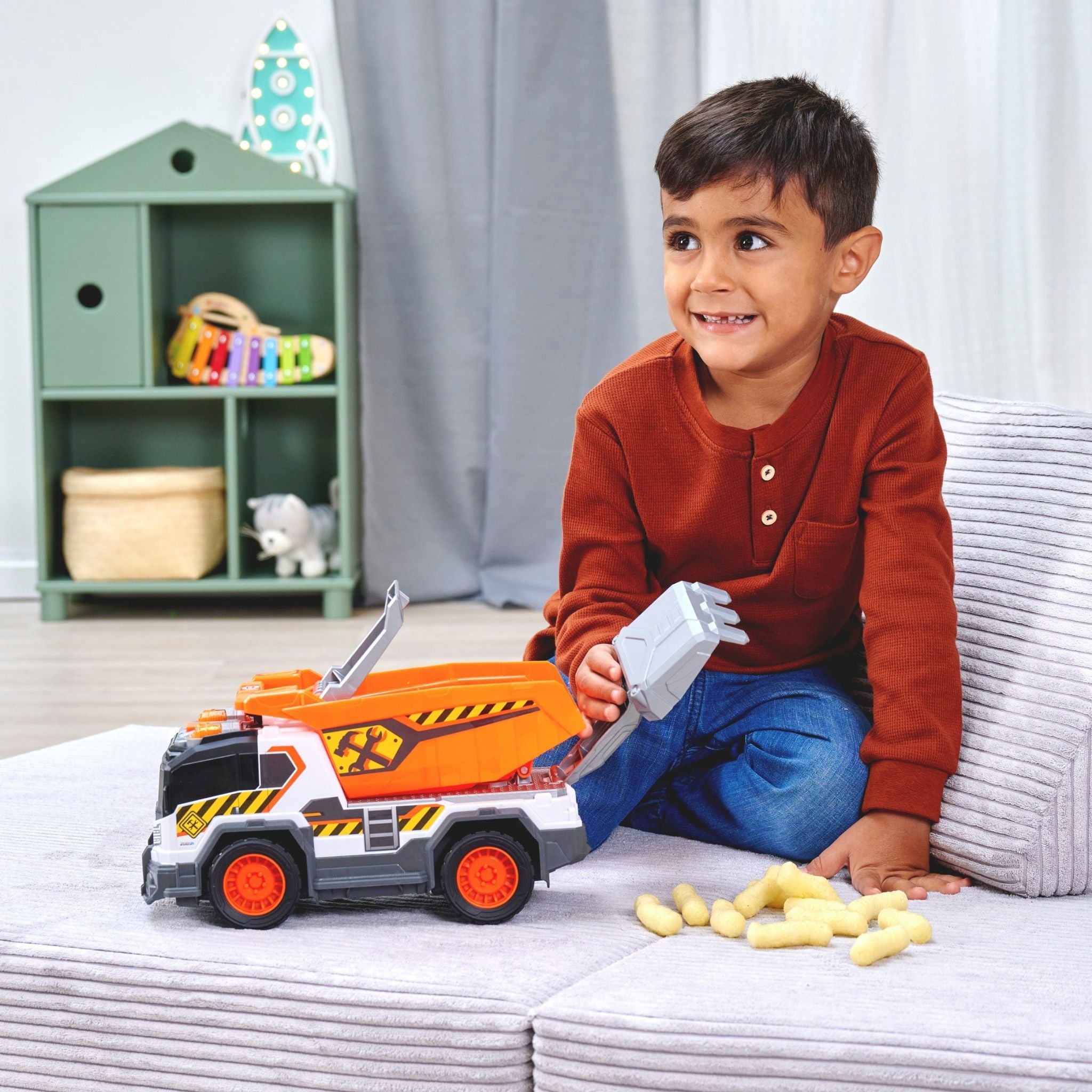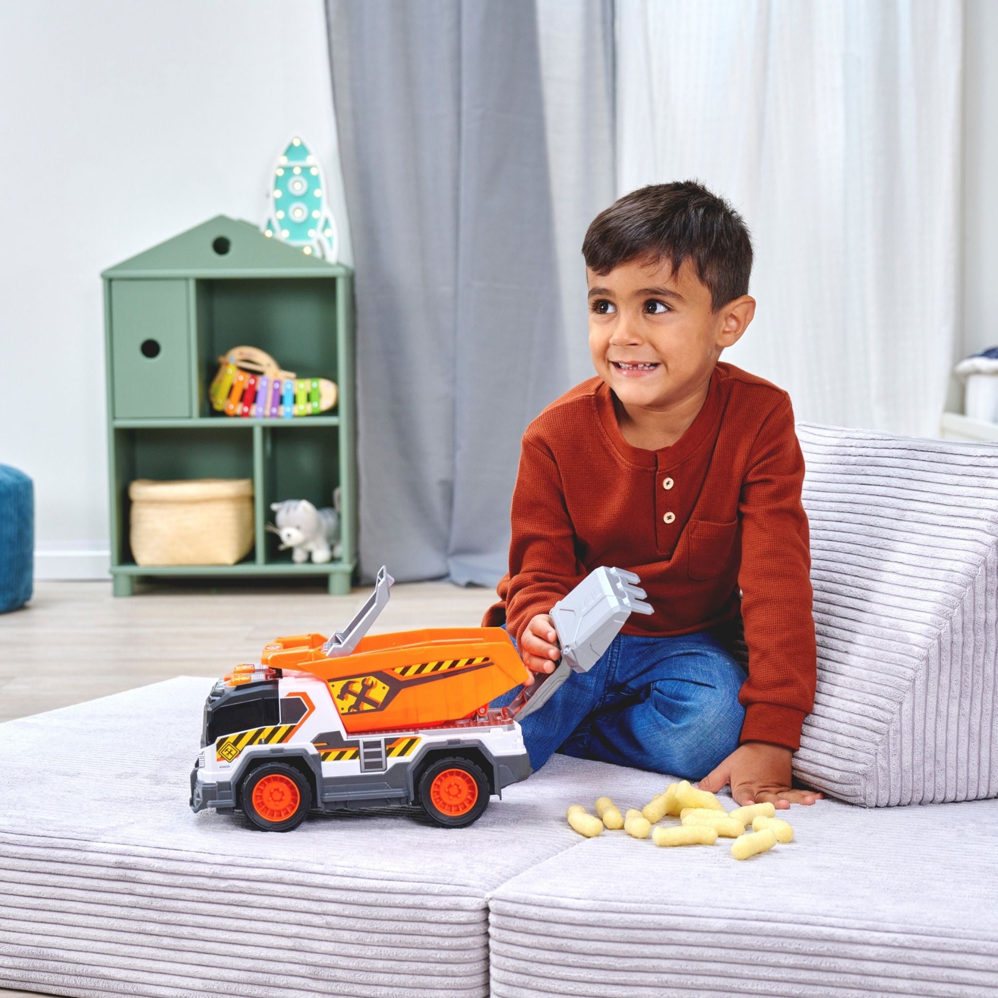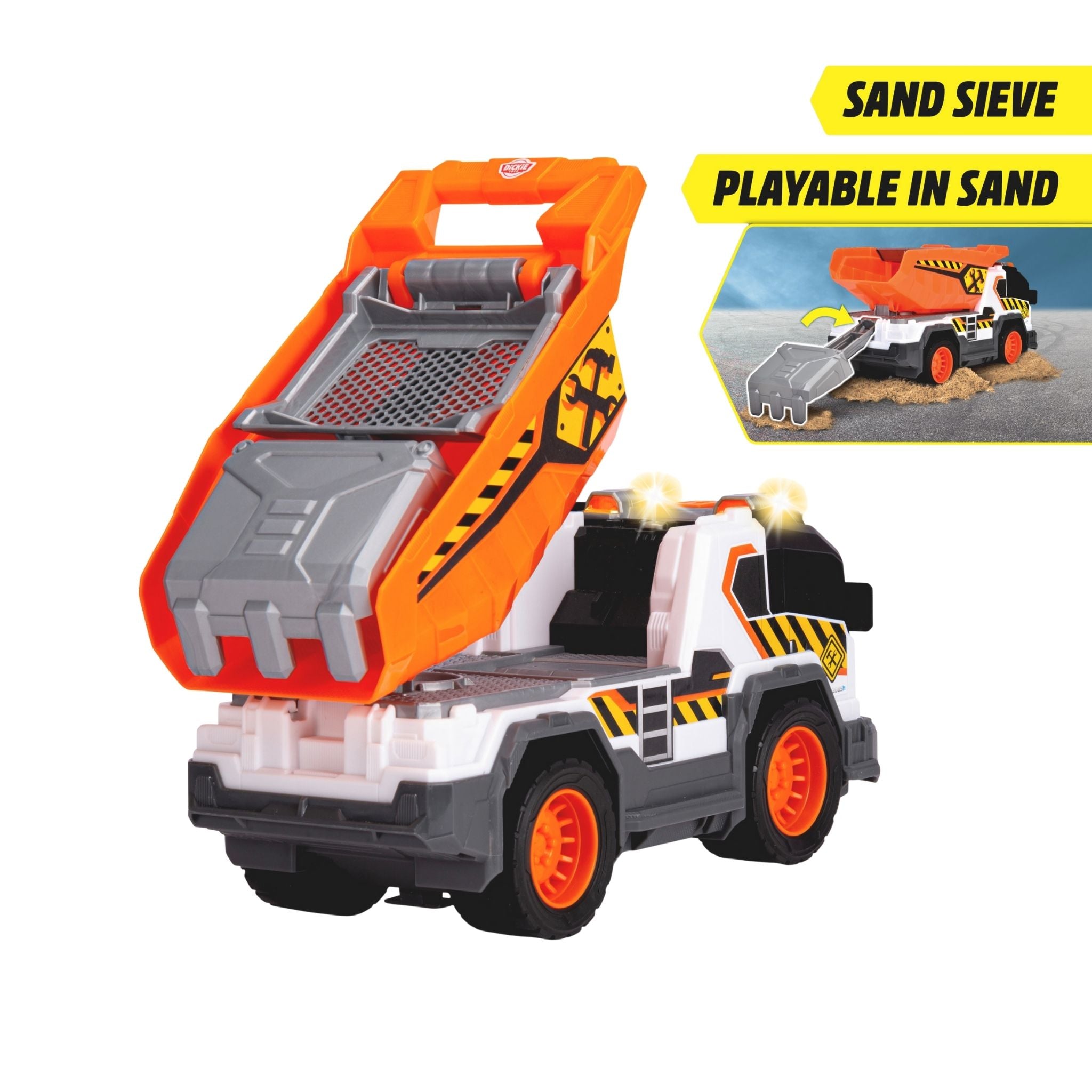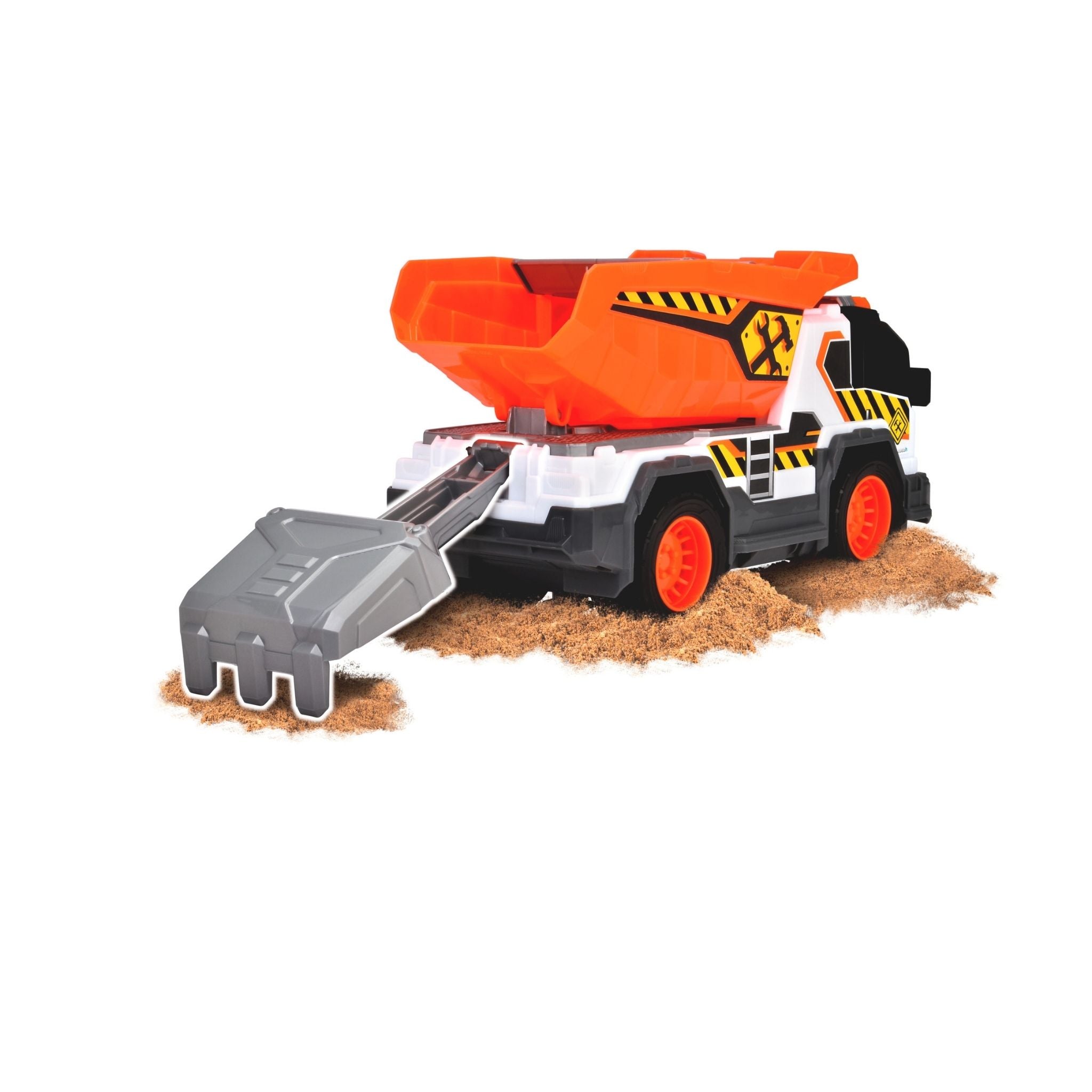 Dickie çöp kamyonu, çocukların gerçek hayattaki belediye araçlarını yakından tanımasını sağlayan, detaylı ve etkileşimli bir oyuncak modelidir. Günlük temizlik ve geri dönüşüm süreçlerini oyunla birleştiren bu kamyon, ışıklı ve sesli özellikleriyle çocukların dikkatini çekerken uzun süreli ve eğlenceli bir oyun deneyimi sunar. Yaklaşık 30 cm uzunluğa sahip olan Dickie çöp kamyonu, büyük ve sağlam yapısı sayesinde hem iç hem de dış mekân oyunları için uygundur. Serbest tekerlek sistemi, kamyonun farklı zeminlerde rahatça hareket etmesini sağlarken manuel kaldırma ve boşaltma mekanizması, gerçek bir çöp toplama sürecini taklit eder. Bu özellik, çocukların el-göz koordinasyonunu ve ince motor becerilerini destekler. Işıklı ve sesli fonksiyonlar, oyuna gerçekçilik kazandırır. Motor çalıştırma sesi, geri vites uyarısı ve çöp boşaltma efektleri sayesinde çocuklar kendilerini adeta gerçek bir çöp kamyonu kullanıyormuş gibi hisseder. Ürünle birlikte gelen aksesuarlar, oyun senaryolarını zenginleştirerek hayal gücünü geliştirmeye yardımcı olur. Pillerin kutu içeriğine dahil olması, ürünü kutudan çıkar çıkmaz kullanıma hazır hale getirir. Dayanıklı malzemeden üretilen Dickie çöp kamyonu, 3 yaş ve üzeri çocuklar için güvenli bir kullanım sunar. Hem bireysel oyunlarda hem de arkadaşlarla oynanan grup oyunlarında keyifli bir deneyim sağlayan bu model, şehir temalı oyuncakları seven çocuklar için ideal bir tercihtir.