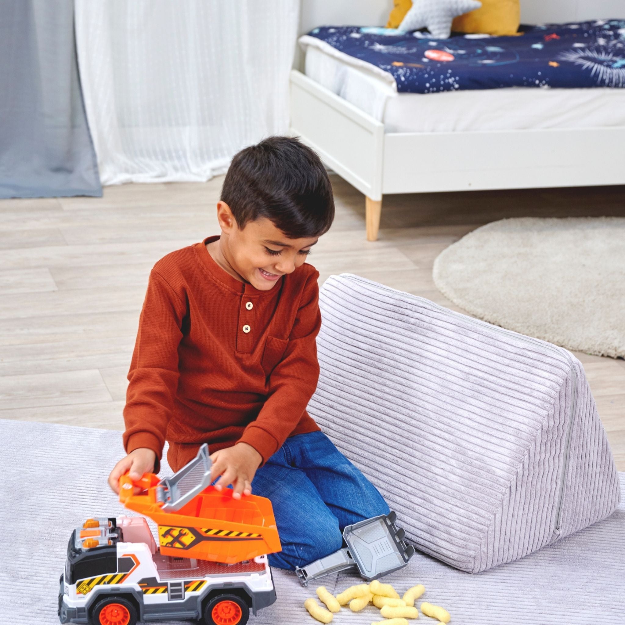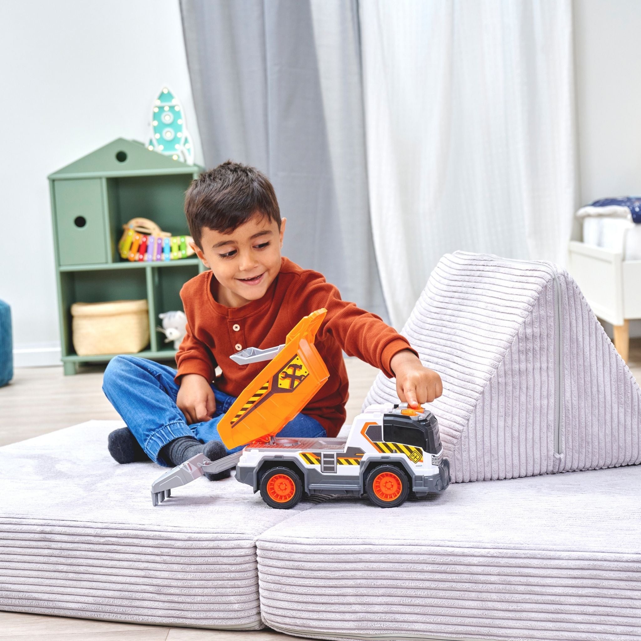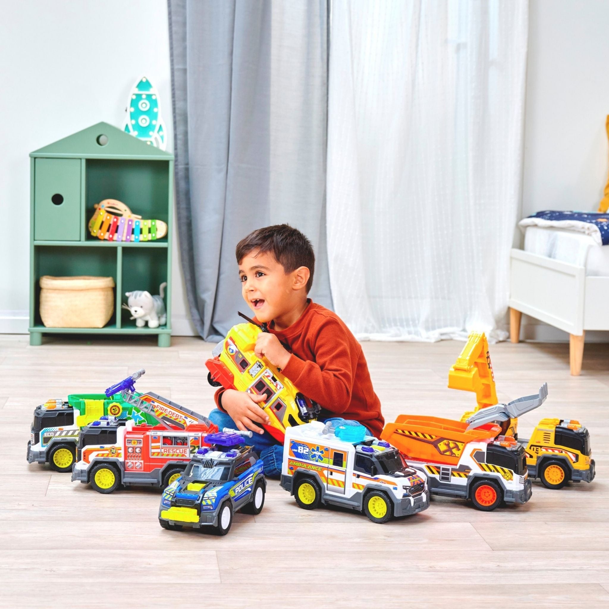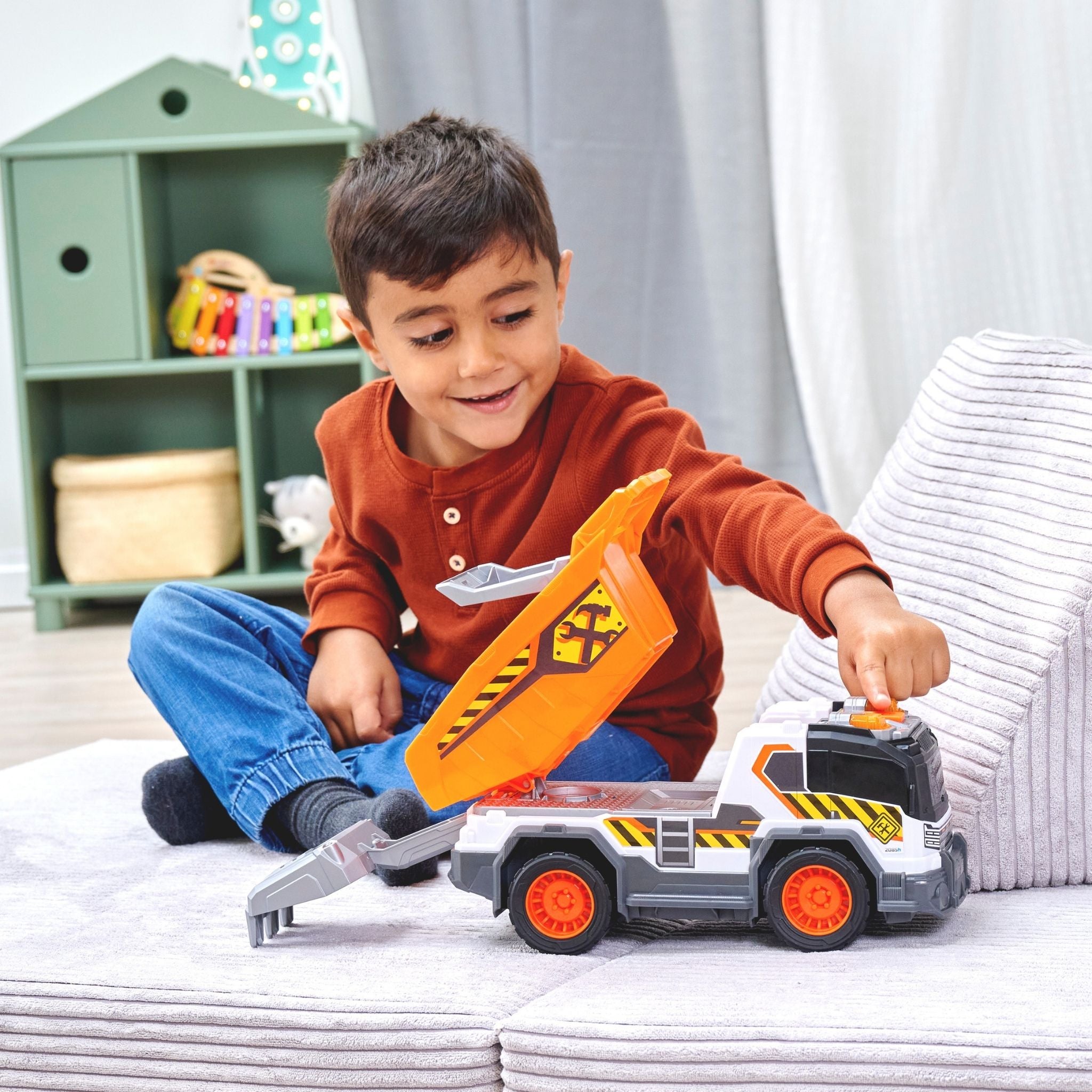 Dickie çöp kamyonu, çocukların gerçek hayattaki belediye araçlarını yakından tanımasını sağlayan, detaylı ve etkileşimli bir oyuncak modelidir. Günlük temizlik ve geri dönüşüm süreçlerini oyunla birleştiren bu kamyon, ışıklı ve sesli özellikleriyle çocukların dikkatini çekerken uzun süreli ve eğlenceli bir oyun deneyimi sunar. Yaklaşık 30 cm uzunluğa sahip olan Dickie çöp kamyonu, büyük ve sağlam yapısı sayesinde hem iç hem de dış mekân oyunları için uygundur. Serbest tekerlek sistemi, kamyonun farklı zeminlerde rahatça hareket etmesini sağlarken manuel kaldırma ve boşaltma mekanizması, gerçek bir çöp toplama sürecini taklit eder. Bu özellik, çocukların el-göz koordinasyonunu ve ince motor becerilerini destekler. Işıklı ve sesli fonksiyonlar, oyuna gerçekçilik kazandırır. Motor çalıştırma sesi, geri vites uyarısı ve çöp boşaltma efektleri sayesinde çocuklar kendilerini adeta gerçek bir çöp kamyonu kullanıyormuş gibi hisseder. Ürünle birlikte gelen aksesuarlar, oyun senaryolarını zenginleştirerek hayal gücünü geliştirmeye yardımcı olur. Pillerin kutu içeriğine dahil olması, ürünü kutudan çıkar çıkmaz kullanıma hazır hale getirir. Dayanıklı malzemeden üretilen Dickie çöp kamyonu, 3 yaş ve üzeri çocuklar için güvenli bir kullanım sunar. Hem bireysel oyunlarda hem de arkadaşlarla oynanan grup oyunlarında keyifli bir deneyim sağlayan bu model, şehir temalı oyuncakları seven çocuklar için ideal bir tercihtir.
