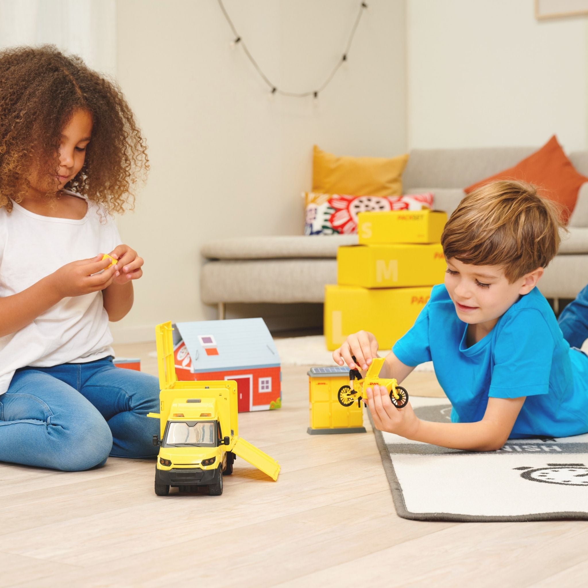 Dickie DHL Kargo Teslimat Araç Seti, lojistik ve teslimat dünyasını oyunla tanıştıran gerçekçi bir taşıma setidir. DHL markasının ikonik sarı renkleri ve detaylı tasarımıyla hazırlanan bu 25 cm uzunluğundaki araç, minik kuryelere heyecan dolu bir oyun deneyimi sunar. Gerçekçi görünümü ve hareketli parçalarıyla çocukların rol yapma becerilerini geliştirirken, taşıma ve teslimat kavramlarını eğlenceli bir şekilde öğretir. Dickie DHL Kargo Teslimat Araç Seti, çocuklara eğlenceli bir şekilde teslimat yapmayı öğretirken onların hayal gücünü ve el becerilerini geliştirir. Gerçekçi tasarımı ve sağlam yapısı sayesinde uzun süreli oyun keyfi sunar.