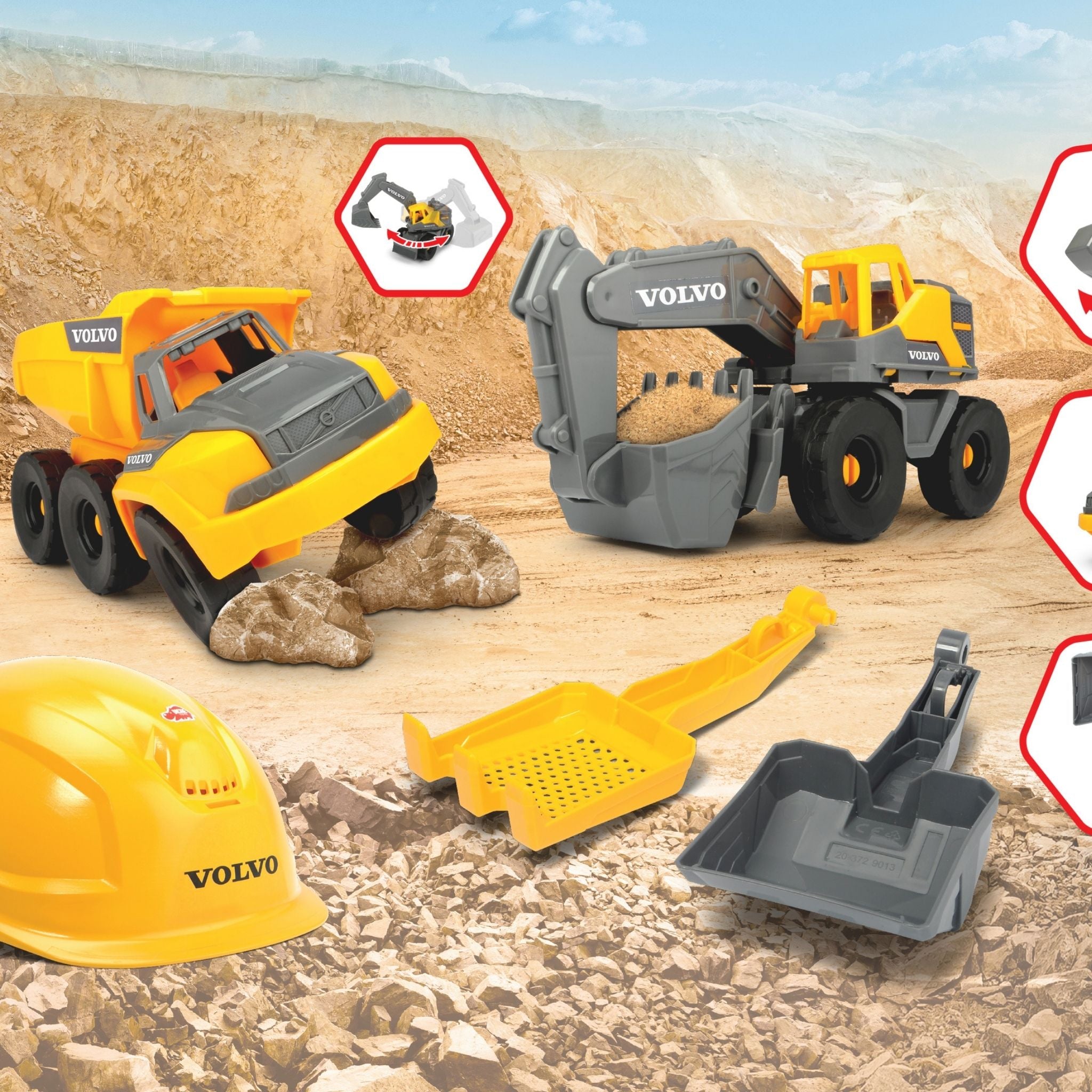 Dickie Volvo Yapı İnşaat Oyun Seti, çocukları inşaat dünyasıyla tanıştıran, yaratıcı oyunları teşvik eden bir set olarak tasarlandı! Gerçekçi Volvo araçları, ayarlanabilir inşaatçı kaskı ve çocukların keşfetmesini sağlayan inşaat aksesuarları ile oyun saatlerini daha eğlenceli hale getiriyor. Dickie Volvo Yapı İnşaat Oyun Seti ile çocuklar hayal güçlerini kullanarak kendi inşaatlarını yönetmeye hazır!