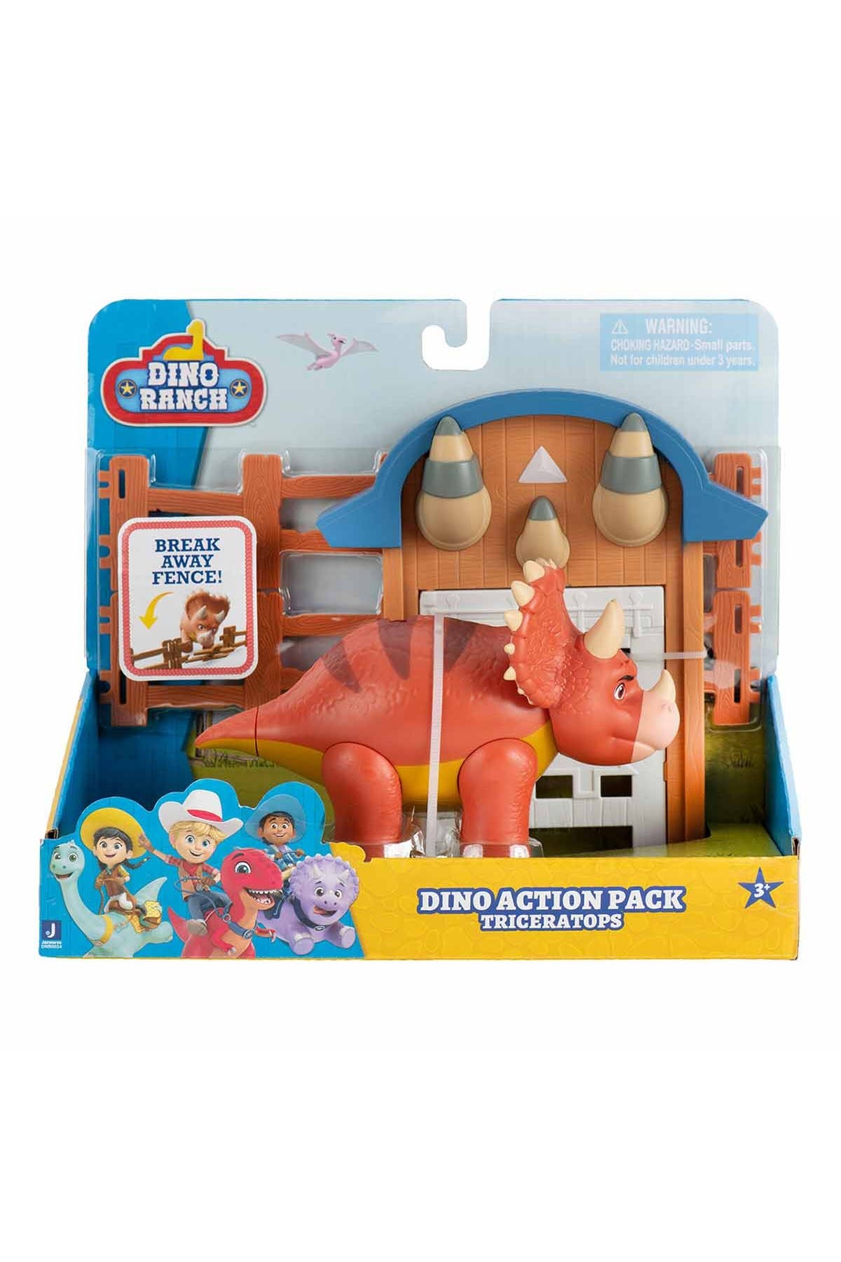 Dino Ranch macerası Aksiyon Paketi sürprizleriyle devam ediyor! Aksiyon Paketlerinde Dino Çiftliği’nin en sevilen dinozorları kendi türlerine göre tasarlanan tasarlanmış çiftlik kapıları ve çitleriyle geliyor. Uzuvları hareket ettirilebilen dinozorların kafalarını ve kuyruklarını hareket ettirerek çitleri kırmak çok eğlenceli! Ek yerlerinden kırılan çitler tekrar takılabiliyor ve eğlence hiç bitmiyor!