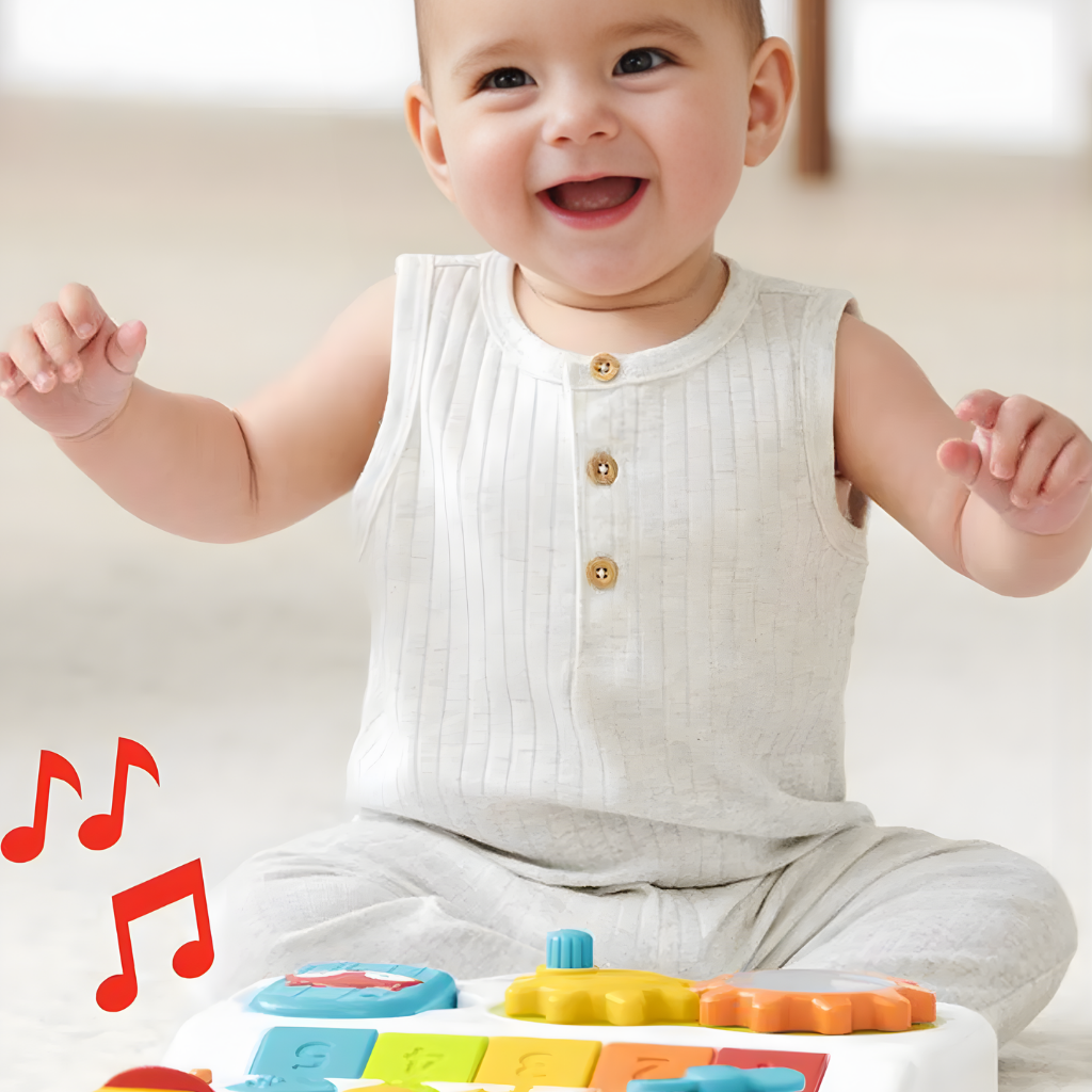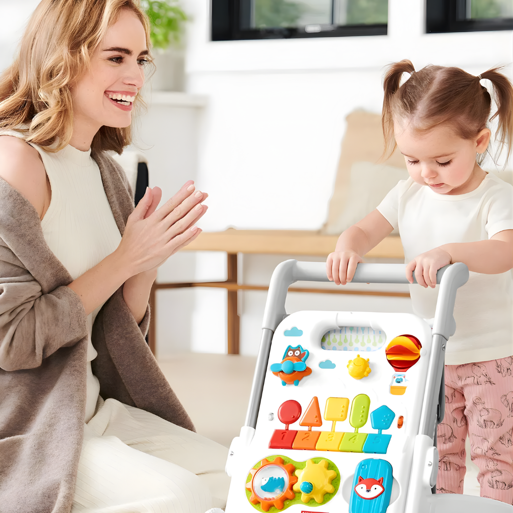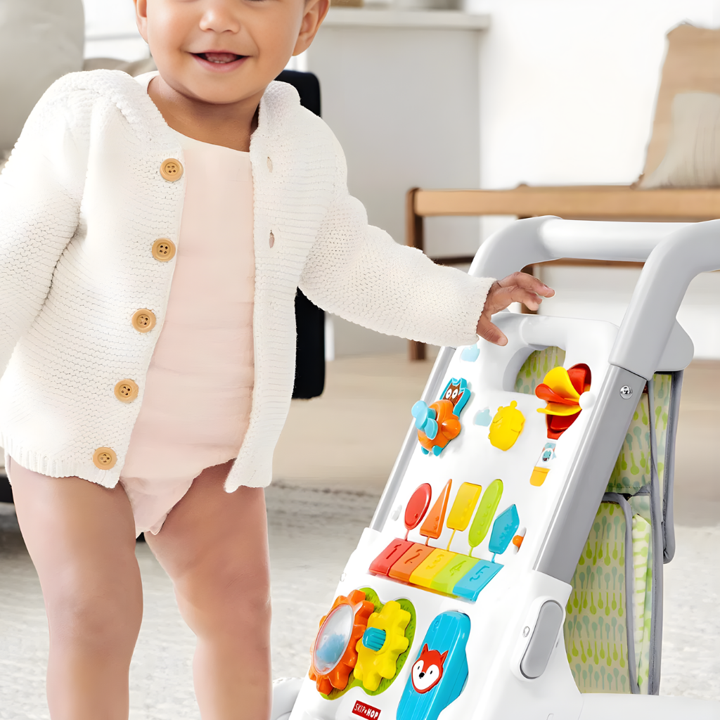 Skip Hop Explore More 4'in 1 Yürüteç, bebeğinizin gelişim sürecine uzun süre eşlik eden çok fonksiyonlu bir aktivite merkezidir. 40’tan fazla oyun özelliği, şarkı, ses ve ışık efekti ile donatılan bu dönüştürülebilir tasarım, hem eğlence hem de öğrenmeyi bir arada sunar. Oturarak oyun döneminden ilk adımlara kadar farklı gelişim aşamalarına uyum sağlar. Skip Hop Explore More koleksiyonuna ait bu model, 6 ay ile 4 yaş arası kullanım için uygundur. Dört farklı oyun modu sayesinde bebeğiniz büyüdükçe kullanım şekli değiştirilebilir. Oturarak aktivite paneli ile oynama, gezinerek yürüteç modu, alışveriş sepeti modu ve bebek arabası modu ile çok yönlü bir deneyim sunar. Çıkarılabilir oyuncak paneli, yerde oyun veya şövale olarak kullanım imkânı sağlar. Panel üzerinde pervaneli uçak, tıkırtılı arı, sıcak hava balonu döndürücü, dönen vites ve aynalı çıngıraklı telefon gibi eğitici detaylar bulunur. Işıklı müzik klavyesi şekiller ve sayılarla etkileşim kurmayı destekler. Beş şarkı, beş ses efekti ve beş piyano notası ile müzikli keşif imkânı sunar. Denge ve hareket gelişimini destekleyen kaymaz arka tekerlekler ile hız kontrol anahtarı güvenli kullanım sağlar. Üç farklı yükseklik ayarı bulunan tutmaç, çocuğun boyuna göre ayarlanabilir. Şarkı modu, piyano modu ve ses efektleri arasında geçiş yapılabilir. Ses seviyesi ayarlanabilir özelliktedir. Skip Hop Explore More 4 Aşamalı Yürüteç 6 Ay+, çok yönlü kullanım yapısı ve zengin aktivite içeriği sayesinde bebeğinizin ilk keşiflerinden ilk adımlarına kadar gelişimini destekleyen kapsamlı bir öğrenme ve oyun merkezidir.