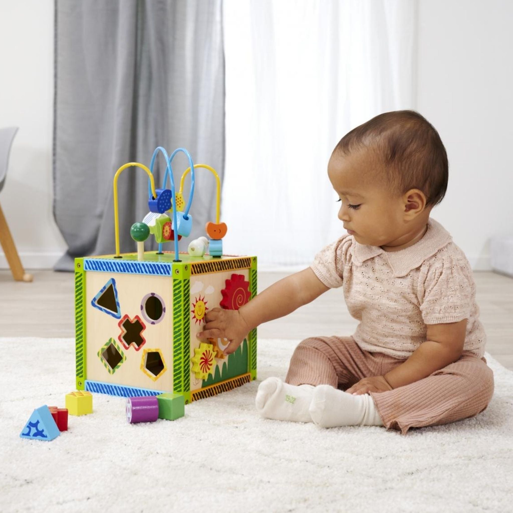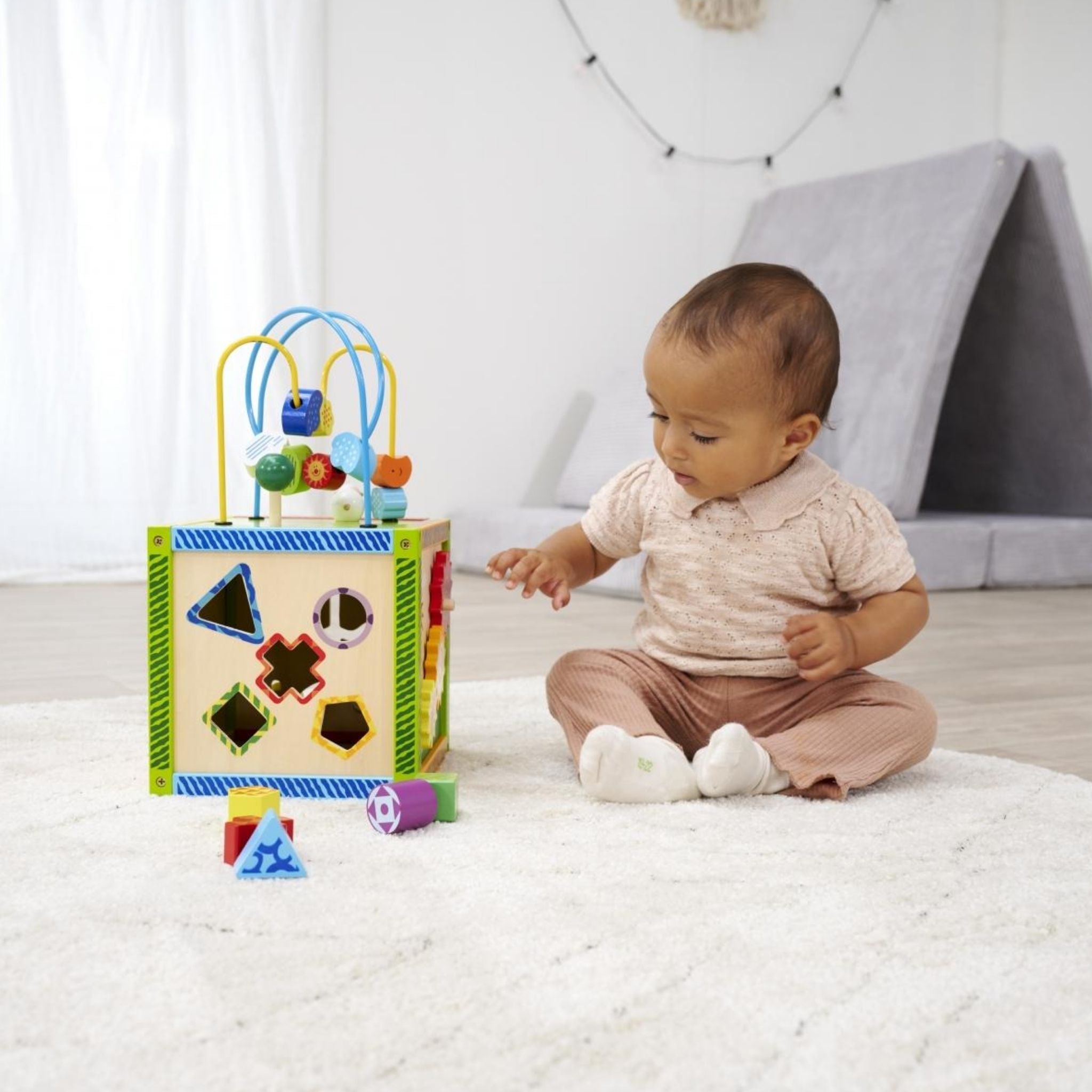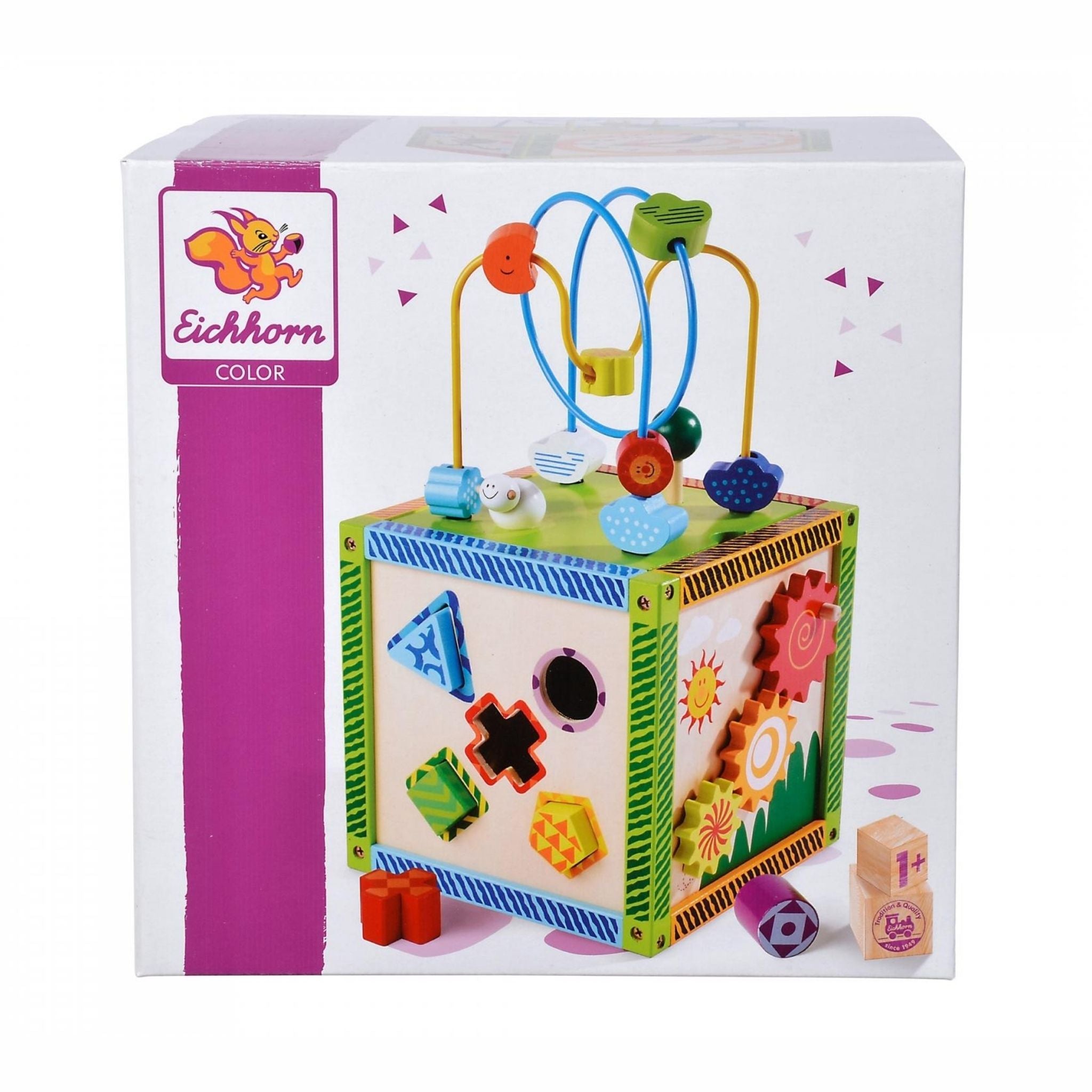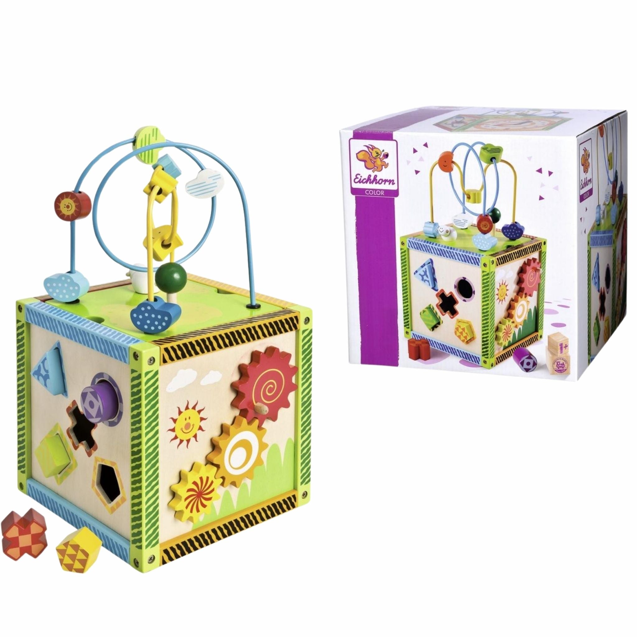 Eichhorn Color Küçük Oyun Merkezi, çocukların öğrenme sürecini eğlenceli hale getiren çok fonksiyonlu bir aktivite küpüdür. 18 ay ve üzeri çocuklar için tasarlanan bu oyun merkezi, farklı aktiviteleri bir araya getirerek hem zihinsel hem de motor gelişimi destekler. Boncuk labirenti, abaküs, şekil sıralama blokları ve çevirme oyunları gibi eğitici bölümleri sayesinde çocuklar renkleri, sayıları ve şekilleri tanırken el-göz koordinasyonlarını güçlendirir. Her yüzünde farklı bir oyun bulunan bu eğitici küp, miniklerin dikkatini çekerken uzun süreli eğlence sunar. Eğitici yönüyle Montessori prensiplerine uygun olan Eichhorn Oyun Merkezi, çocukların problem çözme yeteneğini geliştirir ve bağımsız oyun alışkanlığını teşvik eder.