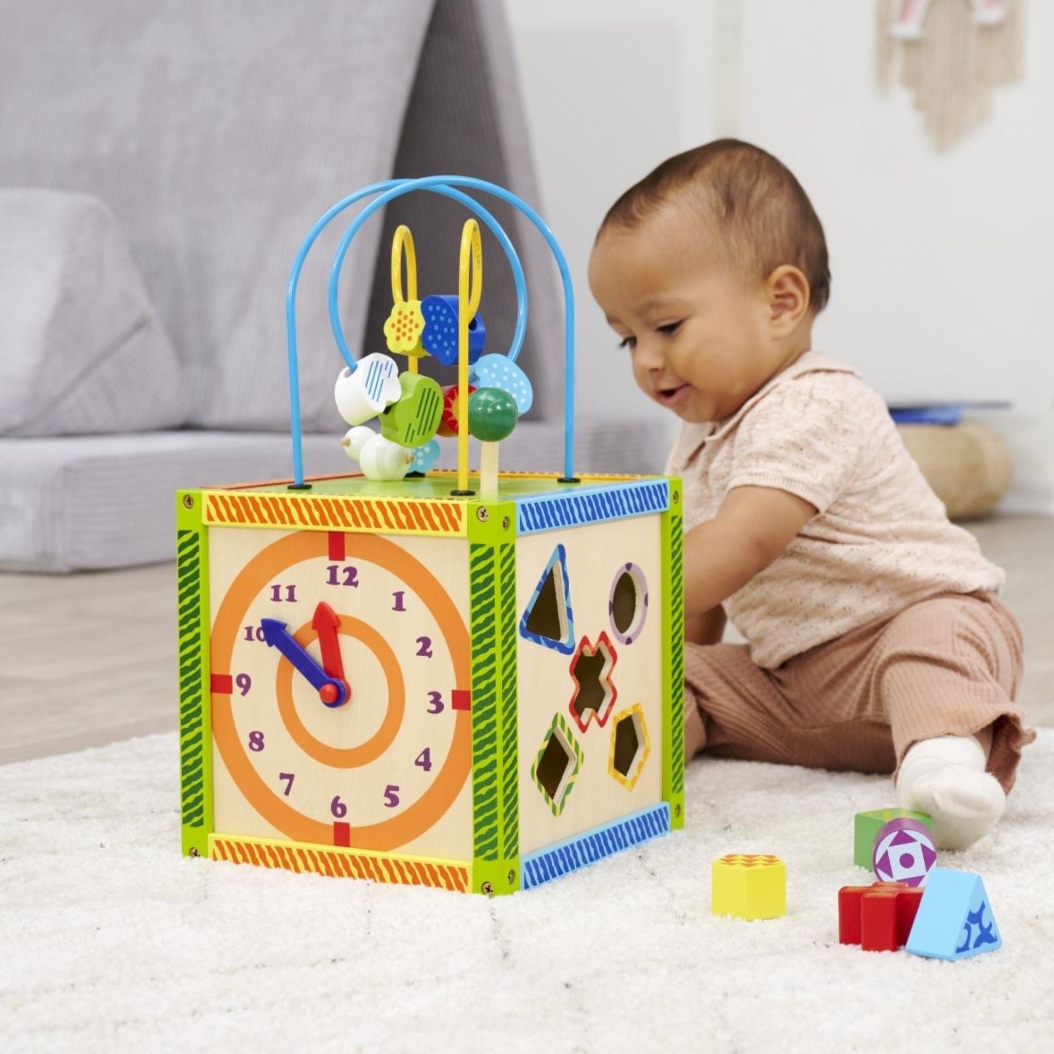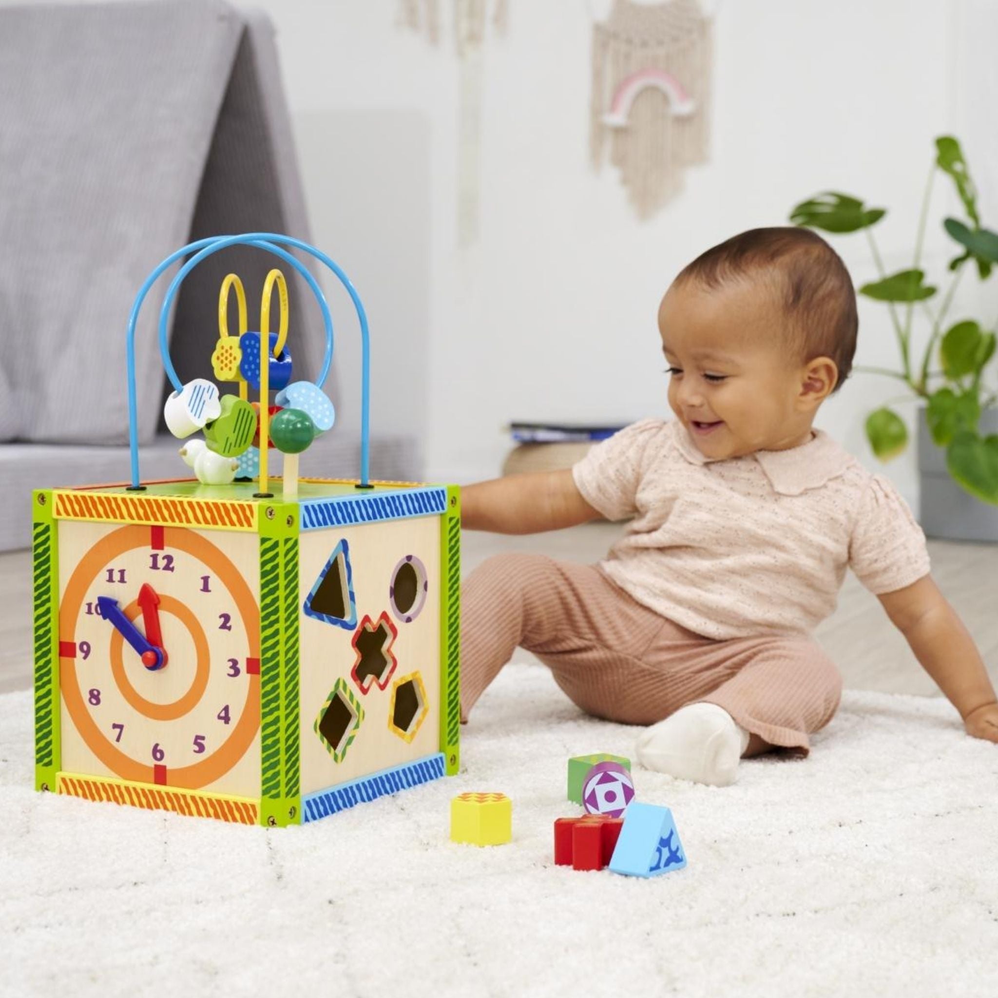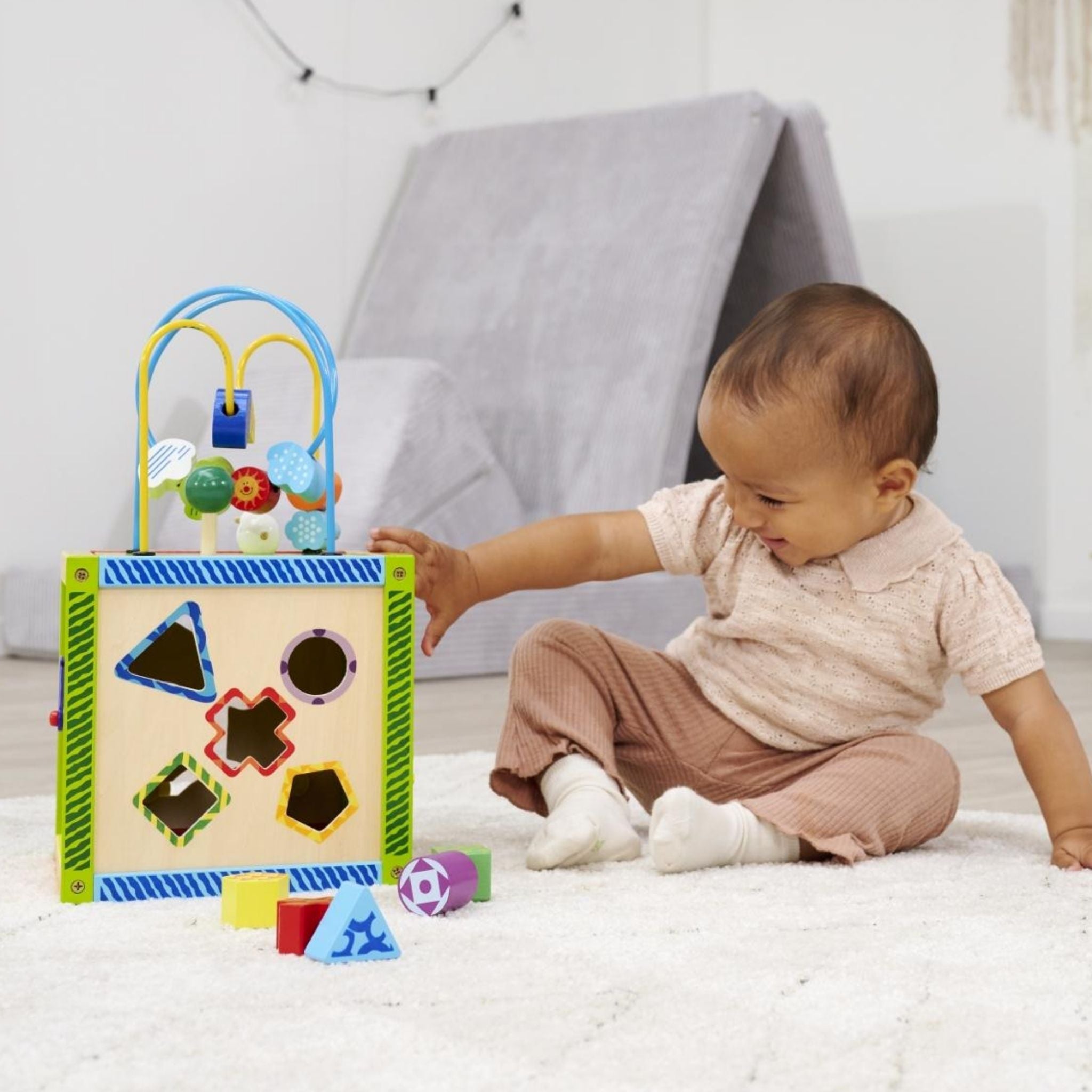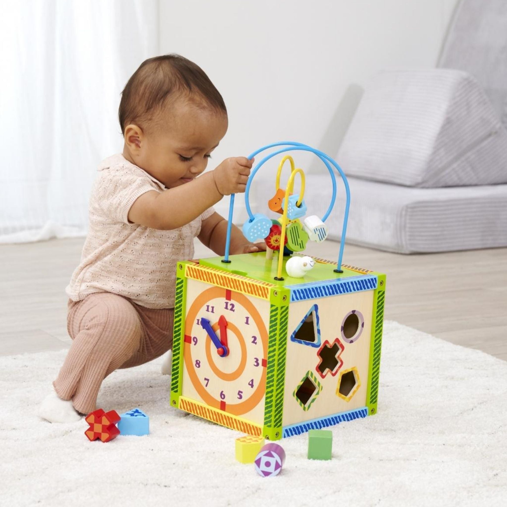 Eichhorn Color Küçük Oyun Merkezi, çocukların öğrenme sürecini eğlenceli hale getiren çok fonksiyonlu bir aktivite küpüdür. 18 ay ve üzeri çocuklar için tasarlanan bu oyun merkezi, farklı aktiviteleri bir araya getirerek hem zihinsel hem de motor gelişimi destekler. Boncuk labirenti, abaküs, şekil sıralama blokları ve çevirme oyunları gibi eğitici bölümleri sayesinde çocuklar renkleri, sayıları ve şekilleri tanırken el-göz koordinasyonlarını güçlendirir. Her yüzünde farklı bir oyun bulunan bu eğitici küp, miniklerin dikkatini çekerken uzun süreli eğlence sunar. Eğitici yönüyle Montessori prensiplerine uygun olan Eichhorn Oyun Merkezi, çocukların problem çözme yeteneğini geliştirir ve bağımsız oyun alışkanlığını teşvik eder.