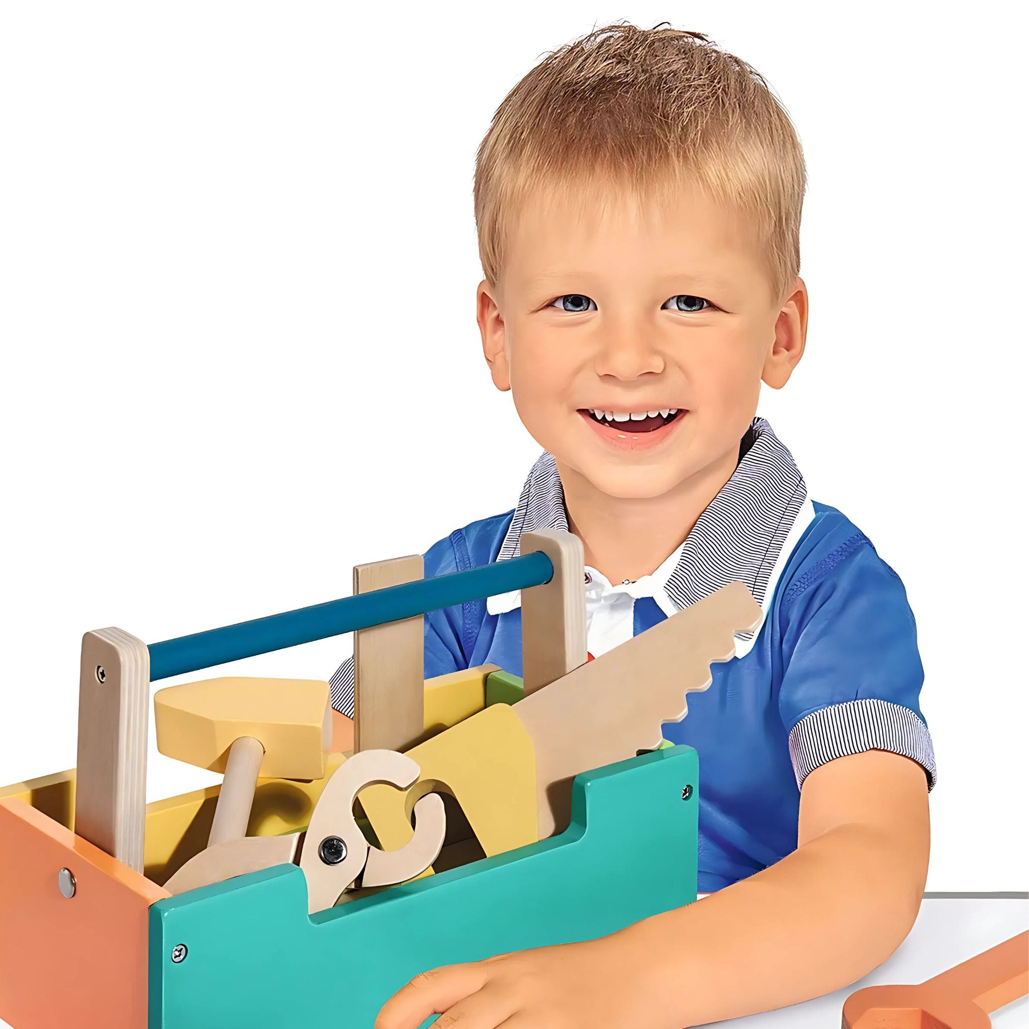 Çocukların el becerilerini geliştirmesine, hayal güçlerini kullanmasına ve problem çözme yeteneklerini keşfetmesine yardımcı olan Eichhorn Ahşap Tamir Çantası, sağlıklı ve dayanıklı huş ağacından üretilmiş eğitici bir oyuncaktır. Minik ustalar için özel olarak tasarlanan bu set, tamir ve inşa oyunlarını daha keyifli hale getirerek çocukların gelişimini destekler.