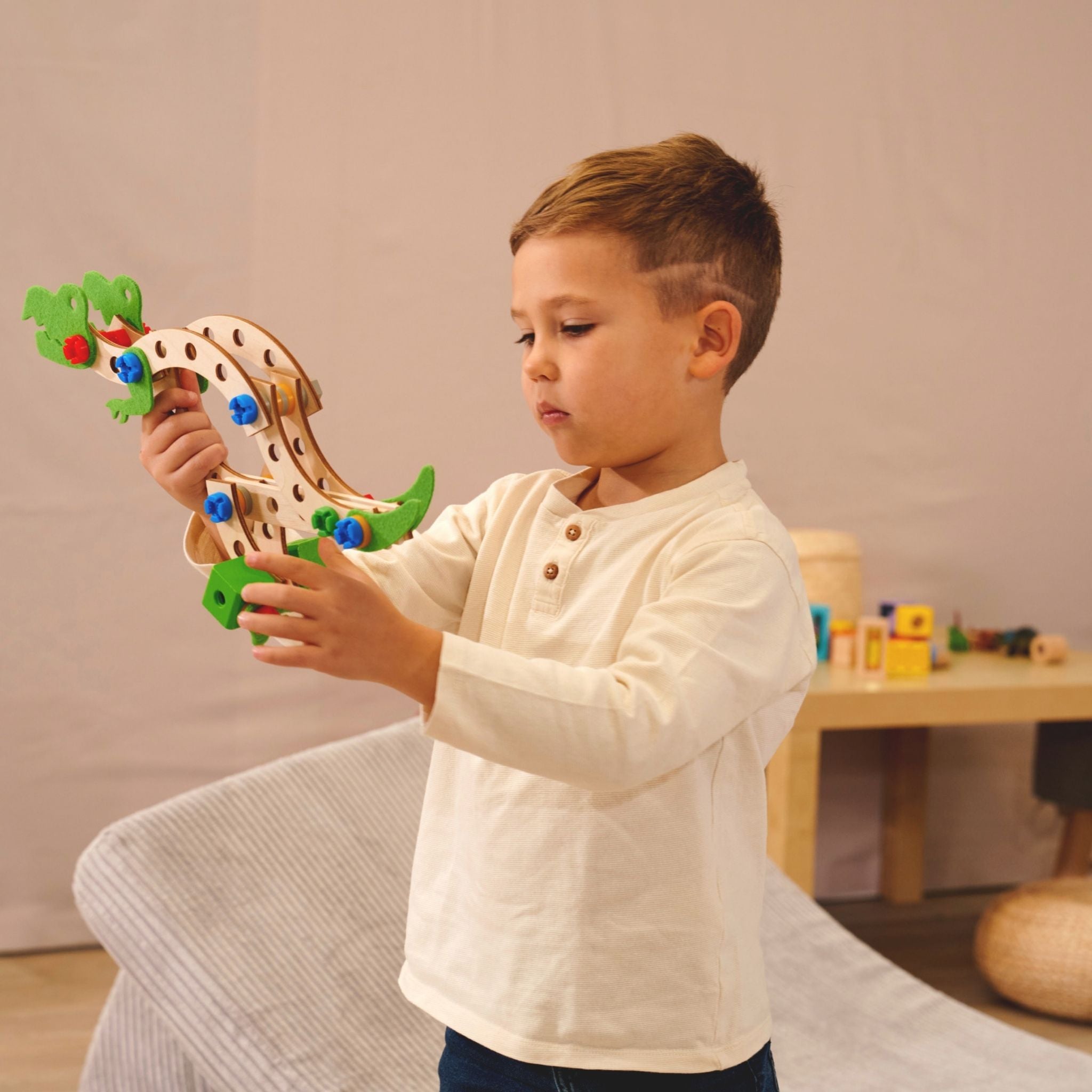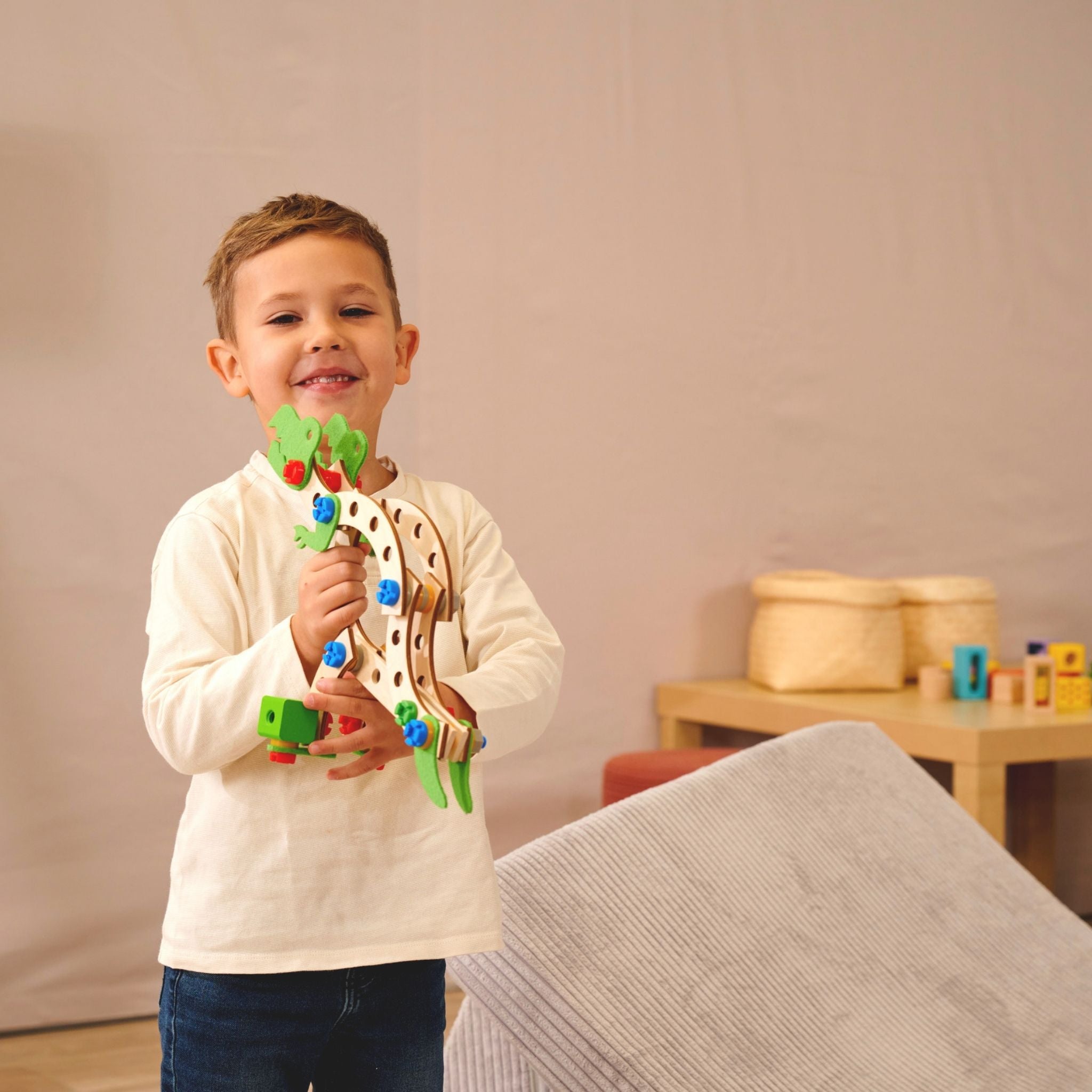 Çocukların yaratıcılığını, el becerilerini ve problem çözme yeteneklerini geliştirmek için özel olarak tasarlanan Eichhorn Dinozor Yapım Seti, 3 farklı dinozor modeli oluşturma imkanı sunan eğlenceli bir inşa setidir. Stegosaurus, T-Rex veya Brachiosaurus modellerini, verilen aletler, talimatlar ve vidalar ile inşa ederek, çocukların mekansal düşünme becerilerini güçlendirmesine yardımcı olur.