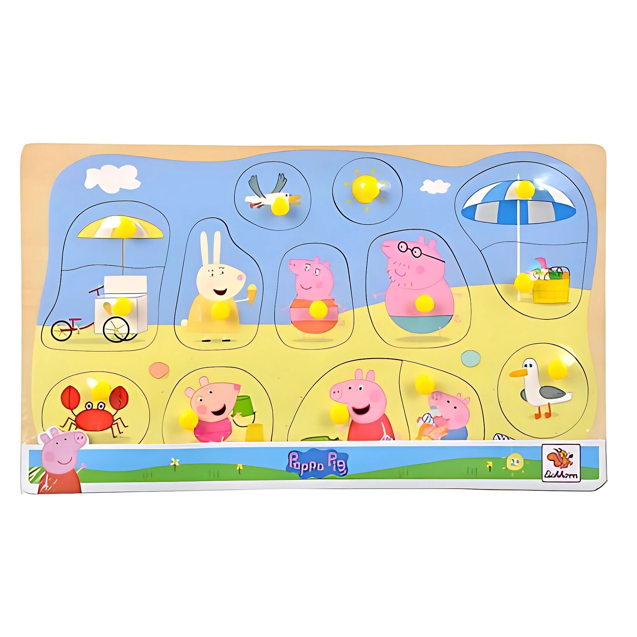 Peppa Pig temalı özel tasarımıyla, çocukların dikkatini çekerek el-göz koordinasyonlarını ve ince motor becerilerini geliştirmeye yardımcı olur. Farklı şekillerdeki 14 parça, yalnızca uygun bölmelere yerleştirildiğinde tamamlanır, böylece çocuklar şekilleri ve renkleri öğrenirken problem çözme becerilerini geliştirir. %100 FSC sertifikalı doğal ahşaptan üretilen bu puzzle, çevre dostu ve çocuk sağlığına zararsız malzemelerle tasarlanmıştır.