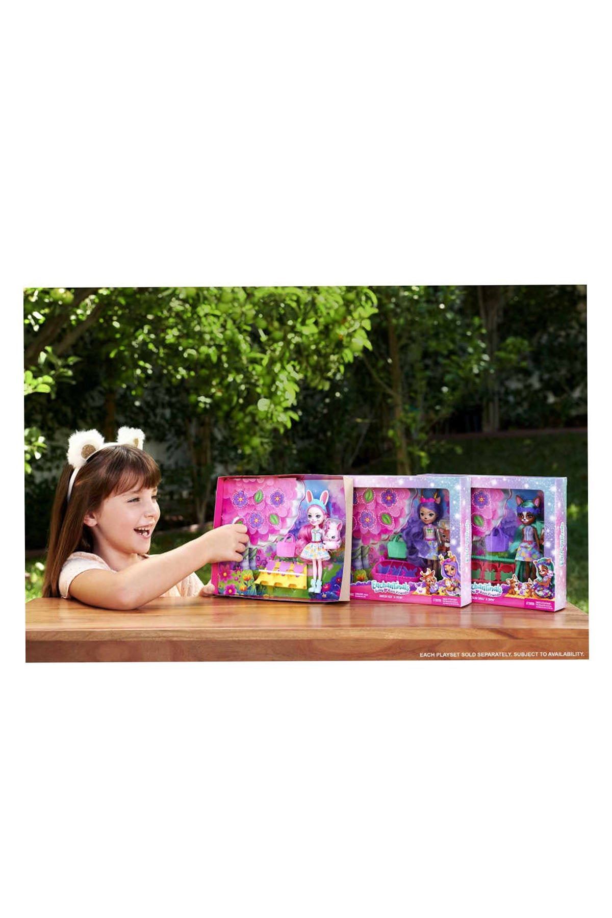 Sürpriz! Bu Enchantimals Baby Best Friends Koleksiyonu -- her kutu keyifli keşiflerle dolu. İlk olarak çocuklar, renkli bir yaprak ve çiçeklerle dolu bir ağacın yanında poz veren büyük hayvan en iyi arkadaşı ile birlikte eğlenceli saç stili ve modaya sahip 15 cm'lik sevimli bir Enchantimals bebeği aldıklarını görecekler. Daha sonra çocuklar, üç en iyi bebek arkadaşını ve dokuz bebek aksesuarını keşfetmek için yaprakları ve çiçekleri açarken neşeyle ciyaklayacak. Her kutuda toplam 12 sürpriz var! Aksesuarların tümü, her bebeğin en iyi arkadaşıyla çalışır ve daha da fazla oyun için karıştırılıp eşleştirilebilir. Bebek taşıyıcı ve bebek bezi çantası dahil! Çocuklar hepsini toplamak isteyecek!
