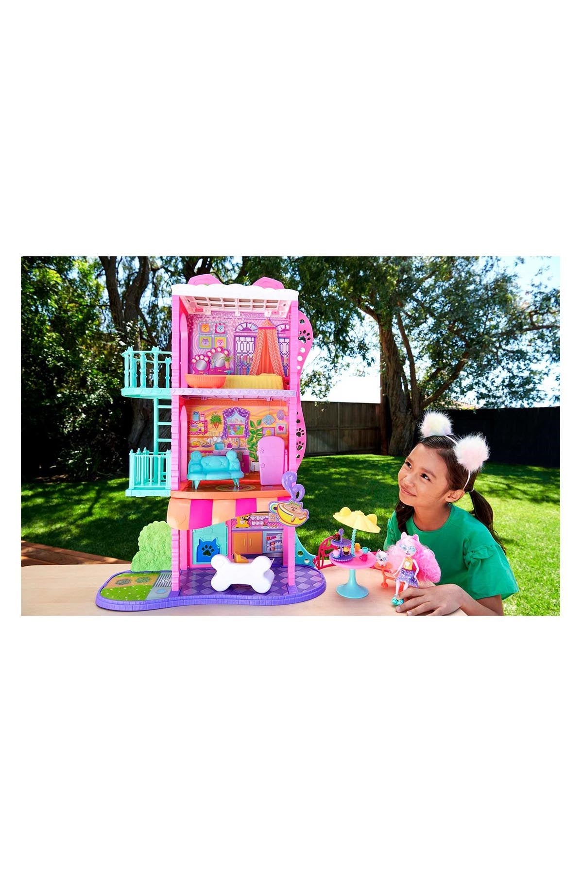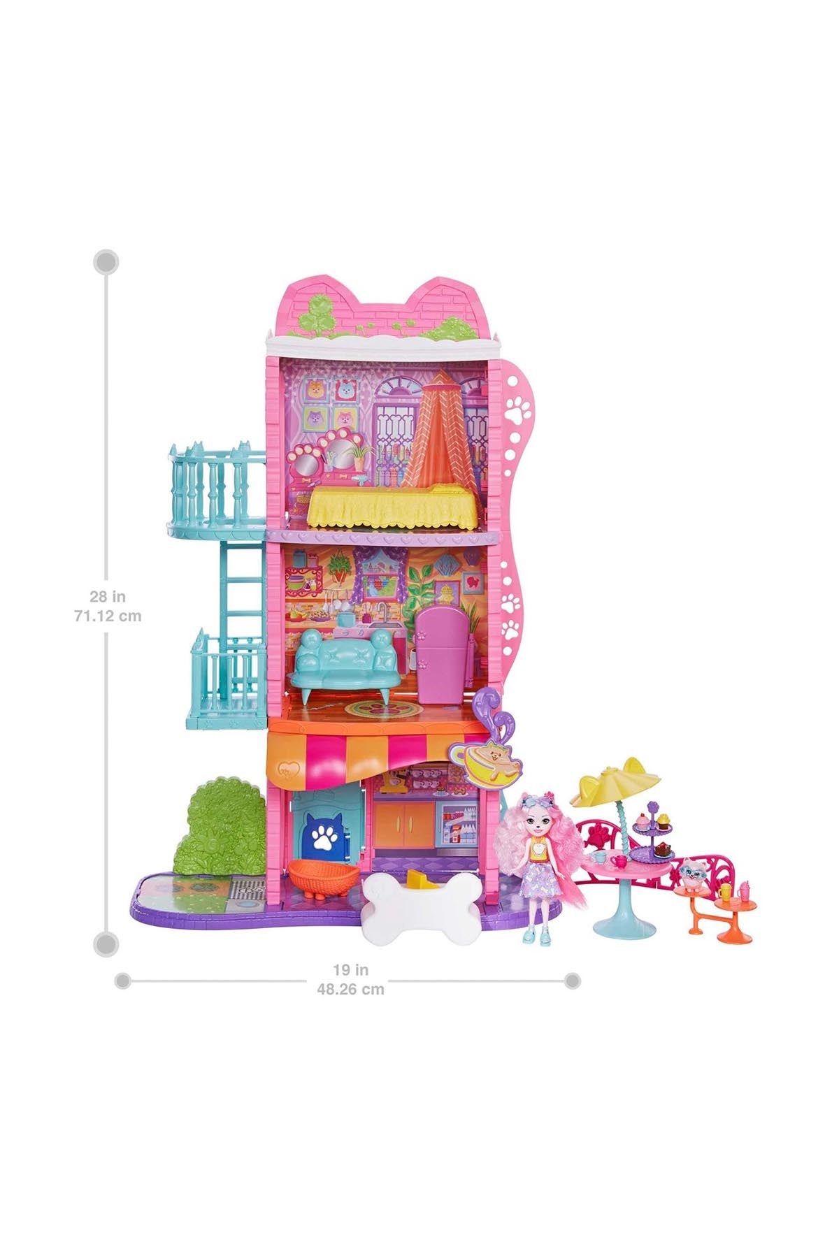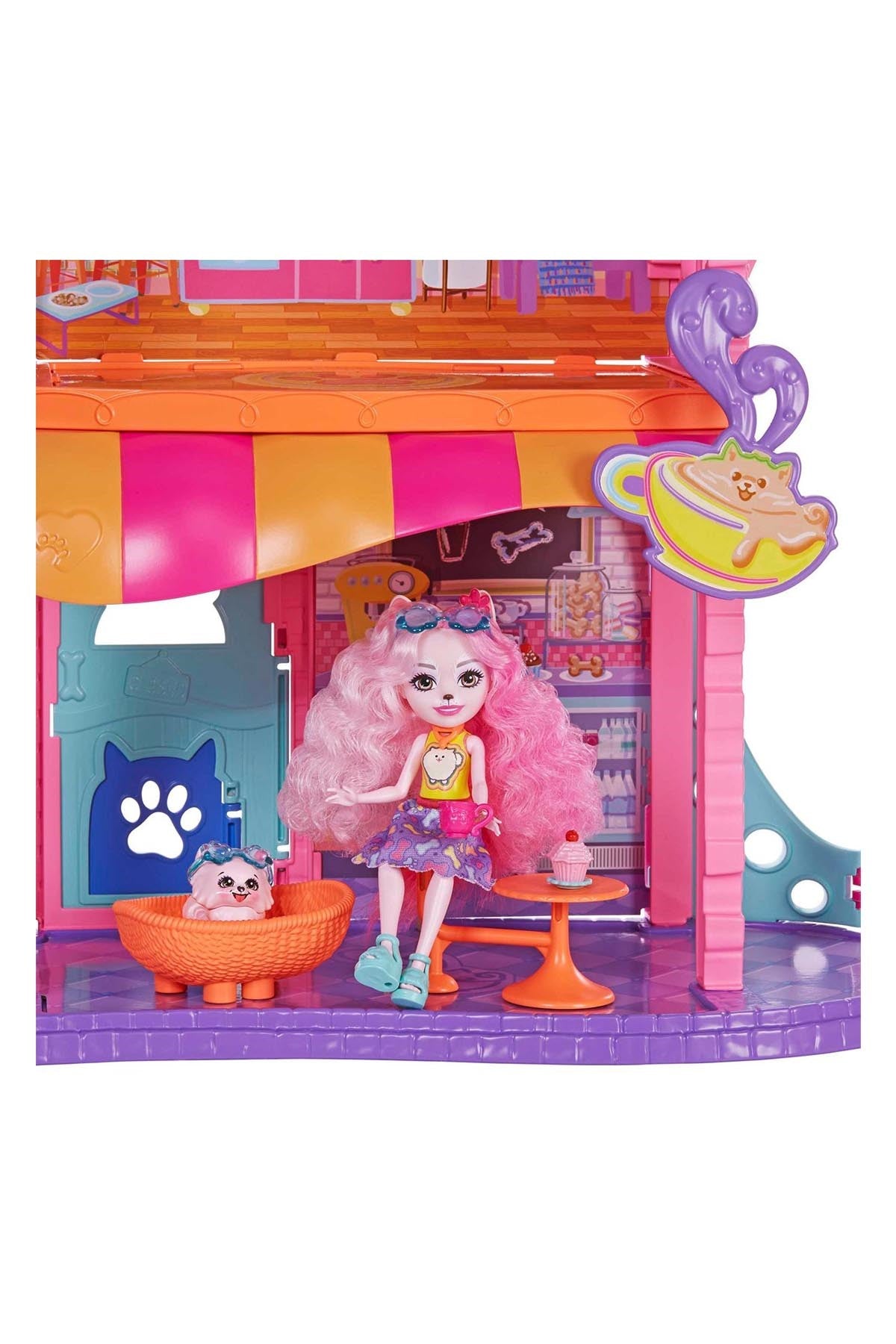 Enchantimals Şehir Evi ve Kafe Oyun Seti ile gökyüzüne yakın yaşayın! 6 oyun alanına sahip 71 cm boyundaki bu oyun seti, sınırsız hikaye anlatımı eğlencesi sunar. Pomeranian Palmer (15 cm) ve yavru köpeği Pommy de dahildir. 3 kattan oluşan oyun setinin alt katında açık verandalı oturma alanı olan bir kafe, bir oturma odası ve mutfak, yatak odası ve ayrıca 'havuzlu' bir çatı katı bulunur. Bu renkli oyun setinde ayrıca bir balkon, yangın merdiveni ve açılan bir kapı vardır. Pommy için köpek kapısı da bulunur. Bu pomeranian cinsi yavru köpekler, şehirdeki evlerine diğer Enchantimals dostlarını davet etmeyi çok sever. Model bebekler ve aksesuarları ile çocuklar çok eğlenecek!
