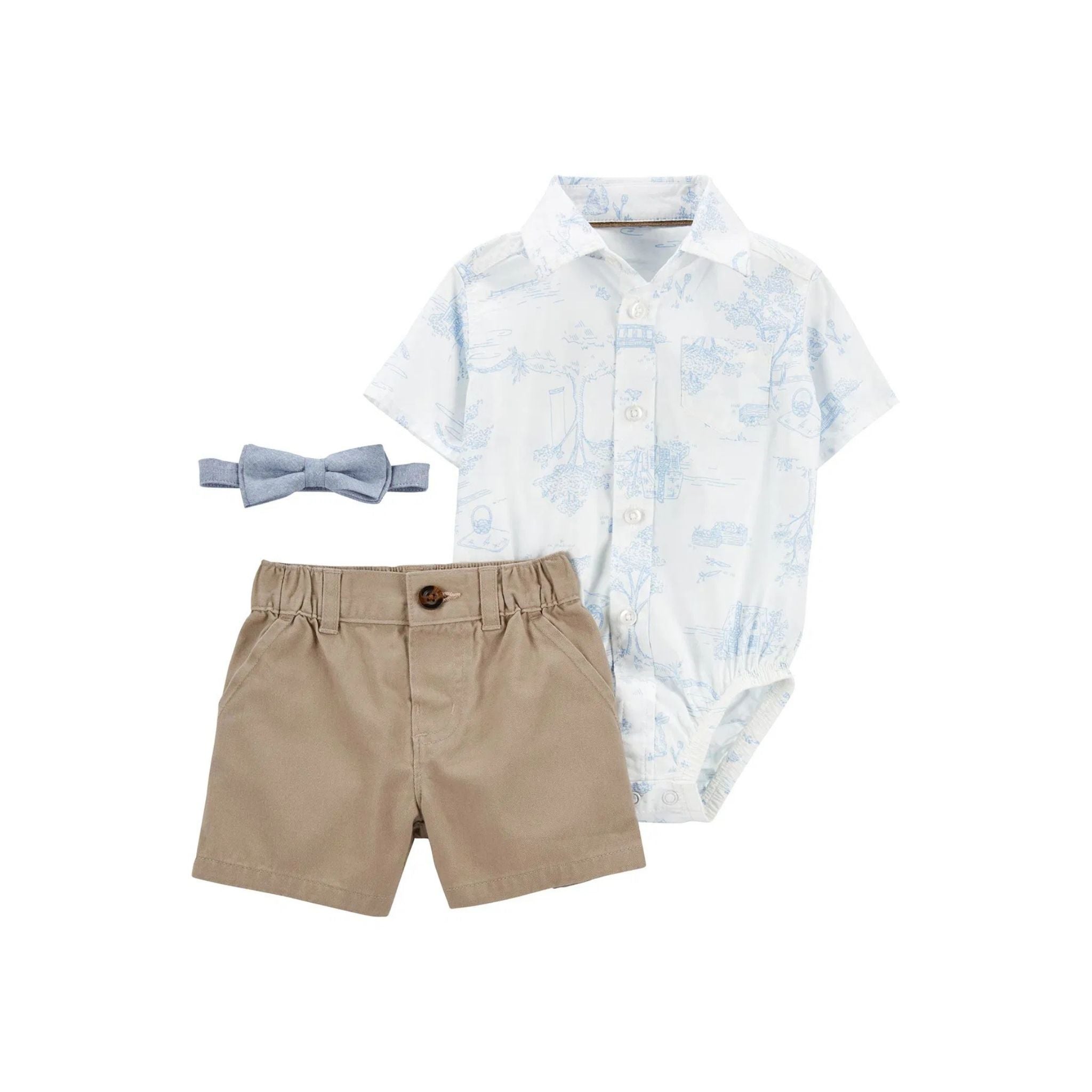 Carter's Erkek Bebek 3'lü Alt Üst Set Gömlekli Mavi, minik beylerin tarzına şıklık katan ve aynı zamanda konfor sunan mükemmel bir yazlık kombin seçeneğidir. Şort, body ve gömlekten oluşan bu üçlü set, günlük kullanım için hem pratik hem de şık bir alternatiftir. İndigo şambre gömlek %100 pamuk yapısıyla ferahlık sunarken, ribana pamuk body yumuşaklığıyla bebeğinizin cildine uyum sağlar. Fitilli pamuklu şort ise elastik yapısıyla hareket özgürlüğünü destekler. Dayanıklı kumaş yapısı ile uzun süreli kullanım sağlar.