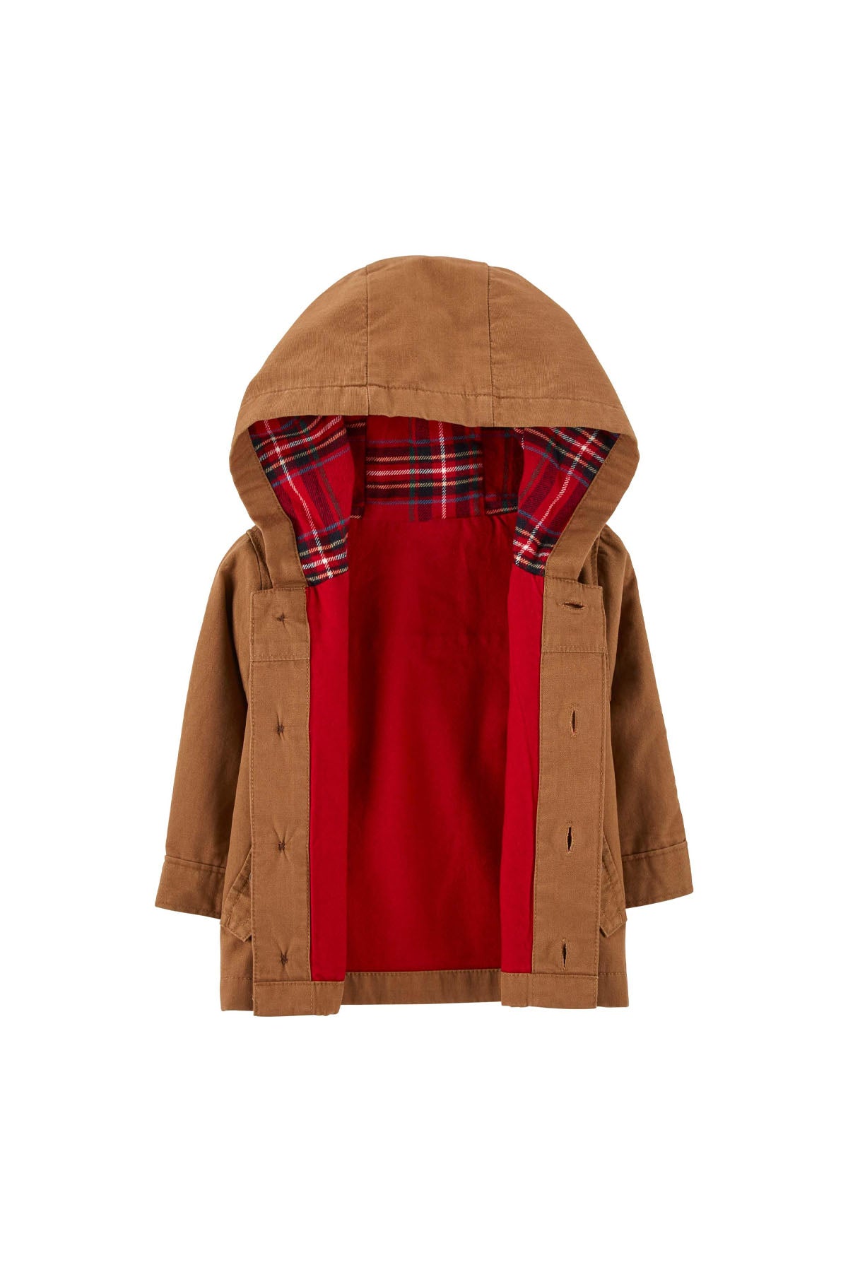 Carter's Erkek Bebek Ceket Kahverengi, miniklerin serin günlerde hem şık hem de sıcak kalması için tasarlanmıştır. Ekose flanel astarı ile yumuşak bir iç yüzeye sahip olan bu ceket, rahat kapüşonu ve fonksiyonel yan cepleriyle günlük kullanıma uygundur. Klasik görünüm sunan düğmeli ön tasarımı sayesinde kolayca giydirilip çıkarılabilir. Yumuşak dokulu dimi kumaşı ve detaylı astar yapısı, bebeklerin konforunu artırırken dayanıklılığıyla da uzun ömürlü kullanım sağlar. Hem dış mekân kullanımı hem de özel günlerde tercih edilebilecek bu kahverengi ceket, bebeğinizin stilini tamamlar.