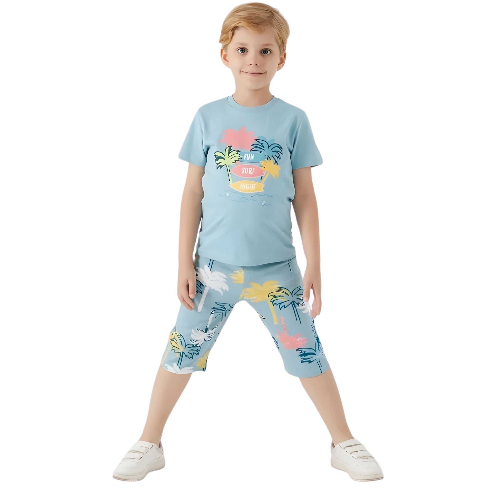 Erkek çocuk süprem kapri takım mavi, yaz mevsiminde aktif yaşam süren çocuklar için özel olarak tasarlanmış konfor odaklı bir giyim alternatifidir. Hafif ve nefes alabilen süprem kumaşı sayesinde gün boyu ferah bir kullanım sunar. Ciltle temas eden yüzeylerde yumuşak bir his oluşturan pamuklu yapısı, hassas ciltler için uygundur ve uzun süreli kullanımlarda dahi rahatsızlık hissi yaratmaz. Günlük yaşamda, evde, dışarıda veya tatil dönemlerinde rahatlıkla tercih edilebilir. Kısa kollu üst parça ile kapri boy alt parçadan oluşan bu takım, sıcak havalar için ideal bir denge sunar. Kapri boy tasarımı, hareket özgürlüğünü desteklerken aynı zamanda diz altı koruması sağlar. Regular kalıbı sayesinde vücudu sıkmaz, çocukların oyun oynarken ya da gün içindeki aktivitelerde rahatça hareket edebilmesine olanak tanır. Mavi rengi, ferah ve dinamik bir görünüm sunarak yaz kombinlerine kolayca uyum sağlar. Süprem kumaşın esnek yapısı, ürünü hem hafif hem de kullanışlı hale getirir. Günlük giyimde pratiklik sunan bu takım, tek başına kombin derdi olmadan kullanılabilir. Sade ama işlevsel tasarımı sayesinde farklı ayakkabı ve aksesuarlarla kolayca tamamlanabilir. Çocukların enerjik yapısına uyum sağlayan bu tasarım, fonksiyonellik ve rahatlığı bir arada sunar.