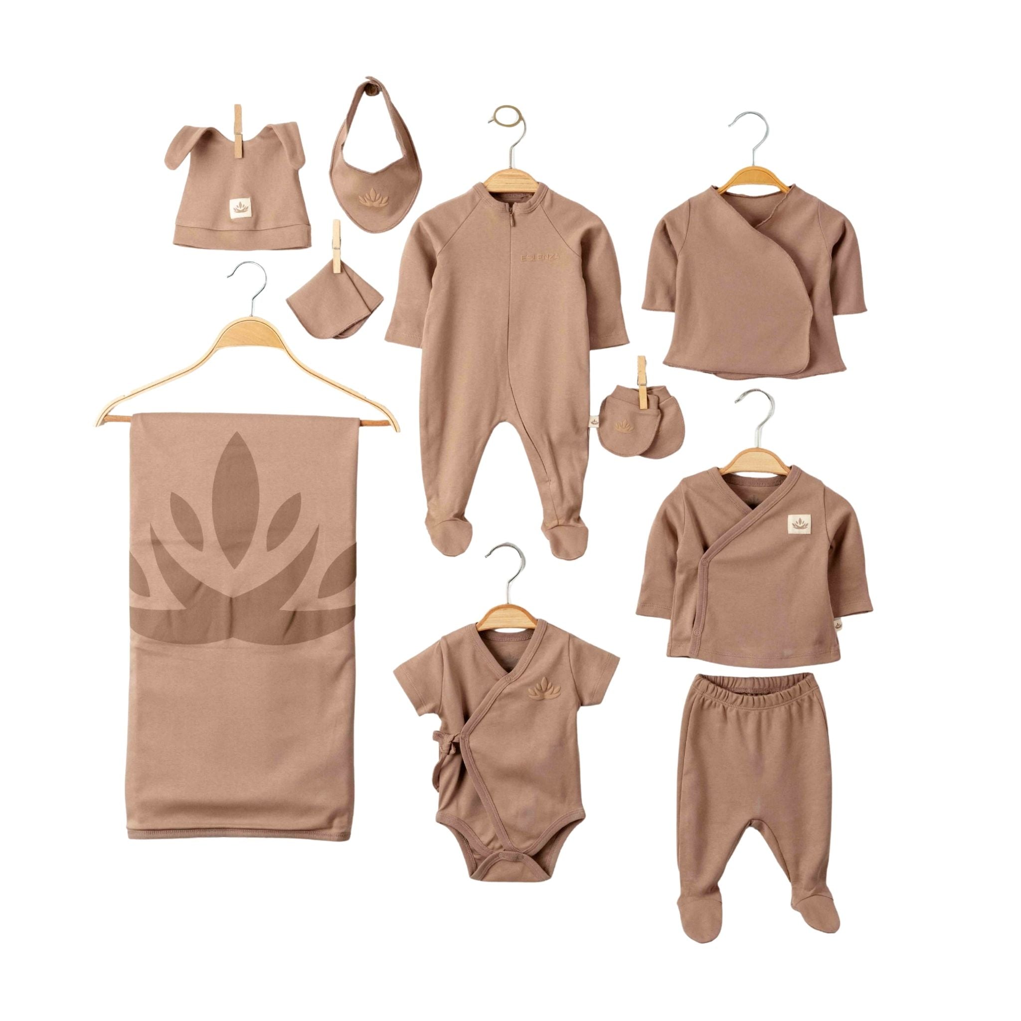 Eslenza Organik 10’lu Hastane Çıkışı Seti, yenidoğan bebeğinizin ilk günlerinde ihtiyaç duyabileceği temel tüm parçaları bir arada sunan, tamamen doğal ve güvenli bir settir. %100 organik pamuktan üretilen kumaşı, hem yumuşak hem de nefes alabilir yapısı sayesinde bebeğinizin hassas cildine nazikçe temas eder. Sert kimyasallar, sentetik katkılar veya zararlı boyalar içermeyen bu set, en güvenli malzemelerle hazırlanmıştır ve dermatolojik olarak test edilmiştir. Doğal dokusu, bebeğinizin vücut ısısını dengede tutarak gün boyunca daha rahat ve ferah hissetmesine yardımcı olur. İlk günden itibaren rahat kullanım sağlayan bu set, hem hastane çıkışında hem de evde ihtiyaç duyulan tüm temel parçaları içerir. Kolay temizlenebilir yapısı sayesinde bakım rutini pratik bir şekilde sürdürülebilir.