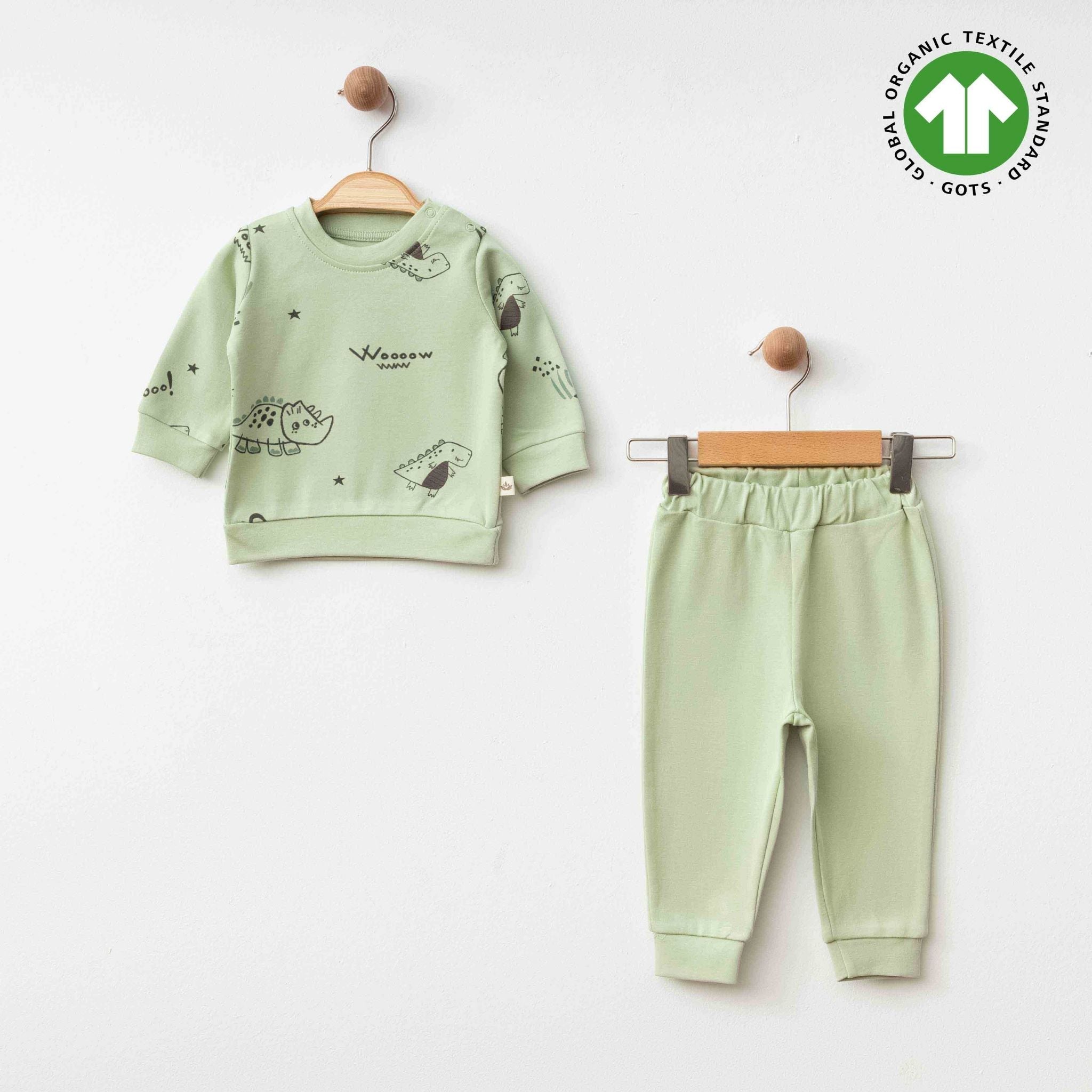 Bebeğinizin gün boyu rahat etmesi için tasarlanan Eslenza Organik Erkek Takım, yüzde yüz pamuk interlok kumaştan üretilmiştir. Doğal pamuk yapısı sayesinde cilde zarar vermez ve hassas tenlere uyumludur. Yumuşak dokusu üstün konfor sağlarken esnek yapısı bebeğin özgürce hareket etmesine imkan tanır. Uzun ömürlü ve dayanıklı kumaş formunu korur, ebeveynler için de kolay bakım avantajı sunar.