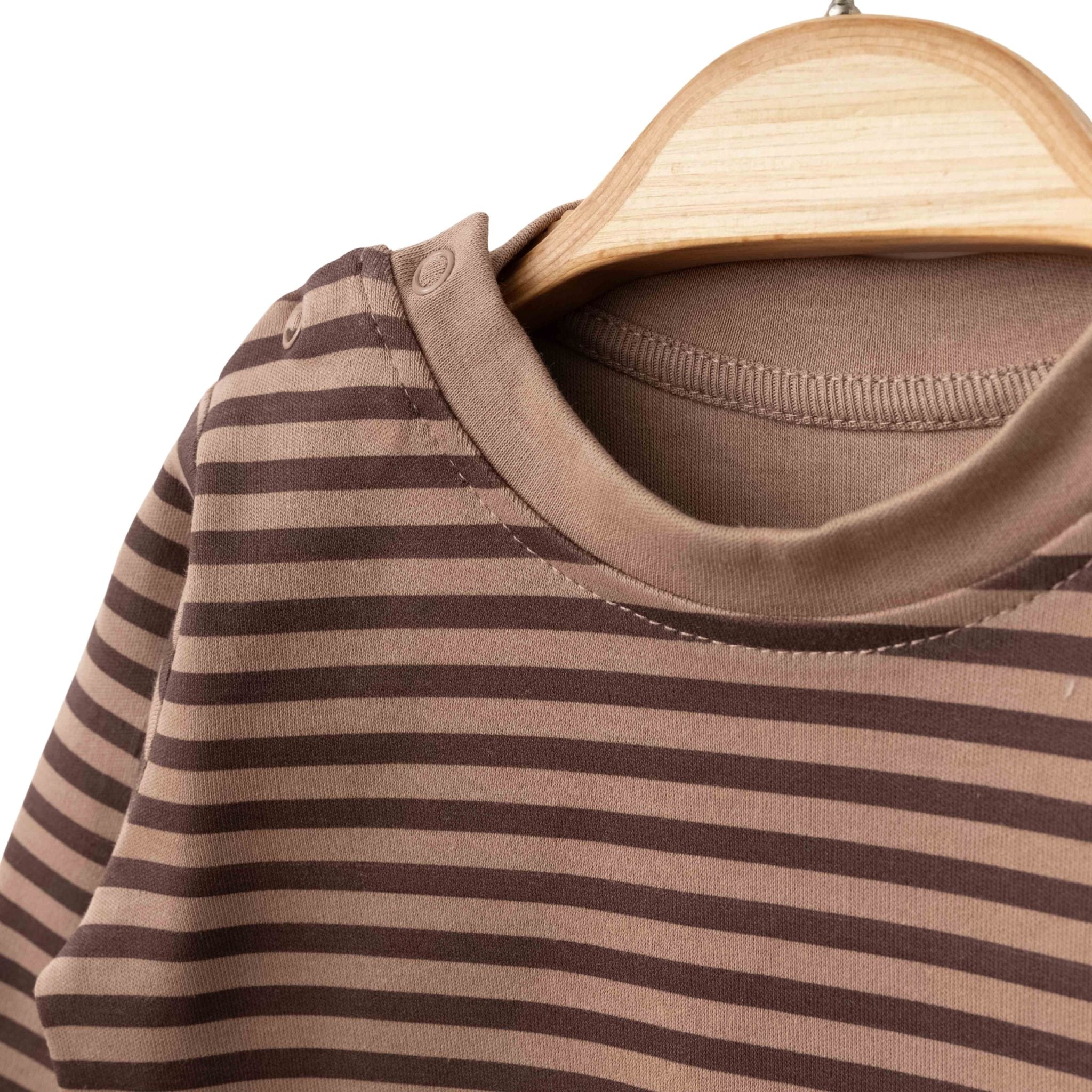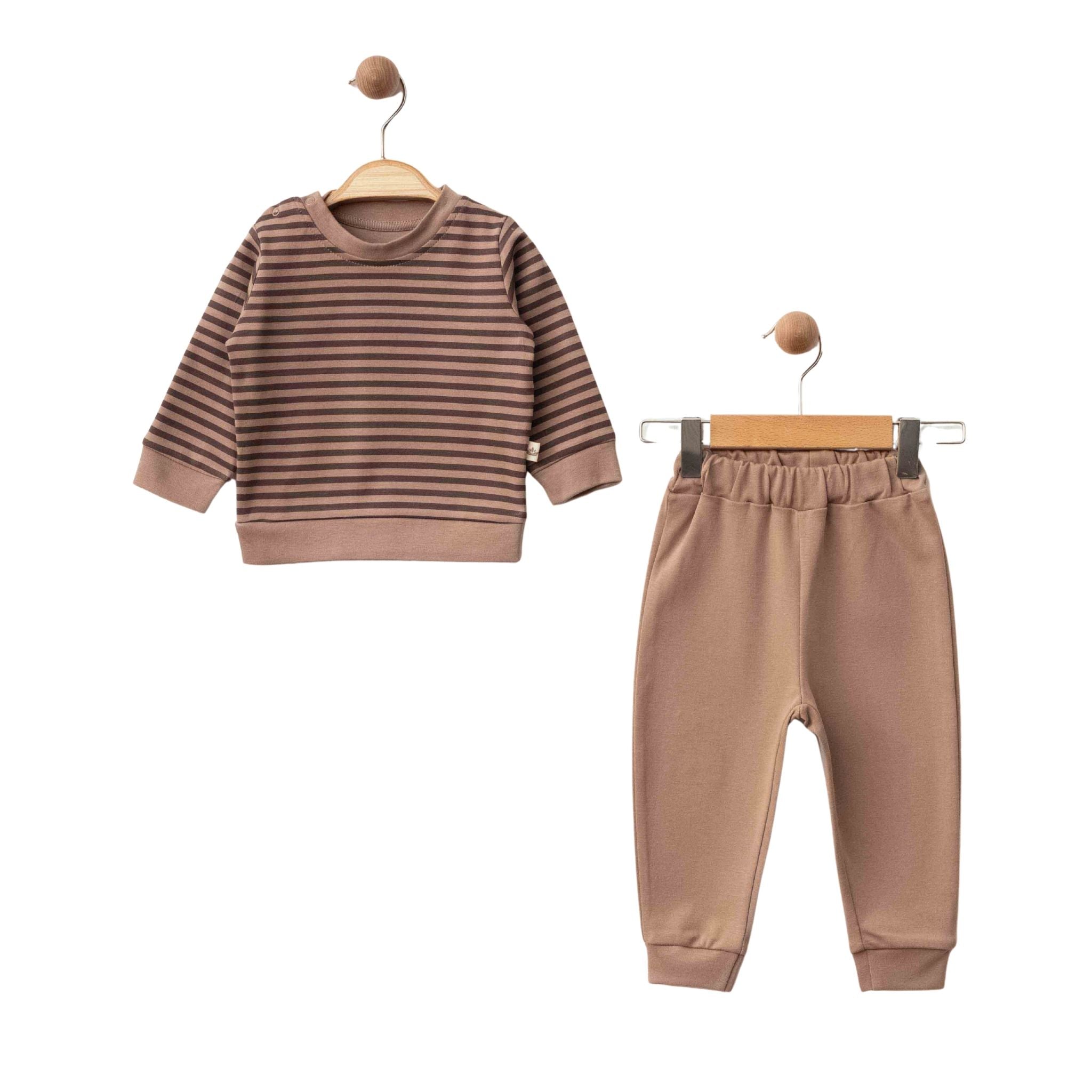 Bebeklerin hassas ciltleri için özel olarak tasarlanan Eslenza Organik Erkek Takım, yüzde yüz pamuk interlok kumaştan üretilmiştir. Doğal pamuk yapısı sayesinde yumuşak bir his sunar ve cilt dostudur. Esnek kumaşı bebeğinizin özgürce hareket etmesini sağlarken, dayanıklı yapısı sayesinde defalarca yıkamaya karşı formunu korur. Şık kahverengi tonu ile hem günlük kullanımda hem de özel günlerde tercih edilebilecek ideal bir seçenektir.