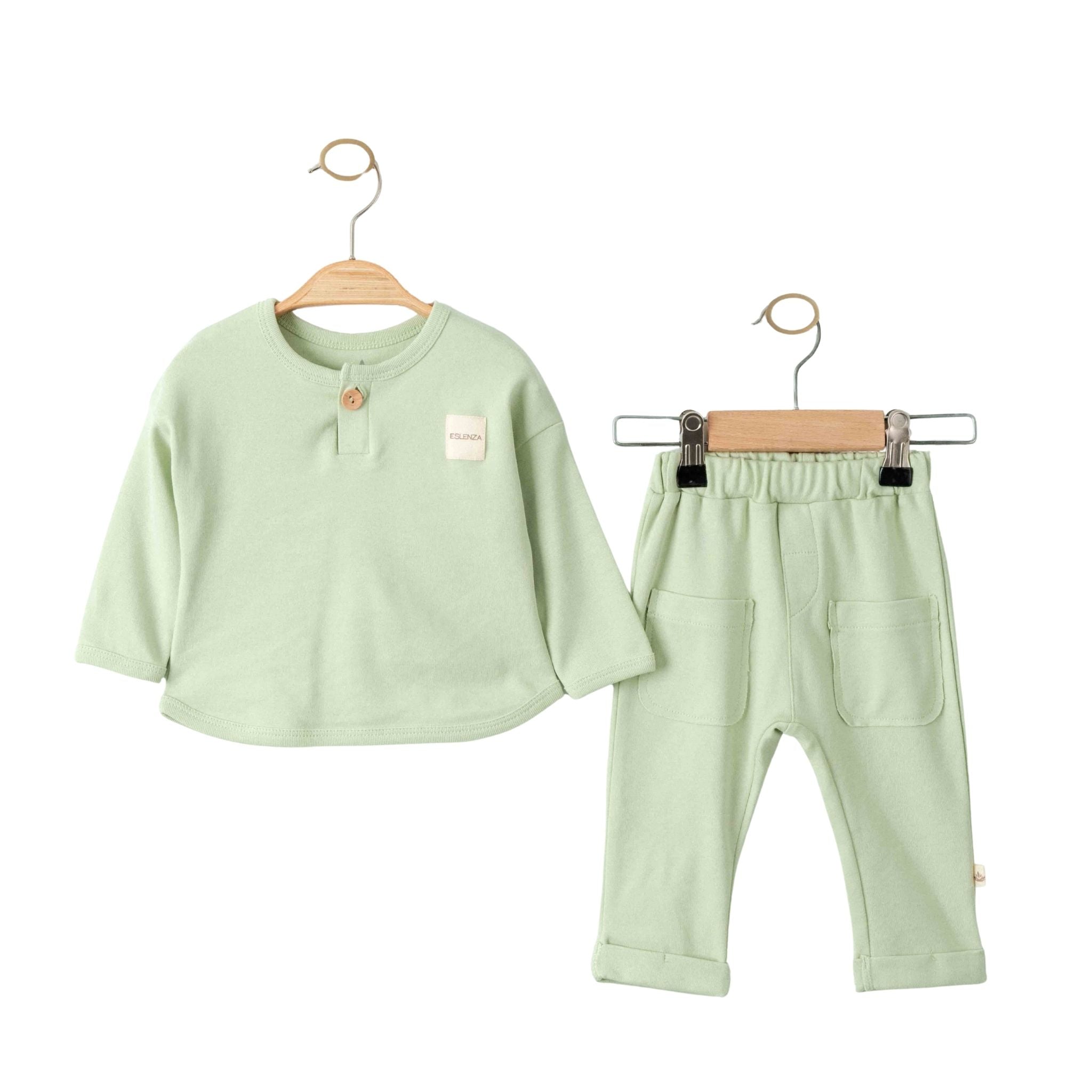 Bebeklerin gün boyu rahat etmesi için özenle tasarlanan Eslenza Organik Erkek 2’li Takım, yüzde yüz organik pamuktan üretilmiştir. Yumuşak dokusu sayesinde hassas cilde nazikçe dokunur, nefes alabilen yapısı ile bebeğinizin cildinin serin ve kuru kalmasını destekler. Doğal liflerden üretildiği için kimyasal içermez, güvenli ve sağlıklı bir kullanım sunar. Hem evde hem dışarıda rahatlıkla kullanılabilecek pratik bir üründür.