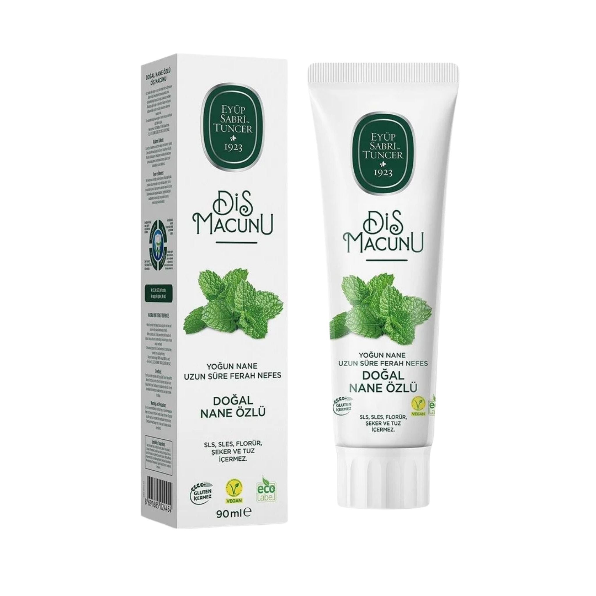 Ağız bakımınızı doğallıkla buluşturan Eyüp Sabri Tuncer Doğal Nane Özlü Diş Macunu, günlük kullanıma uygun formülü ile dişlerinizi korurken uzun süreli ferahlık sağlar. İçeriğinde yer alan doğal nane ve okaliptüs yağları sayesinde ağızda hoş bir tat bırakırken, aynı zamanda nefesi tazeler, plak ve tartar oluşumunu önlemeye yardımcı olur. Diş minesine zarar vermeyen özel yapısı sayesinde dişlerin doğal beyazlığını korur. Florür, SLS, SLES, gluten, şeker ve tuz içermez. Tatlandırıcı olarak yalnızca %100 bitkisel Stevia kullanılmıştır. Hem sağlıklı hem de doğa dostu bu diş macunu, hassas diş ve diş eti yapısına sahip kullanıcılar için de güvenle tercih edilebilir. Doğadan ilham alan formülüyle, ağız bakımınız için güvenli ve etkili bir çözüm sunan Eyüp Sabri Tuncer Doğal Nane Özlü Diş Macunu ile siz de ferahlığı her an hissedin!