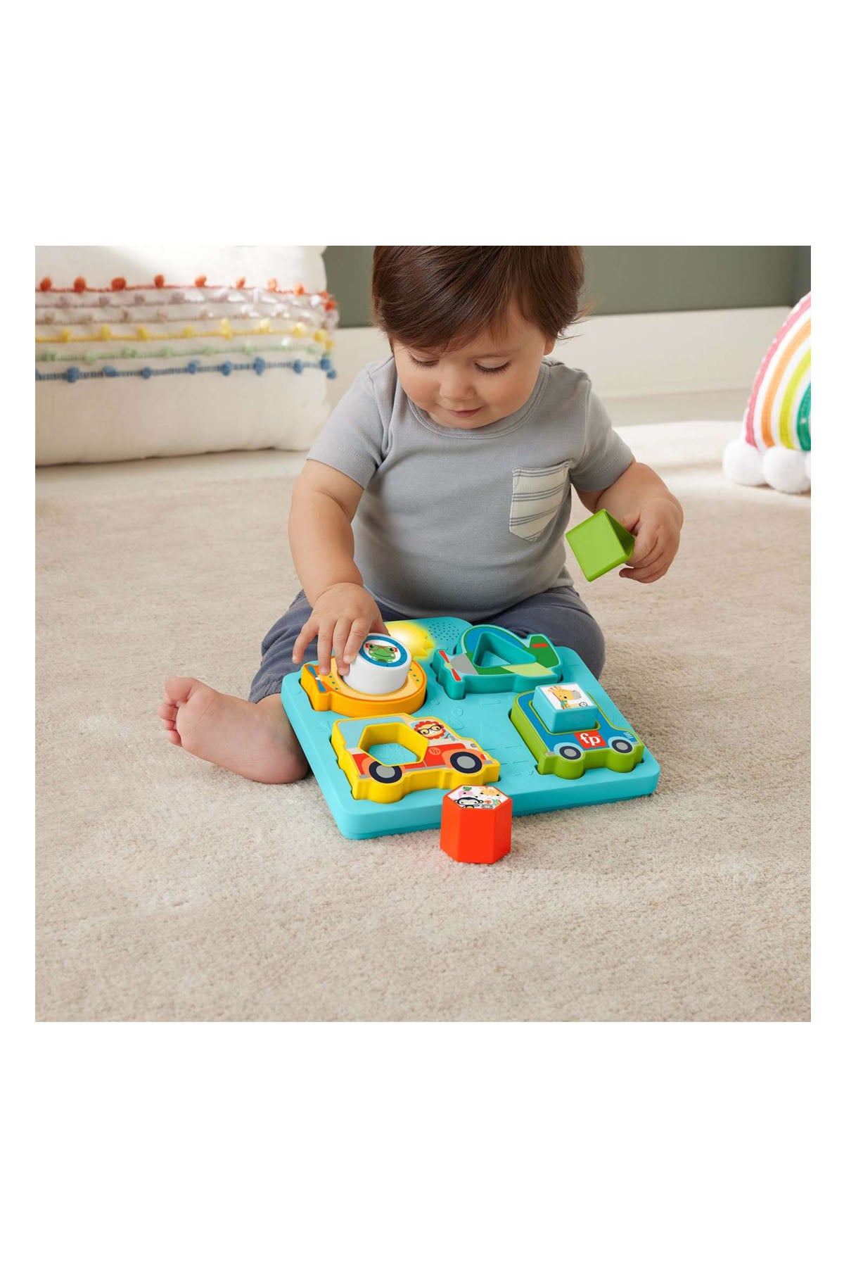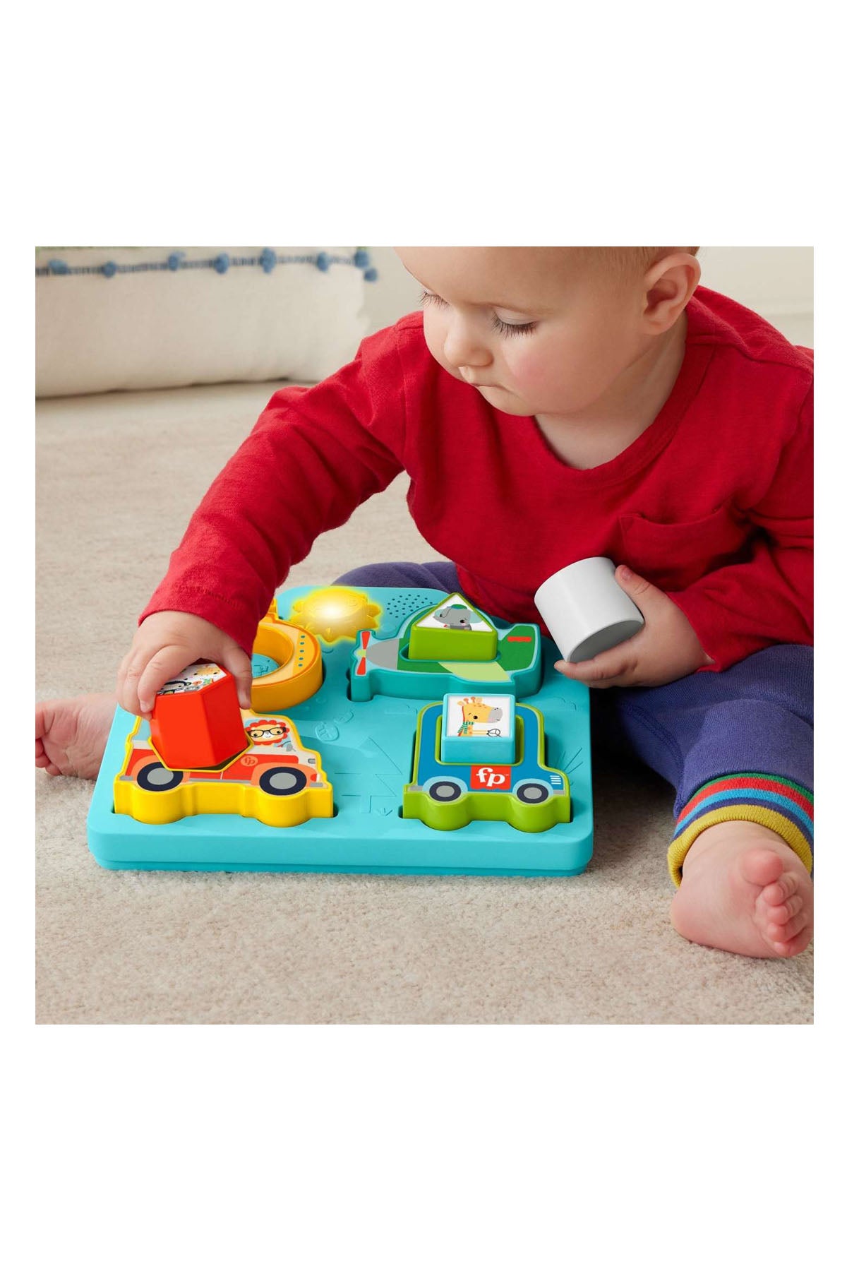 Fisher Price Şekiller ve Sesler Puzzle HRP31, minikler için eğitici ve eğlenceli oyuncak seçeneğidir! Fisher Price'ın Şekiller ve Sesler Araç Bulmacası, beceri geliştirme eğlencesini zirveye çıkarmak için şekil sıralama ve bulmaca oyunların birleştirir. Bebeğiniz bir bulmaca parçasını veya hayvan temalı şekli doğru yere yerleştirdiğinde eğlenceli araç ve hayvan sesleri ile ışıklar etkinleşir. Hayvan şekilleri tabanda veya eşleşen araç bulmaca parçasında sıralanabilir. Sevimli güneş düğmesine basıldığında ince motor becerilerinin gelişimini pekiştiren eğlenceli sesler çalar.
