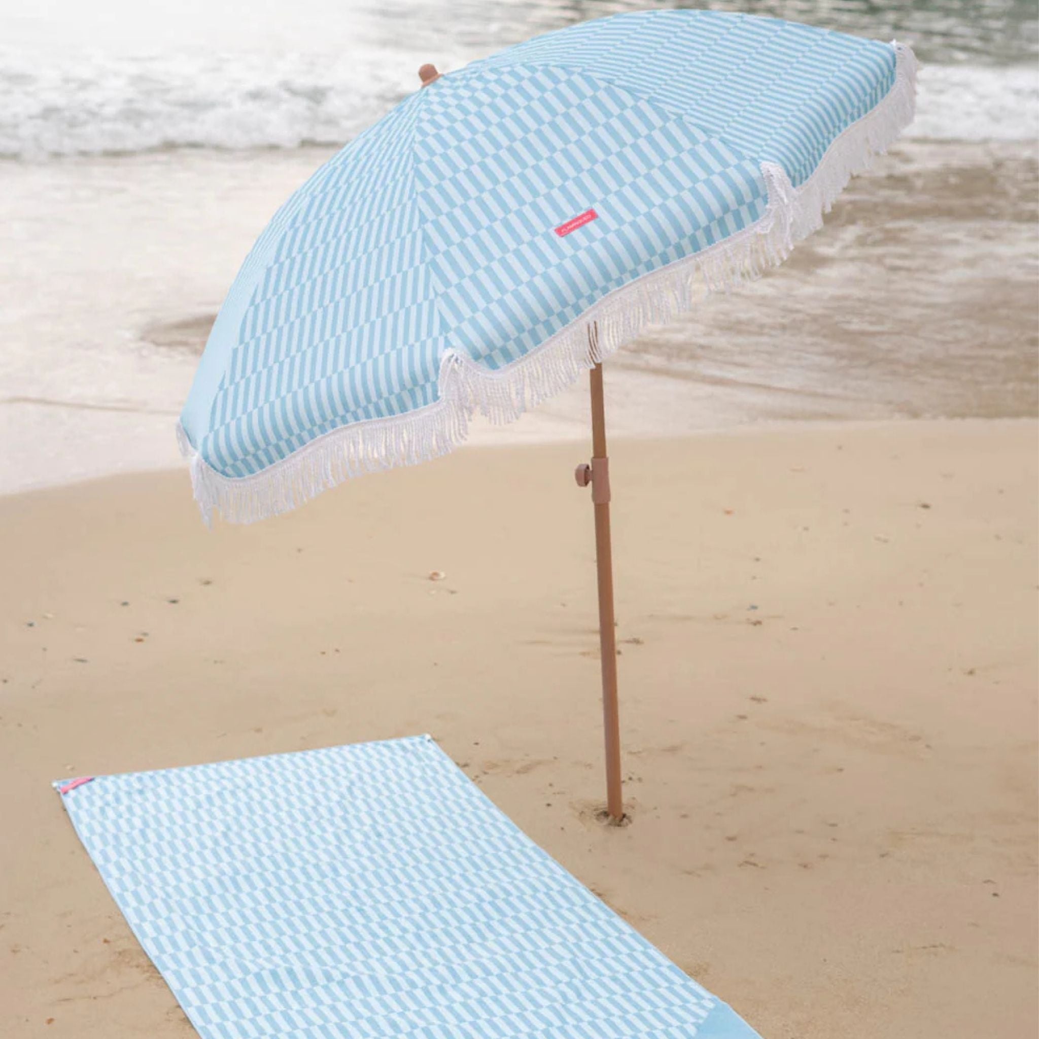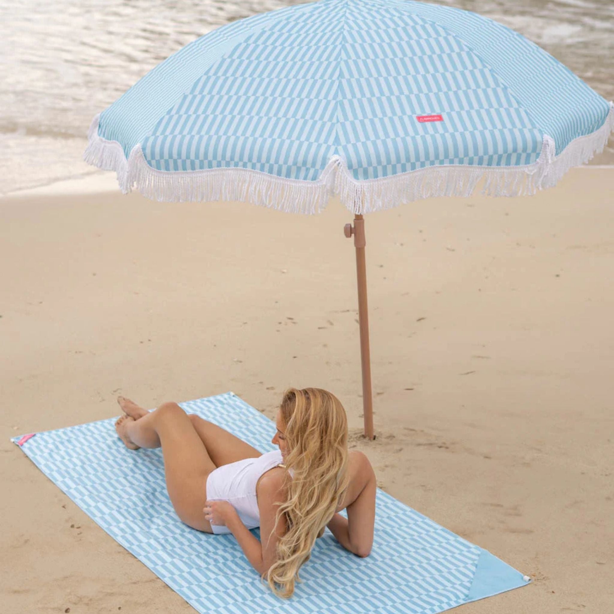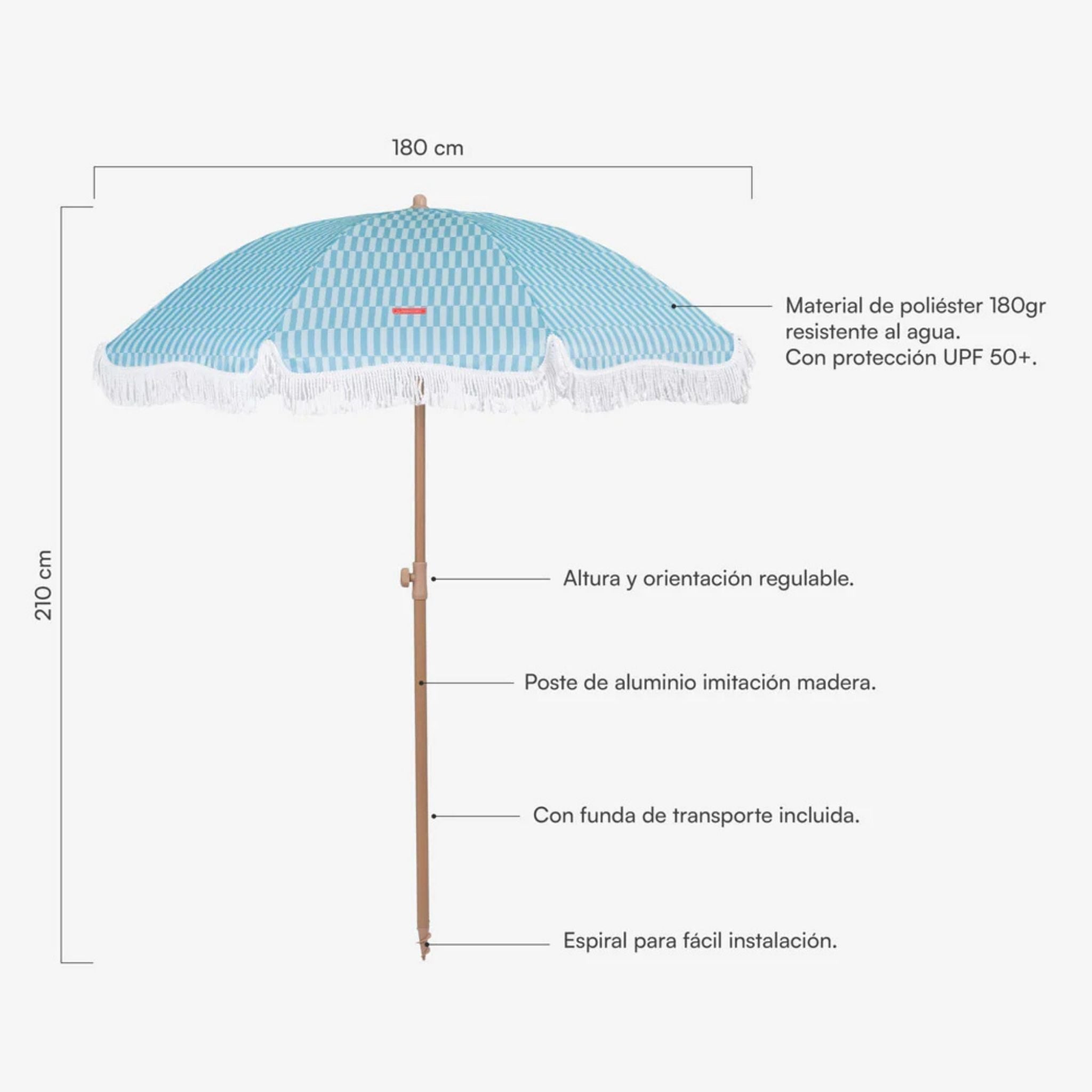 Yazın enerjisini ve serinliğini bir araya getiren Caramel mavi dış mekan şemsiyesi, hem şık görünümü hem de işlevsel yapısıyla dış mekânlar için vazgeçilmez bir seçimdir. Göz alıcı geometrik desenleriyle dikkat çeken bu şemsiye, UV ışınlarına karşı UPF 50+ koruma sağlayarak güneş altında güvenli bir gölgelik sunar. Bahçenizde, terasınızda ya da plajda keyifle vakit geçirmek için ideal olan bu model, taşıma çantasıyla her yere kolayca taşınabilir.