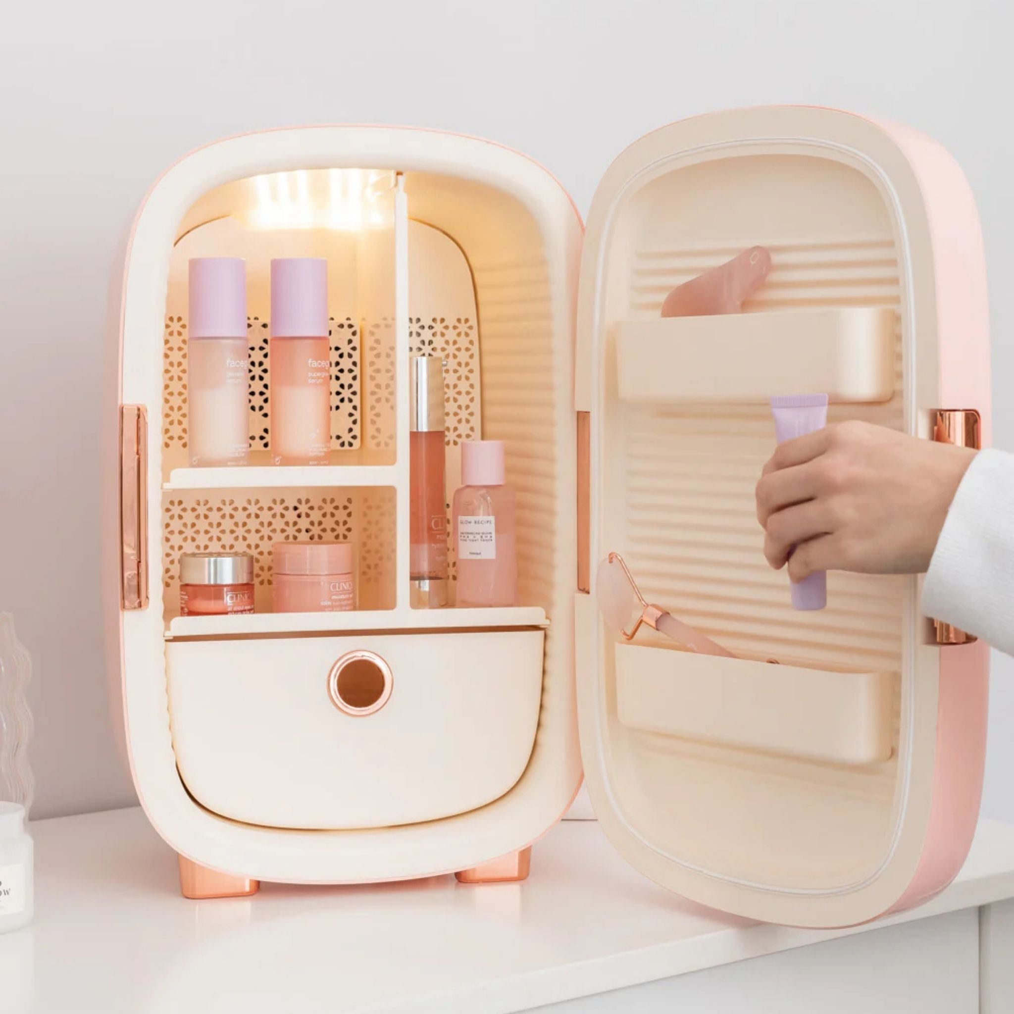 Kendall 12L Kozmetik Buzdolabı, güzellik ürünlerinizi güvenle saklamak için ideal bir çözümdür. Makyaj malzemeleri, cilt bakım ürünleri ve diğer güzellik eşyalarınızı düzenli ve güvenli bir şekilde saklamak için mükemmeldir. Zarif tasarımı ve kompakt yapısı sayesinde hem evde hem de profesyonel ortamlarda kullanıma uygundur. Soğutma fonksiyonu ve iç bölmeleri, ürünlerinizi en iyi koşullarda tutar. Benzersiz tasarım ve konfor: Güzellik ürünlerinizi koruyan buzdolabı, hem şıklığı hem de işlevselliği bir arada sunuyor. Hem soğutma hem de sıcaklık kontrolü ile makyaj malzemeleriniz ve cilt bakım ürünleriniz her zaman güvenli bir şekilde saklanır.