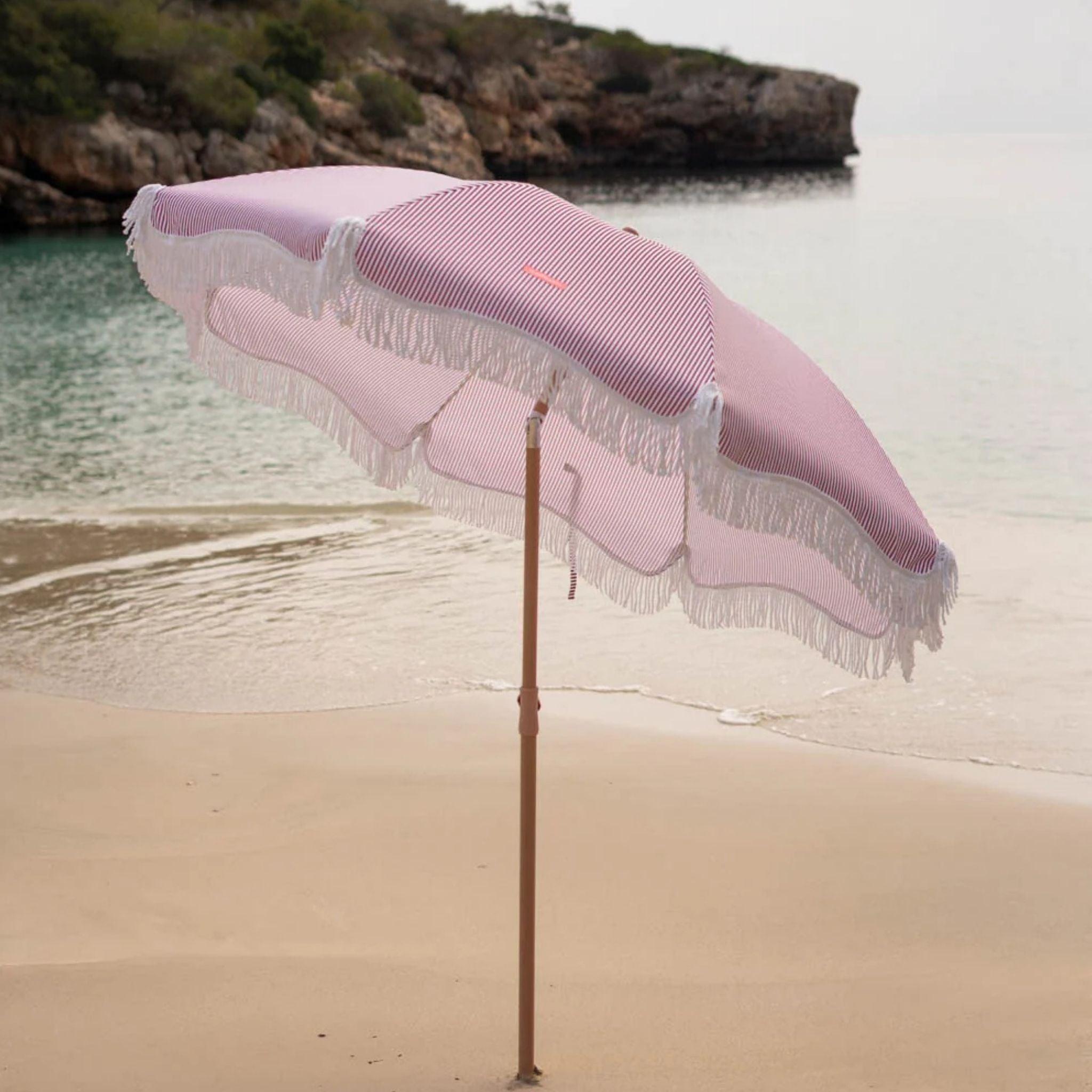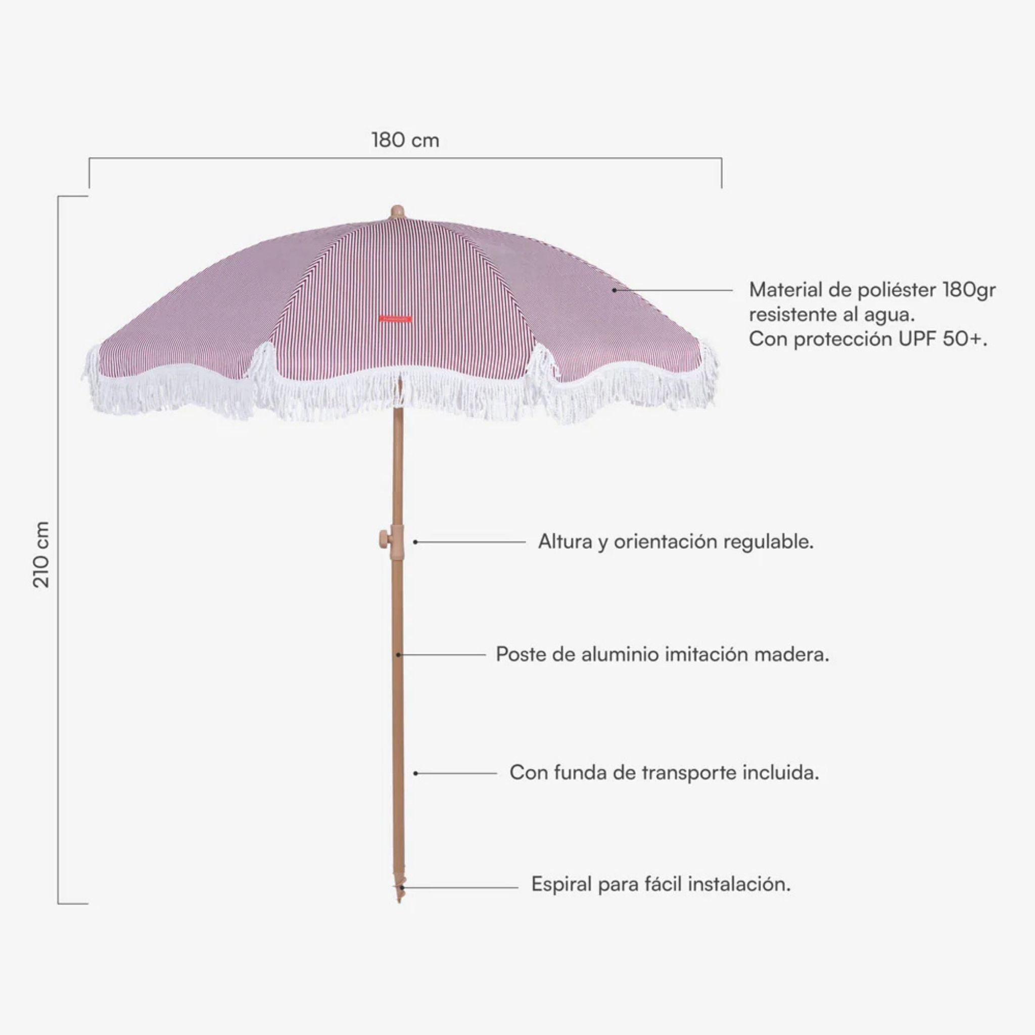 Klasik çizgilerin modern dokunuşla buluştuğu Marıon bordo dış mekan şemsiyesi, yaz günlerinde gölgeyi şıklıkla buluşturmak isteyenler için tasarlandı. Bordo ve beyaz çizgili deseniyle dikkat çeken bu zarif model, sadece estetik değil; aynı zamanda fonksiyonel bir koruma sağlar. UPF 50+ güneş koruması sayesinde UV ışınlarını engellerken, ayarlanabilir yükseklik ve açısıyla güneşi kontrol altına almanıza imkân tanır. Bahçede, balkonda ya da sahilde stil sahibi bir alan yaratmak için mükemmel bir seçimdir.