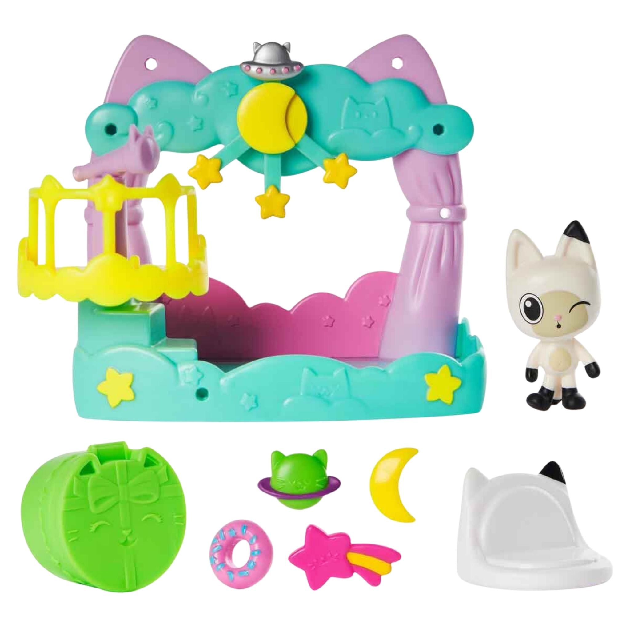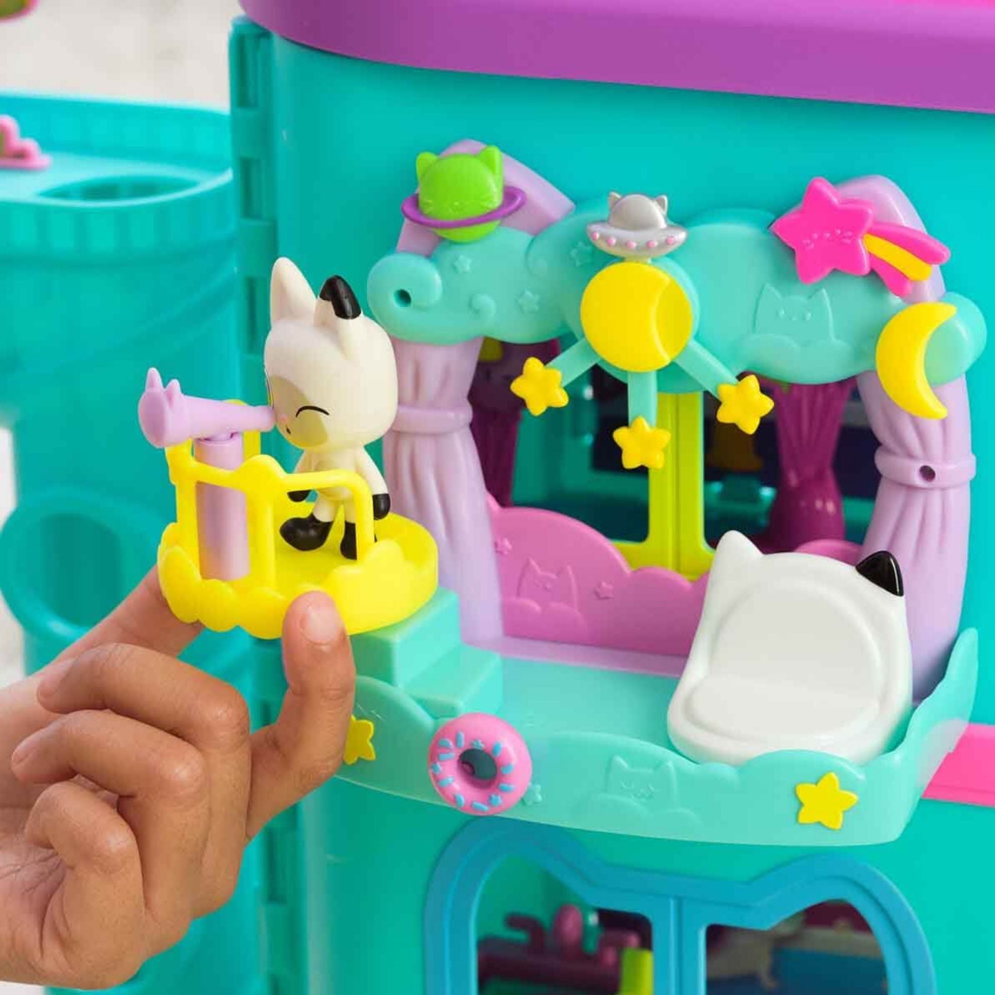 Gabby’s Dollhouse Temalı Balkon Oyun Seti, Gabby’nin renkli dünyasını bu kez balkon eğlencesiyle çocukların oyun alanına taşıyor. Eğlencenin mekân değiştirdiği bu özel set, sevilen karakterlerin kendilerine özgü balkon temalarıyla hayal gücünü harekete geçiren oyun senaryoları sunar. Gabby’nin Oyuncak Evi evrenine uyumlu olarak tasarlanan balkon setleri, çocukların kendi hikâyelerini kurmasına ve oyun dünyalarını genişletmesine yardımcı olur. Pandy Paws Dreamy Lookout modelinde yıldızlarla süslenmiş bir balkon ve kedili teleskop yer alır. Gökyüzü temasıyla hazırlanan bu balkon, çocukları keşif ve hayal dolu oyunlara davet eder. Cakey’s Fruit Smoothie Party modelinde ise meyve temalı aksesuarlar bulunur. Yaz havasını yansıtan bu balkon, renkli detaylarıyla eğlenceli ve enerjik oyun sahneleri oluşturur. Baby Box Cat’s Talent Show modeli ise alkış seslerinin yükseldiği bir yetenek şovu temasına sahiptir. Baby Box’un balkonunda başlayan bu gösteri, çocukların taklit oyunlarıyla yaratıcılıklarını sergilemelerine olanak tanır. Gabby’s Dollhouse Temalı Balkon Oyun Setleri, oyuncak ev ile tam uyumlu aksesuarlar içerir ve farklı temalar arasında seçim yapma imkânı sunar. Set içerisinde yer alan sürpriz paket, oyun deneyimini daha da keyifli hale getirir. QR kod sayesinde Gabby’s Dollhouse uygulamasına erişim sağlanabilir ve özel dijital ödüller keşfedilebilir. Bu özellik, fiziksel oyun ile dijital deneyimi bir araya getirerek çocukların ilgisini uzun süre canlı tutar. Oyun seti, çocukların yeni hikâyeler üretmesini destekleyerek hayal gücü ve yaratıcılık gelişimine katkı sağlar. Taklit oyunları sayesinde oyun kurma becerileri gelişirken, arkadaşlarıyla birlikte oynadıkları oyunlar sosyalleşmelerine yardımcı olur. Aynı zamanda koleksiyon yapma isteğini destekleyen yapısıyla Gabby’s Dollhouse dünyasını adım adım genişletme imkânı sunar.