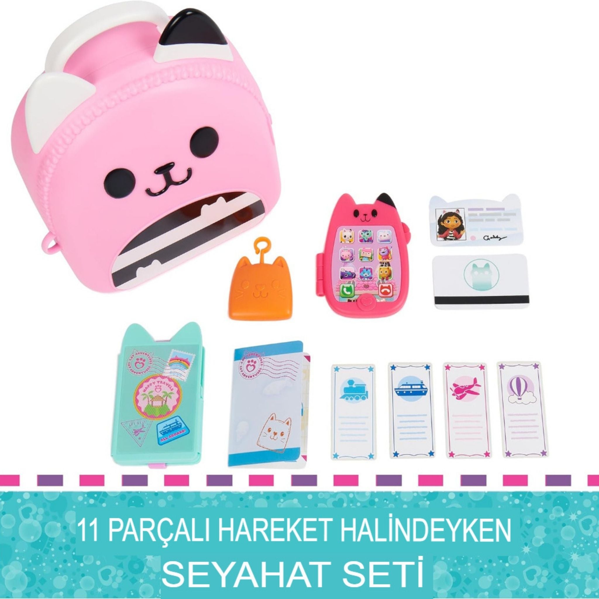 Gabby’nin büyülü dünyasında yeni bir maceraya çıkmaya hazır olun! Gabby’s Dollhouse Seyahat Çanta Seti, çocuklara eğlenceli ve yaratıcı bir rol yapma deneyimi sunar. Dizi hayranları, tıpkı Gabby gibi keşfe çıkarken kedi temalı aksesuarlarıyla hayal güçlerini harekete geçirir.