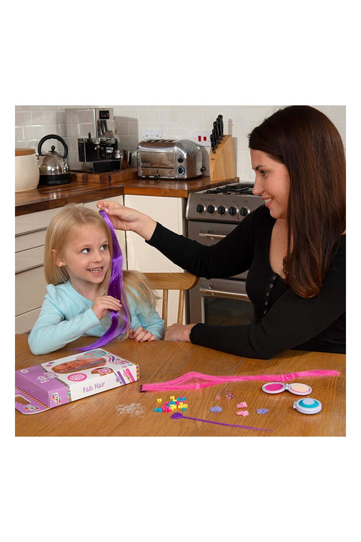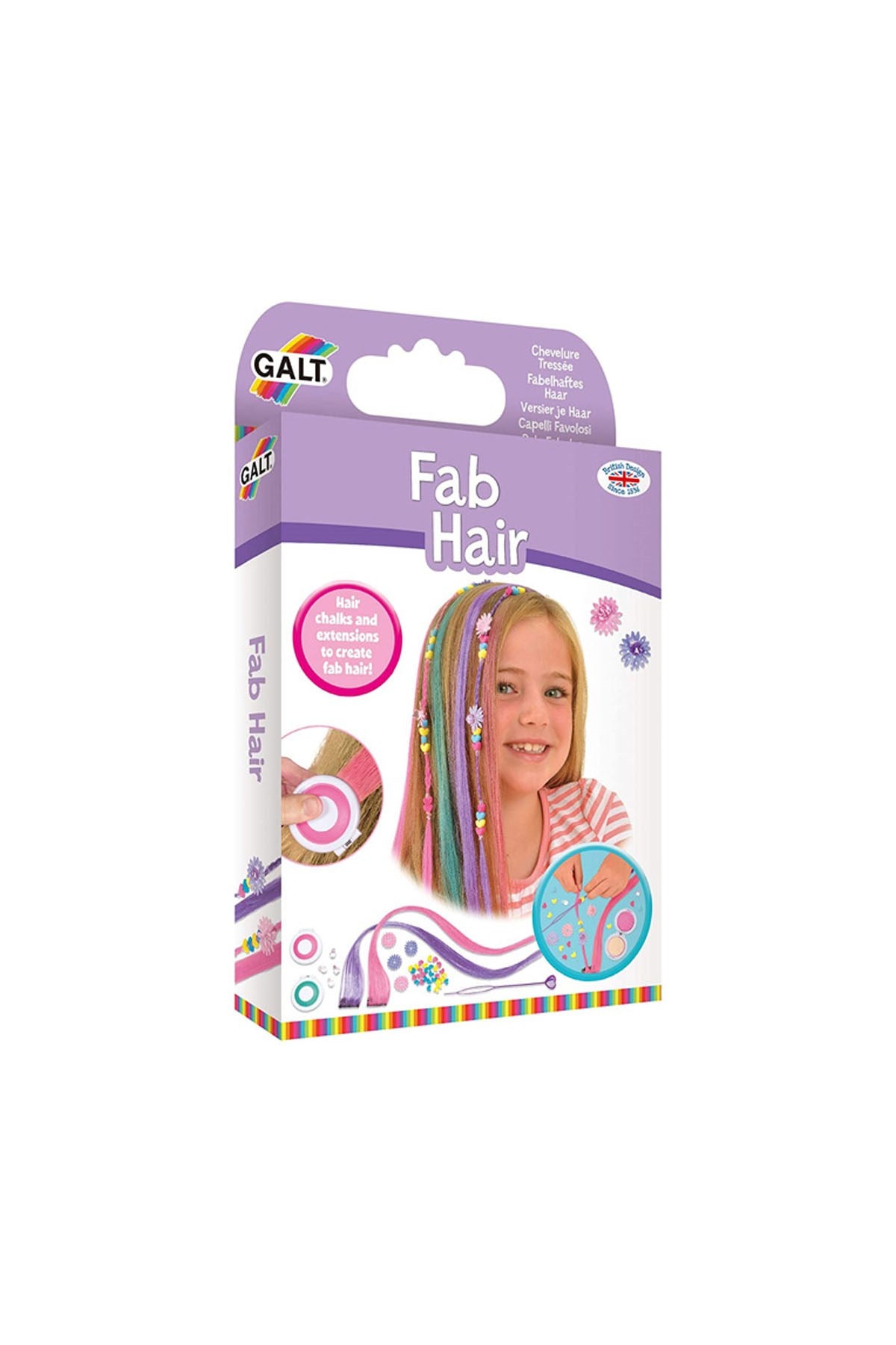 Galt Fab Hair Saç Aksesuar Seti ile çocuklar kendi saçlarını süsleyerek yaratıcı stiller oluşturabilir. Renkli saç uzantıları, boncuklar ve çiçeklerle eğlenceli tasarımlar yapabilirler.