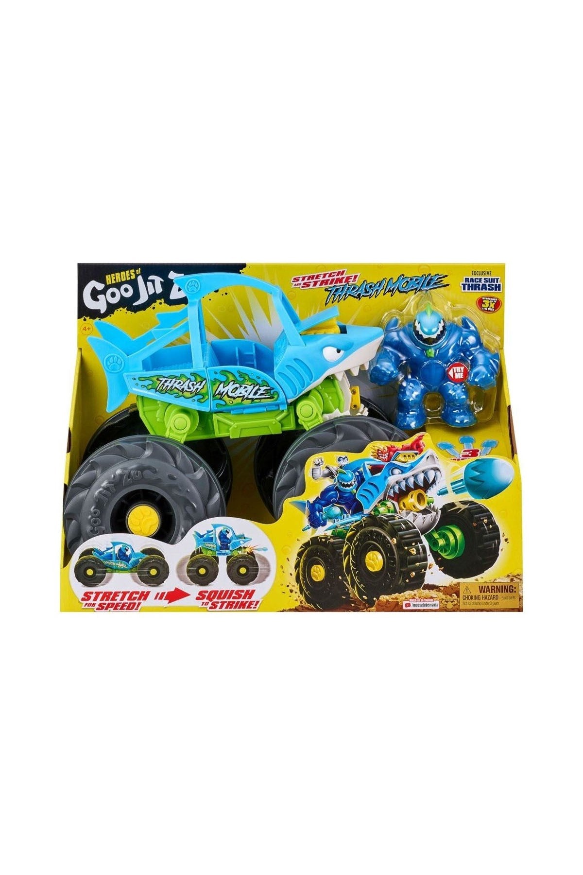 Thrash ve harika thrash mobil araçla aksiyona başlayın! Bu köpekbalığı şeklindeki araç gooitzu, tek bir hareketle bir jipten özel görev aracına dönüştürülür! Tekerlekleri germek ve "hız moduna" geçmek için aşağı bastırın veya çekin çerçeveyi yukarı kaldır ve "darbe modunda" saldırı başlat ve köpekbalığı çenelerinden roket fırlat! Thrash Mobile ile birlikte, onu sürücü koltuğuna yerleştirmek için özel bir Race Suit Thrash figürü var. Hala her zamanki gibi aşırı esnek, thrash 3 kata kadar esnetilebilir ve daha sonra orijinal şekline ve boyutuna geri dönebilir. Figürlü araçlar ile oyun oynamak çok eğlenceli!