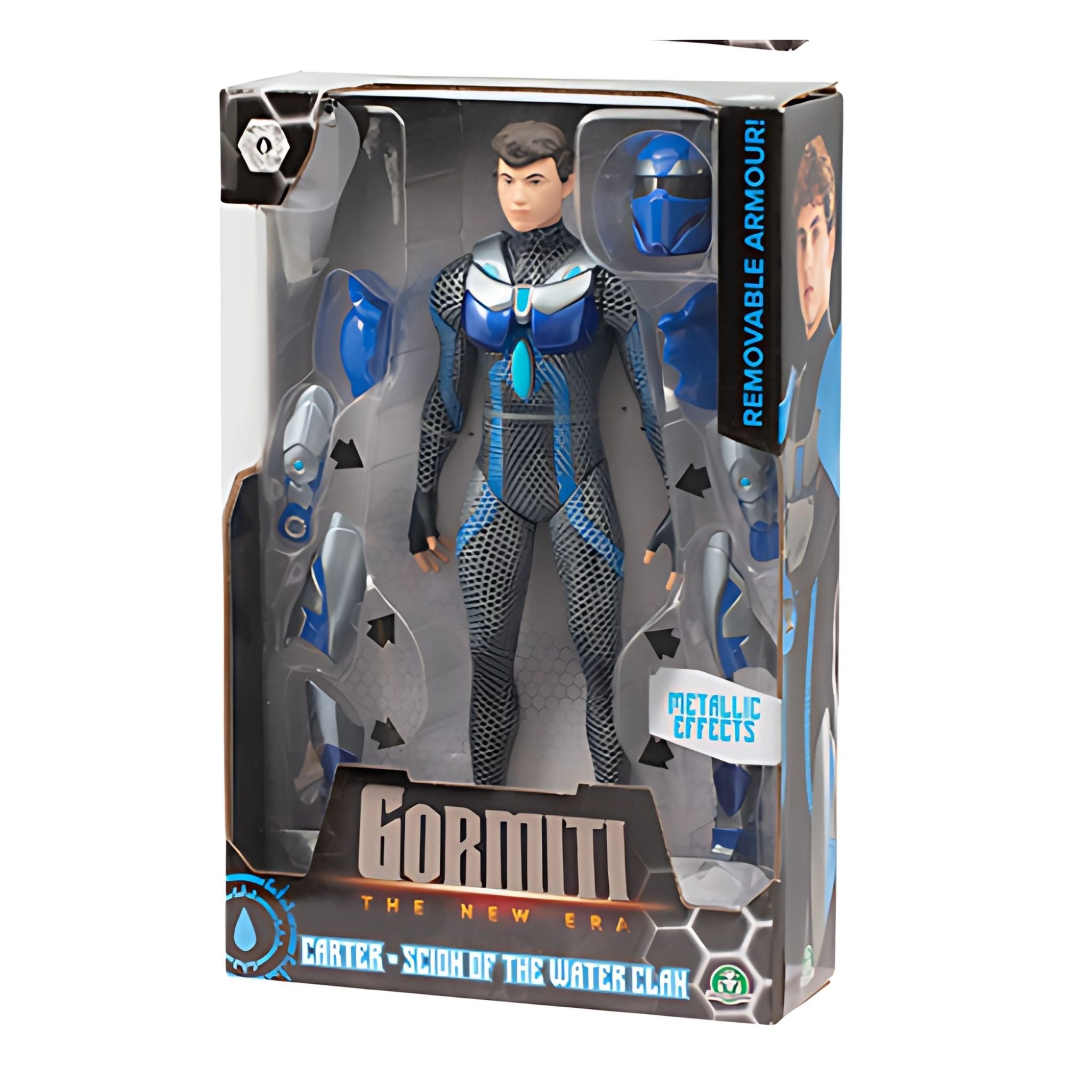 Derin suların bilgeliği Carter’da hayat buluyor! Gormiti Varis ve Zırh serisinin su elementi temsilcisi olan Carter Su Varisi, 27 cm boyutundaki etkileyici figürü ve çıkarılabilir zırh sistemi ile çocuklara iki farklı oyun modu sunuyor: zırhlı savaşçı veya yüzü açık kahraman! Carter’ın özel su temalı zırh parçaları ve kaskı, figürden kolayca ayrılabiliyor. Bu özellik sayesinde çocuklar ister Carter’ı savaş modunda, ister zırhsız daha sade haliyle oyuna dahil edebiliyor. Hareketli eklemleri sayesinde figür; aksiyon sahnelerinde, savunma pozisyonlarında ya da diyalog temelli oyunlarda rahatlıkla pozlanabiliyor.