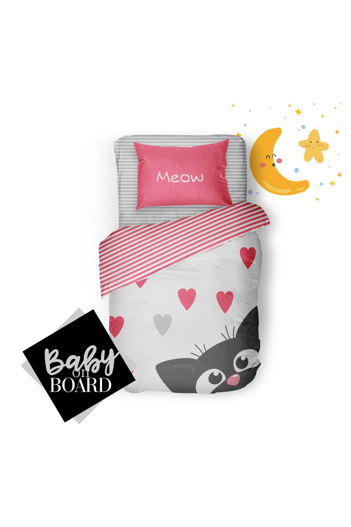 Helen George Bebek Meow Nevresim Takımı 100x150 Pembe