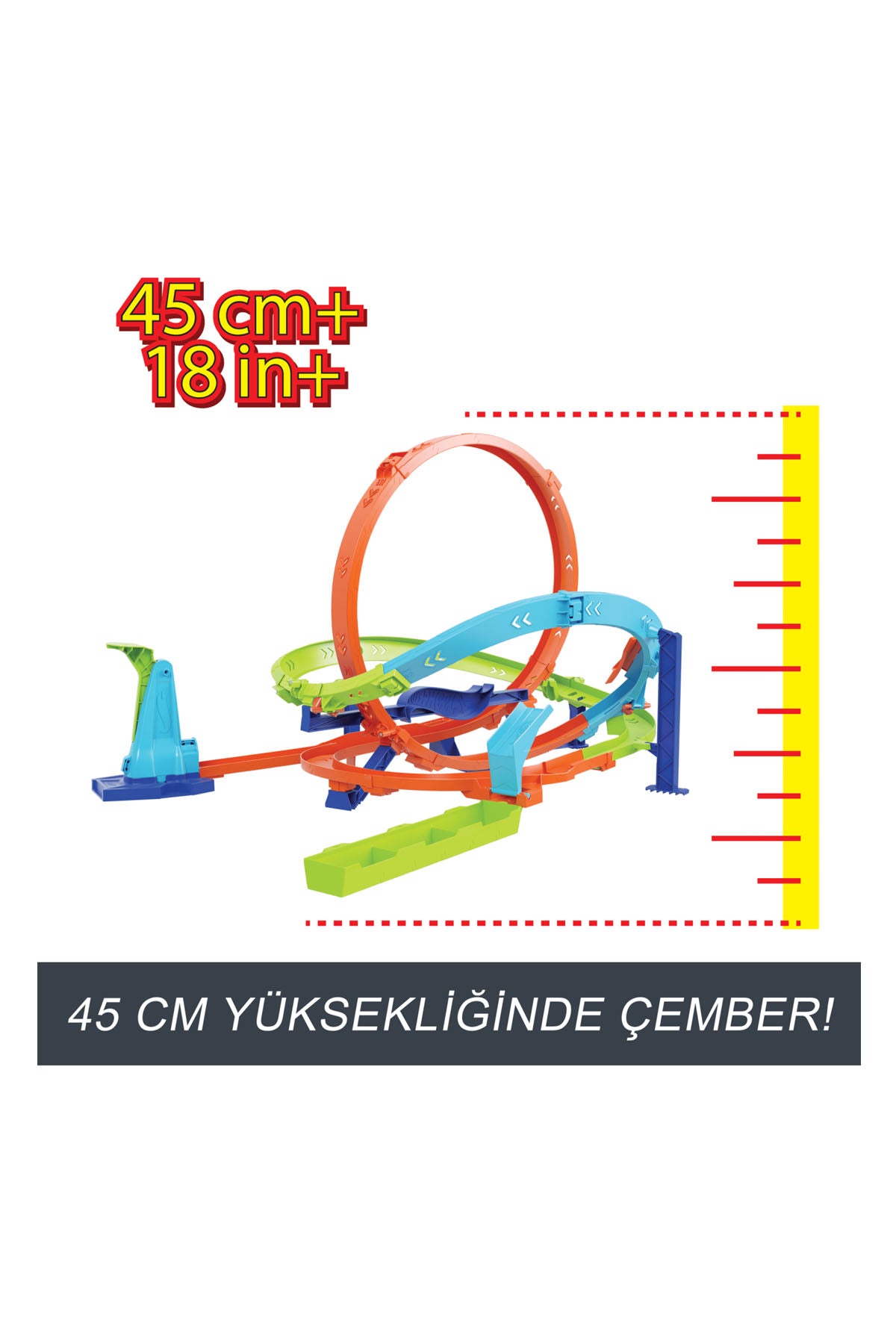 Hot Wheels Bumerang Çemberli Yarış Pisti, yarış ve akrobasi heyecanını ikiye katlayan dinamik bir oyun setidir. İki farklı oyun modu sunan bu set ile arabalar bumerang halkalara fırlatılarak tekrar tekrar yarışabilir veya puan toplamak için zıplatılabilir. Çemberler ve dönüşler ile dolu pist, çocuklara hızlı ve aksiyon dolu bir yarış deneyimi yaşatır. Katlanabilir yapısı sayesinde kolayca saklanabilir ve taşınabilir.