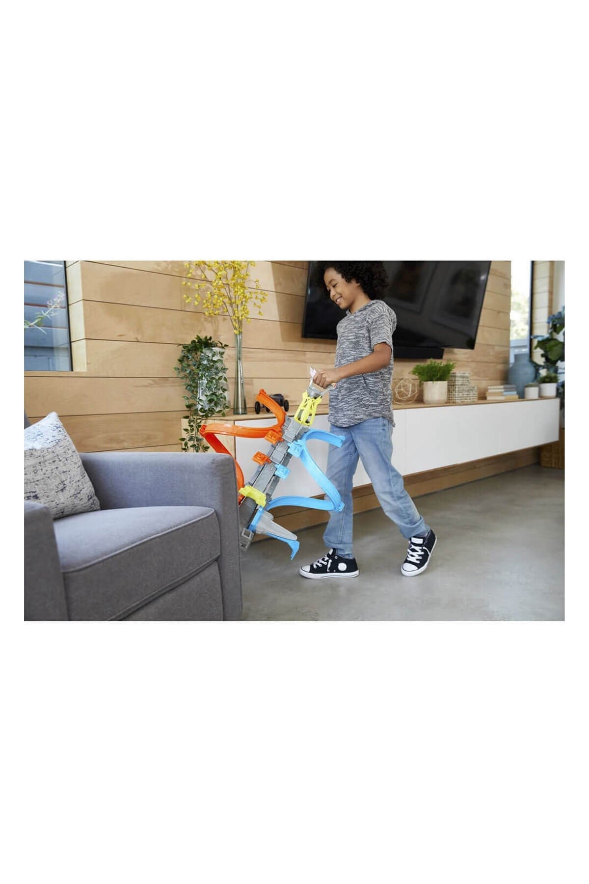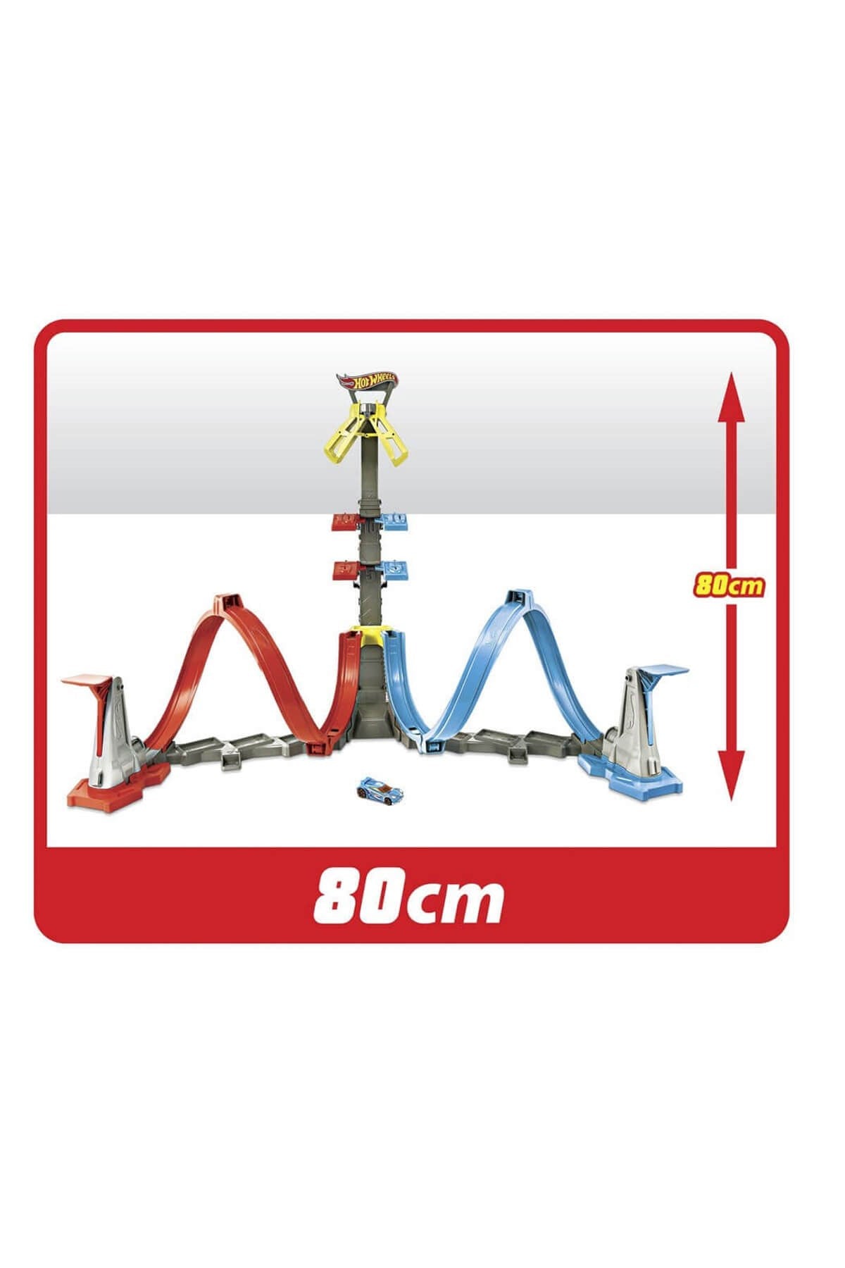 Hot Wheels Dikey Uçuş Heyecanı yarış seti, 60 cm yüksekliğe kadar çıkabilen kafesiyle yarış deneyimini üst seviyeye taşıyor. Hot Wheels araçları, sarmal pistte hızlanarak kafese doğru ilerler ve ayarlanabilir mekanizma sayesinde yarışın zorluk seviyesi değiştirilebilir. Çember üzerindeki puan panelleri mücadeleyi daha heyecanlı hale getirirken, kolay kurulum ve saklama imkanı sunan tasarımı ile çocuklara pratik bir oyun deneyimi sağlar.
