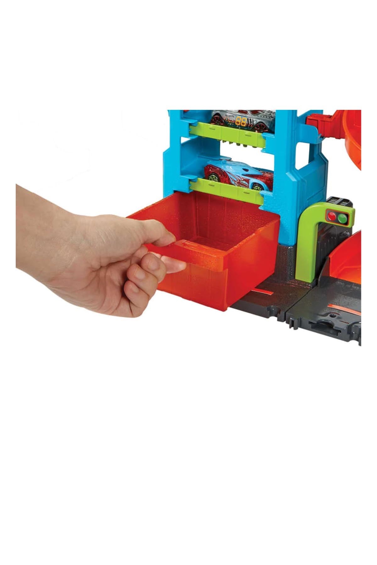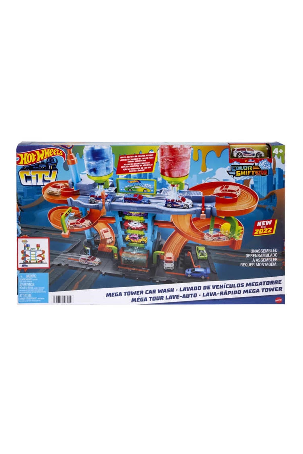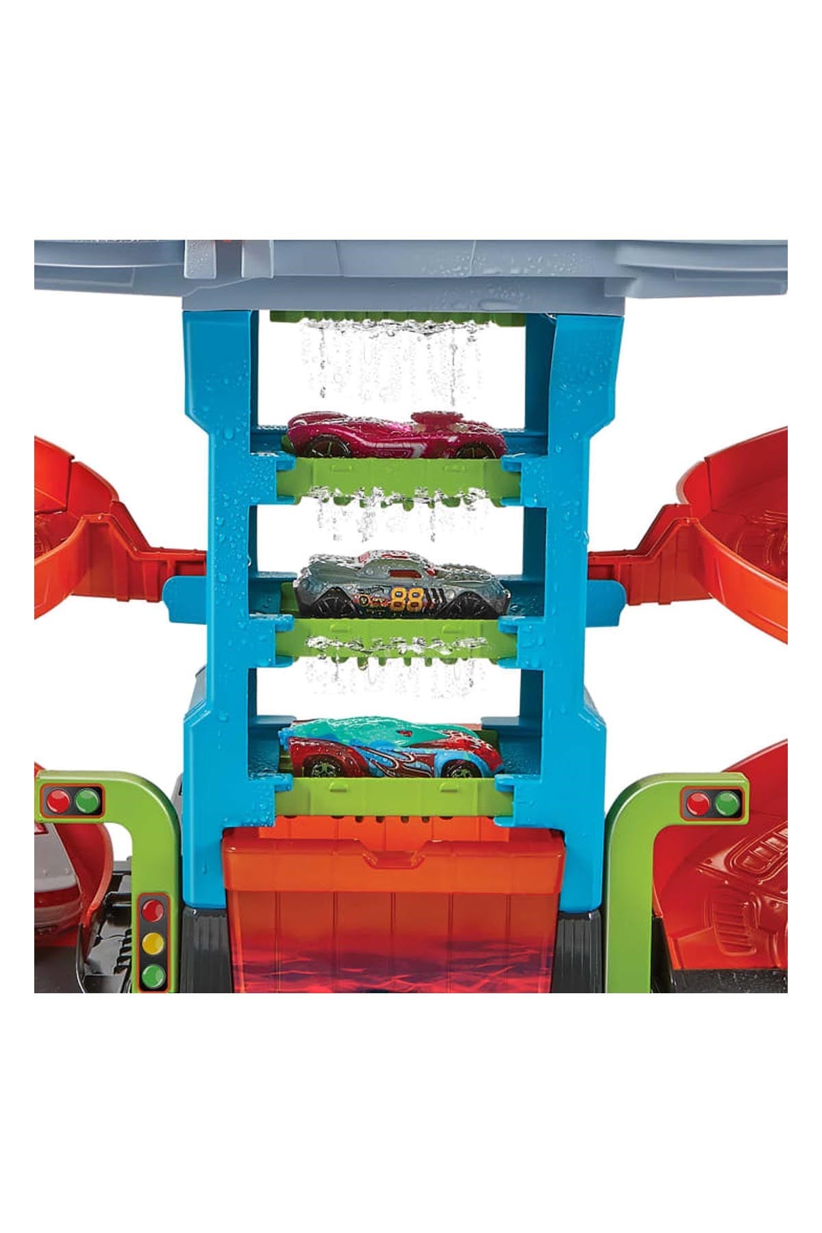Hot Wheels City Mega Araba Yıkama, etrafı ıslatmadan eğlenceli bir araba yıkama deneyimi sunar. Arabayı yıkama platformuna çıkarın, kolu çekerek döner spirale doğru ilerletin ve su tanklarından püskürtülen sıcak ve soğuk su ile renk değiştirme özelliğini keşfedin. Özel olarak tasarlanmış su tepsileri, fazla suyu toplayarak oyun sırasında çevrenin kuru kalmasını sağlar. Bu oyun seti, diğer Hot Wheels setleriyle bağlanarak daha büyük bir Hot Wheels şehri oluşturma imkanı sunar.