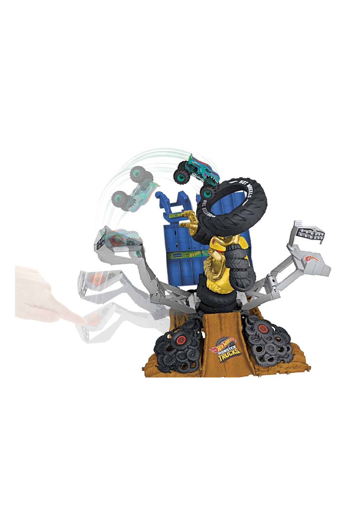 Hot Wheels Monster Trucks Arena'da Şampiyonluk Mücadelesi Oyun Seti'nde, her mücadelede dönen Crushzilla ile karşı karşıya kalacaksınız. Mücadeleyi zaferle sonlandırmak ve onu devirmek için birlikte verilen Mega-Wrex Monster Truck aracını belirlenen çarpma noktalarına farklı açılardan fırlatın. Crushzilla düştüğünde büyük bir yıkıma neden olur ama aynı zamanda alt tarafında eğlenceli bir detay ortaya çıkar: küçük bacaklar ve iç çamaşırları.
